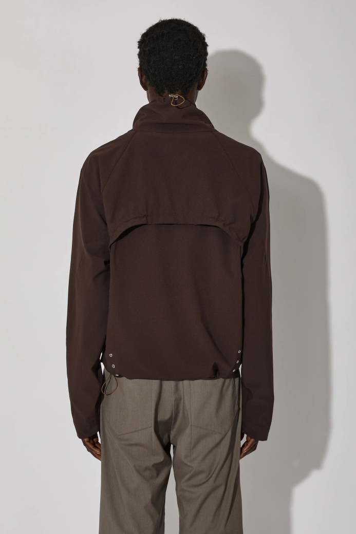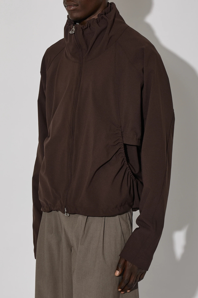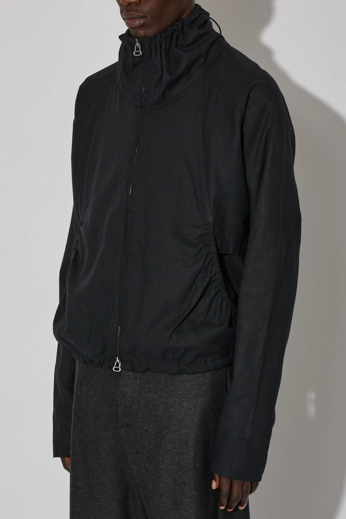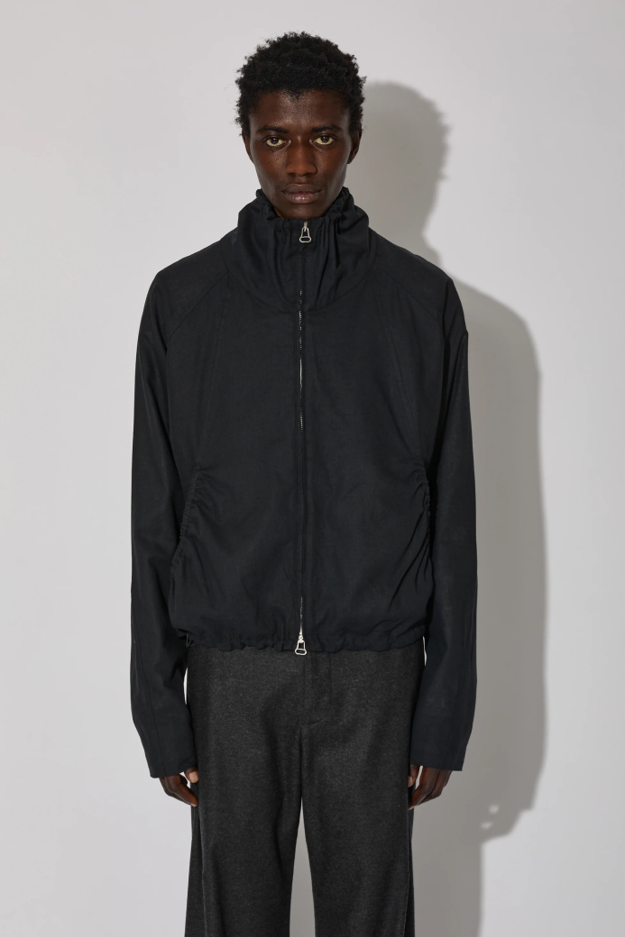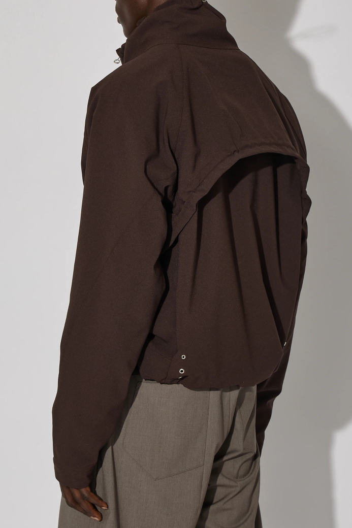 ・選用輕盈的亞麻布料,打造短版且線條流暢的立體設計,搭配收束式領口與抽繩調節扣