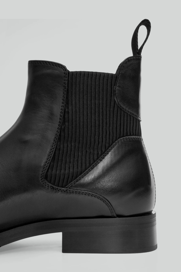 ・採用小牛皮製成,以細緻的線條,打造修長且俐落的靴型