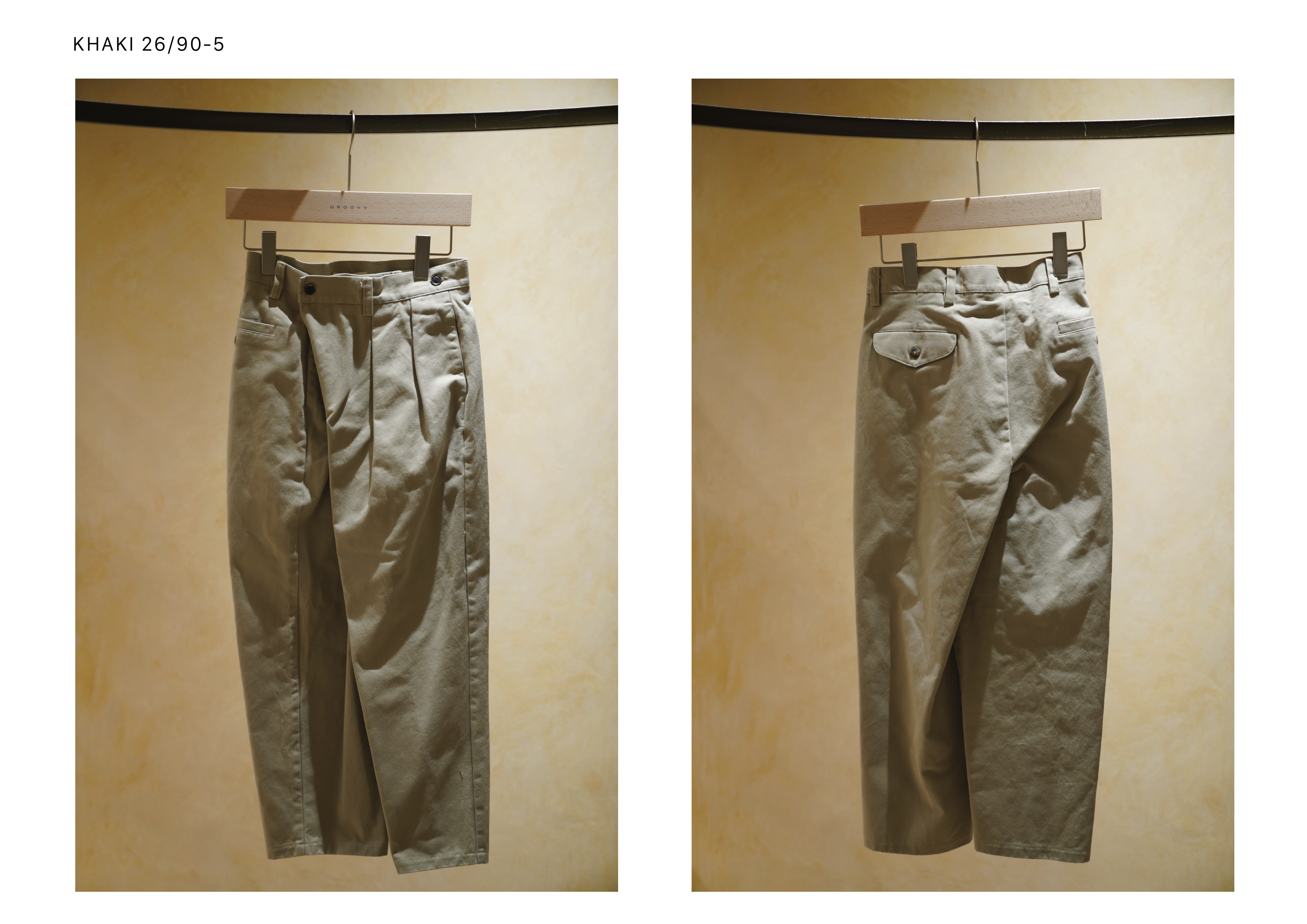 ・KHAKI_26/90-2:腰寬 34 / 臀寬 40 / 褲長 89 / 大腿寬 36.5 / 褲口寬 22