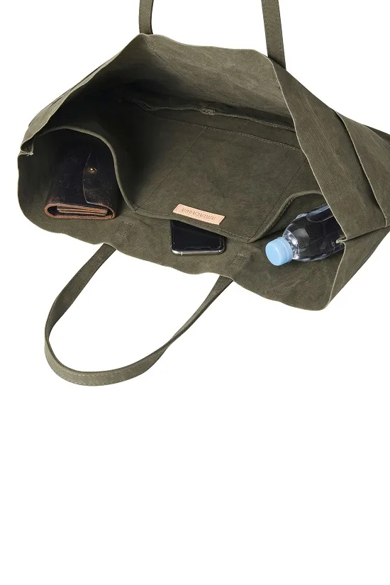 · 具水洗外觀,設計簡單而獨特,充分利用梭織機生產的「布邊」