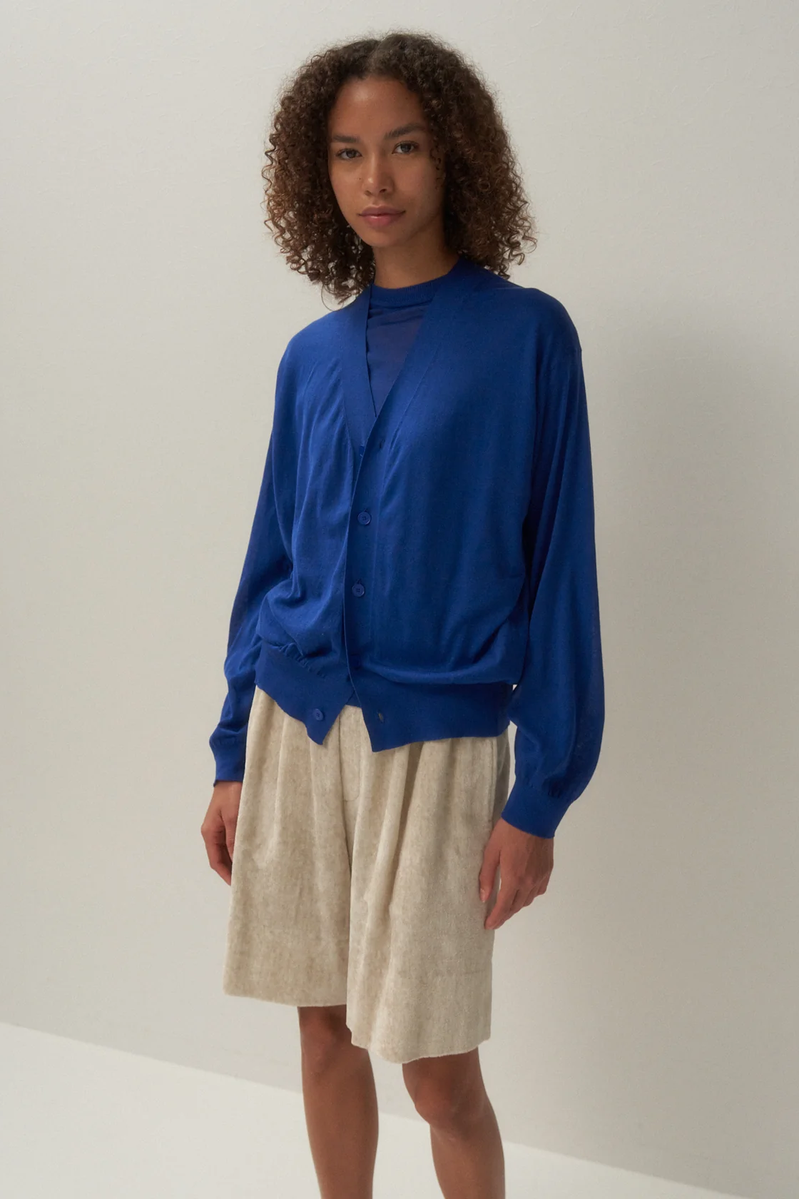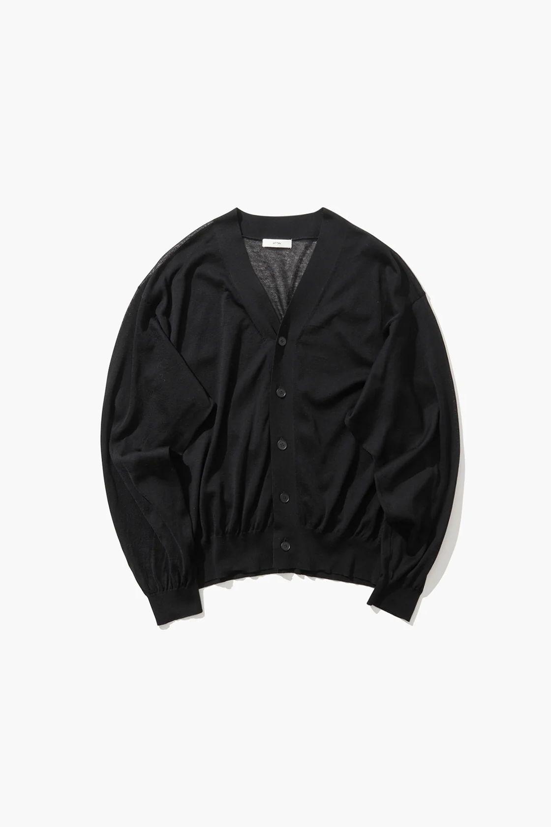 ・超大廓形的開襟衫,以 18 針極限針數編織,賦予其獨特的細紋表面與平滑舒適的剪裁
