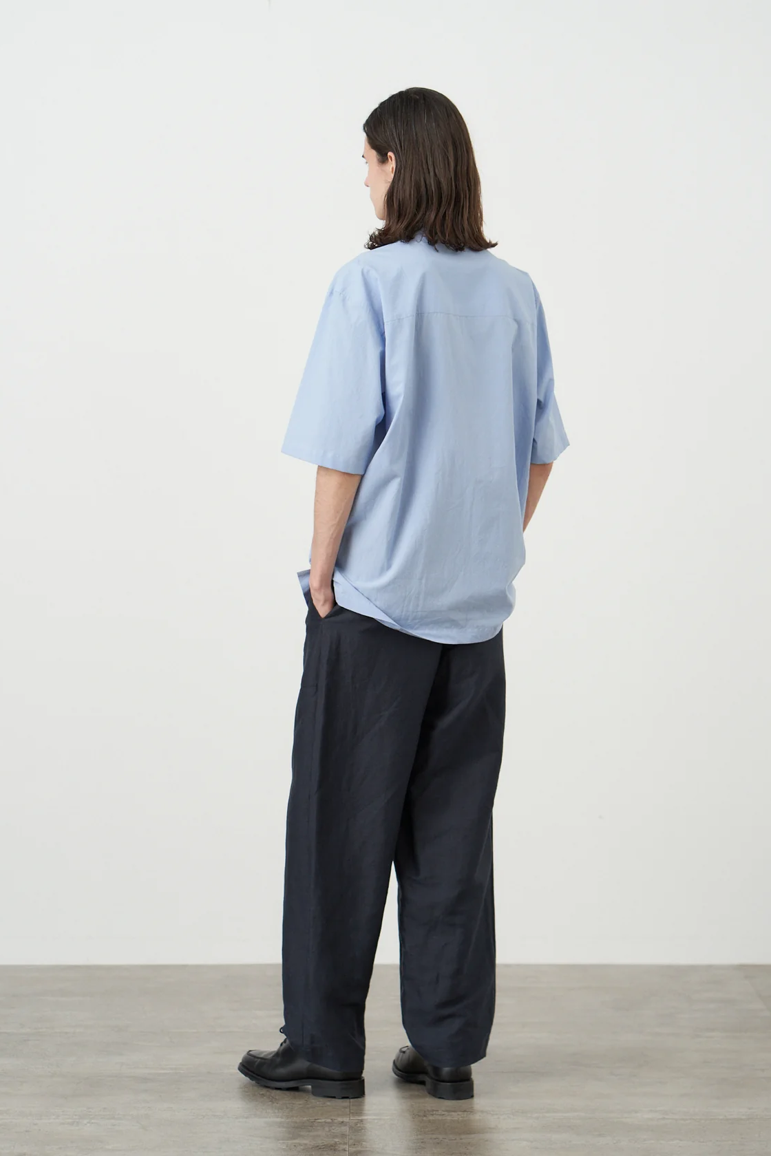 ・使用 ATON 原創材料來自靜岡縣掛川市的蘇比馬棉,緊密而緩慢地編織而成的寬幅材料。與普通的擴布面料不同,為了打造出寬鬆的襯衫,將密度設計得更為柔軟,以使用輕捻細支紗,使其變得輕盈飽滿
