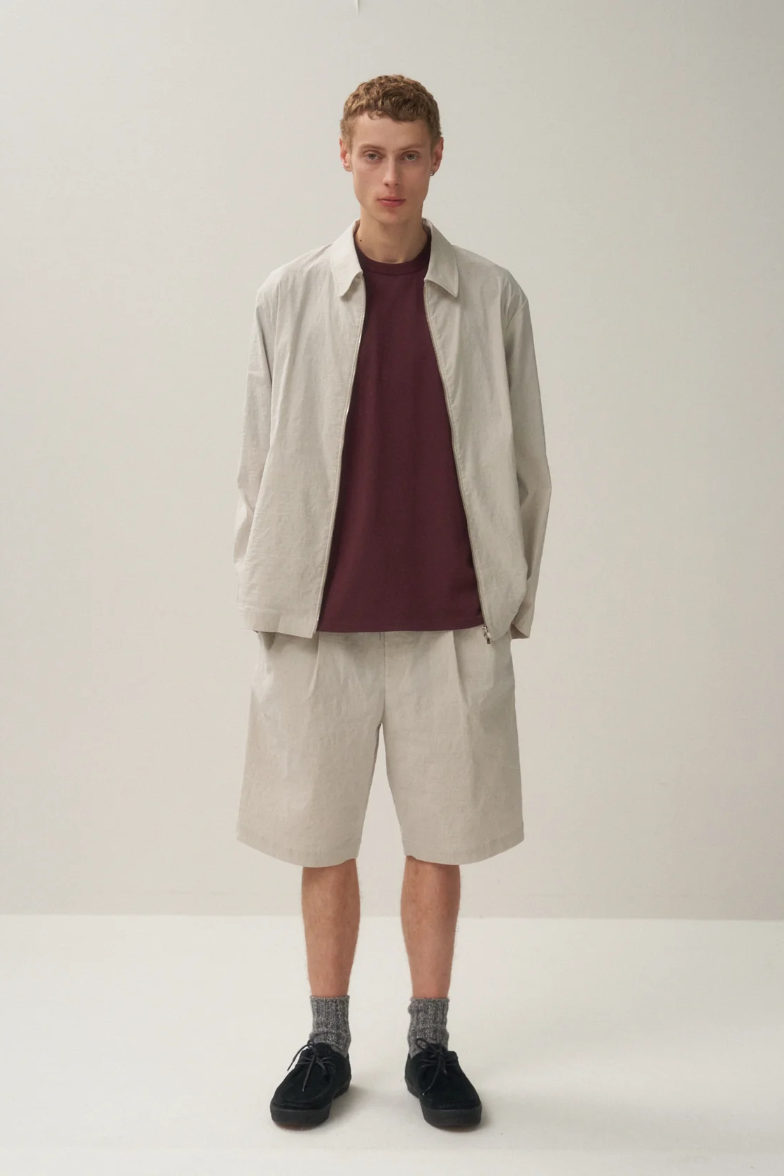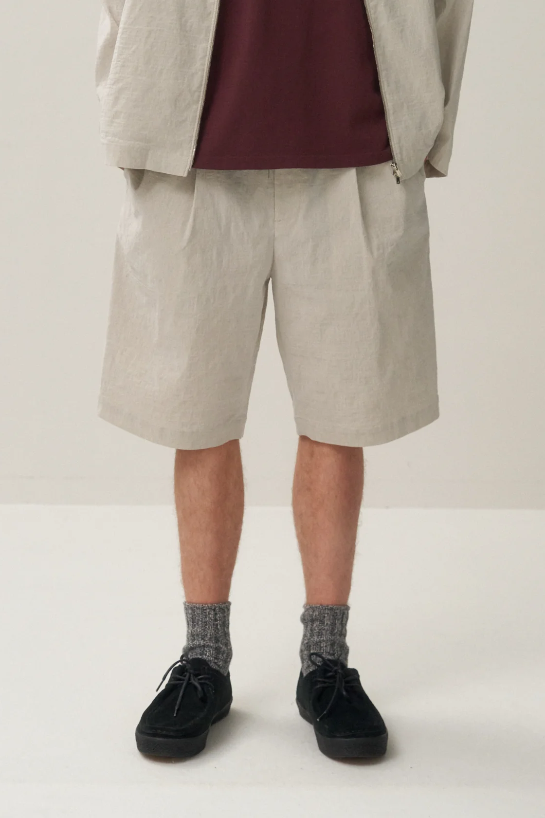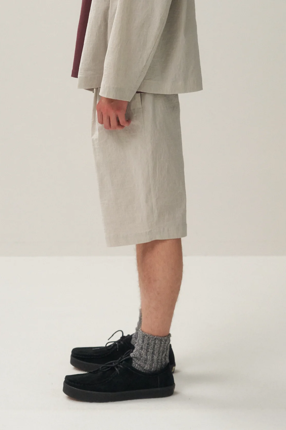 ・Aton 獨創材質,經線使用尼龍彈力紗線,緯線使用細亞麻紗線,在群馬縣桐生市緩慢而細緻地編織而成。特點在於混合了兩種材質相互矛盾的質感:尼龍彈性紗的光澤和彈性,以及亞麻布的光滑手感和獨特紋理及結實度