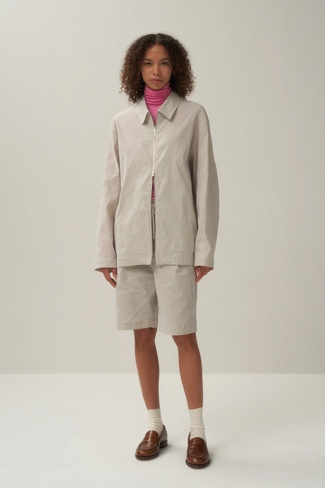・剪裁略微寬鬆的拉鏈夾克,給人輕鬆的印象