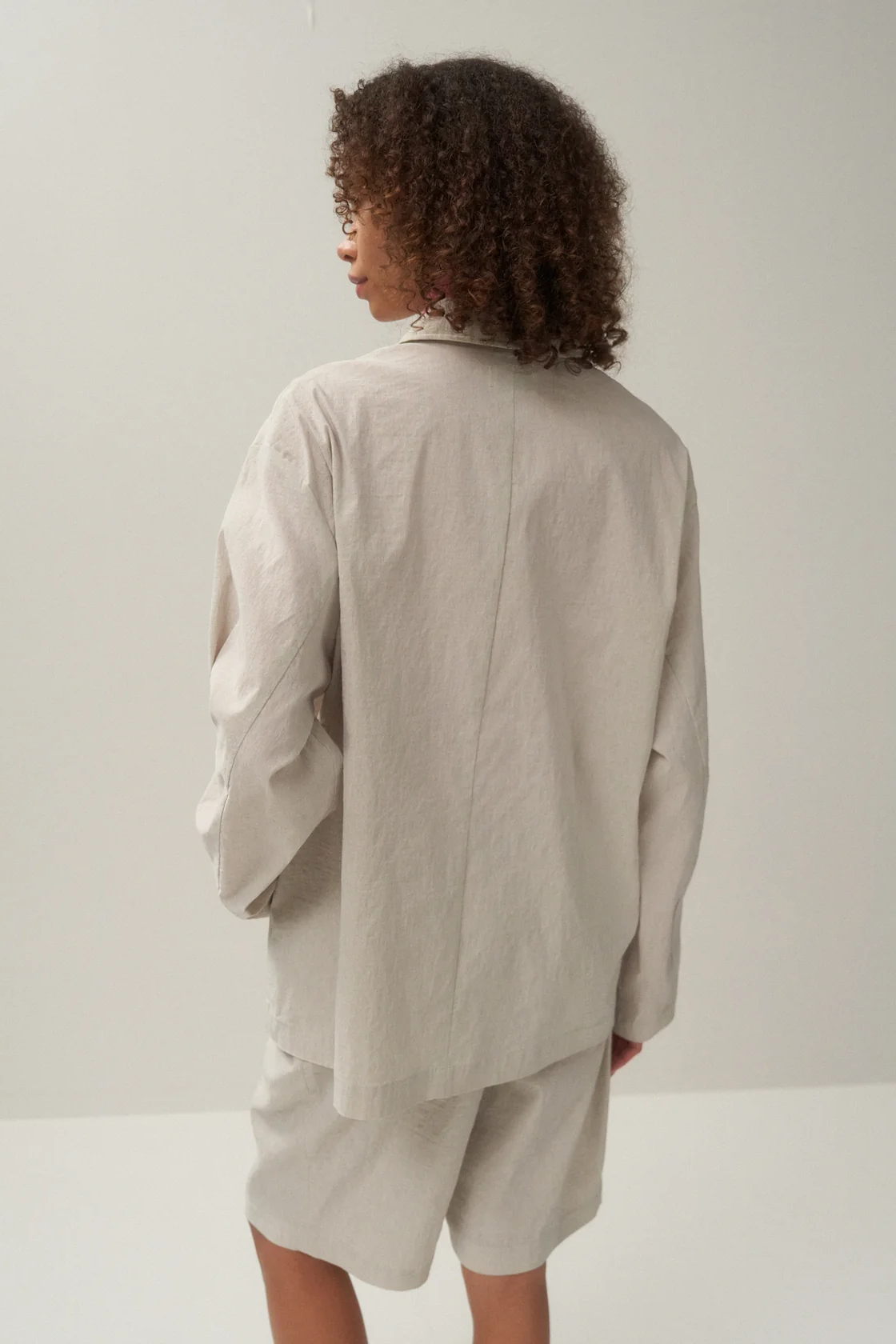 ・在群馬縣桐生市緩慢細膩編織而成的獨創材質,經線使用尼龍彈力紗線,緯線使用細亞麻紗線。混合兩種材質相互矛盾的質感:尼龍彈性紗的光澤與彈性,以及亞麻布的光滑手感、紋理及其獨特的堅韌度