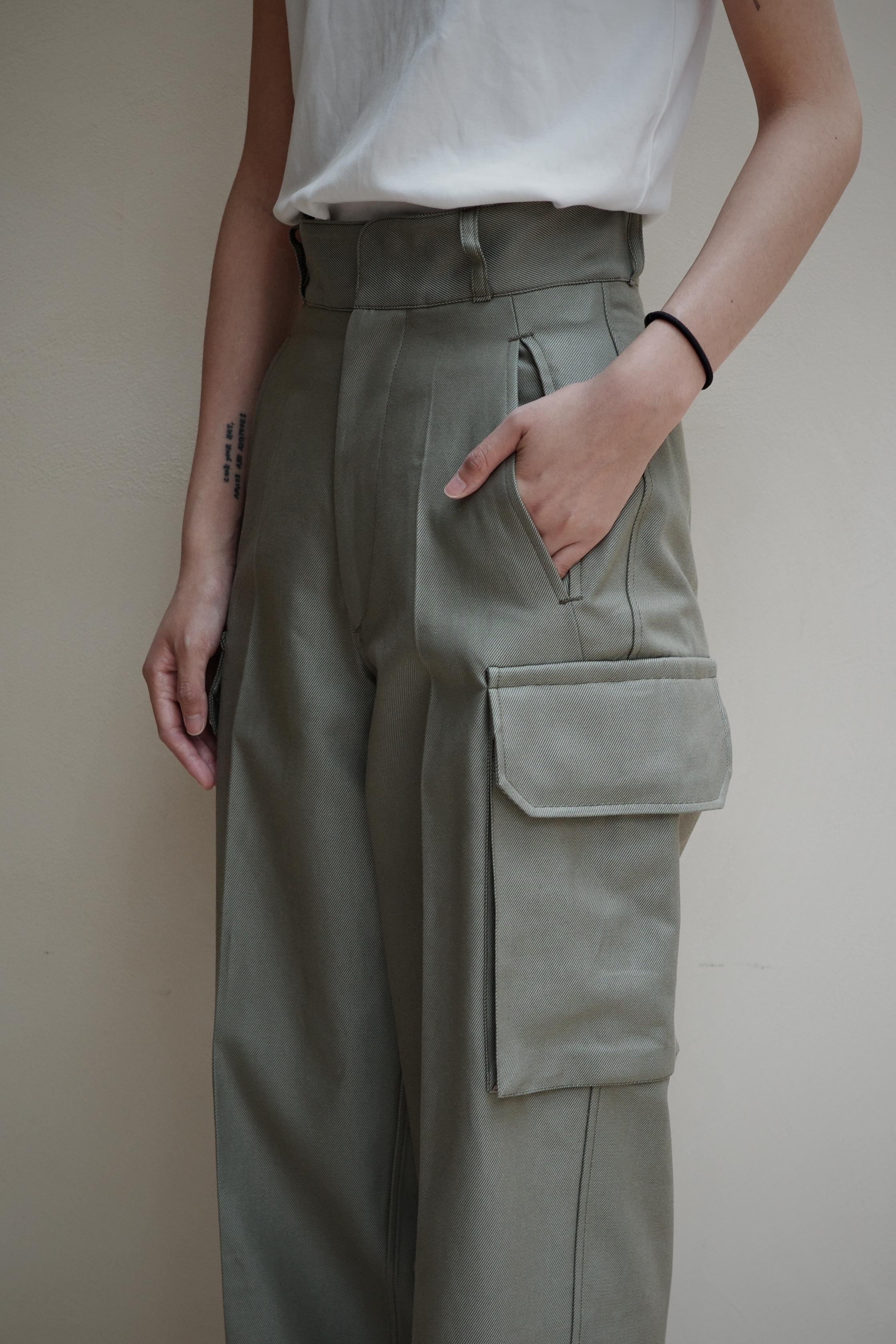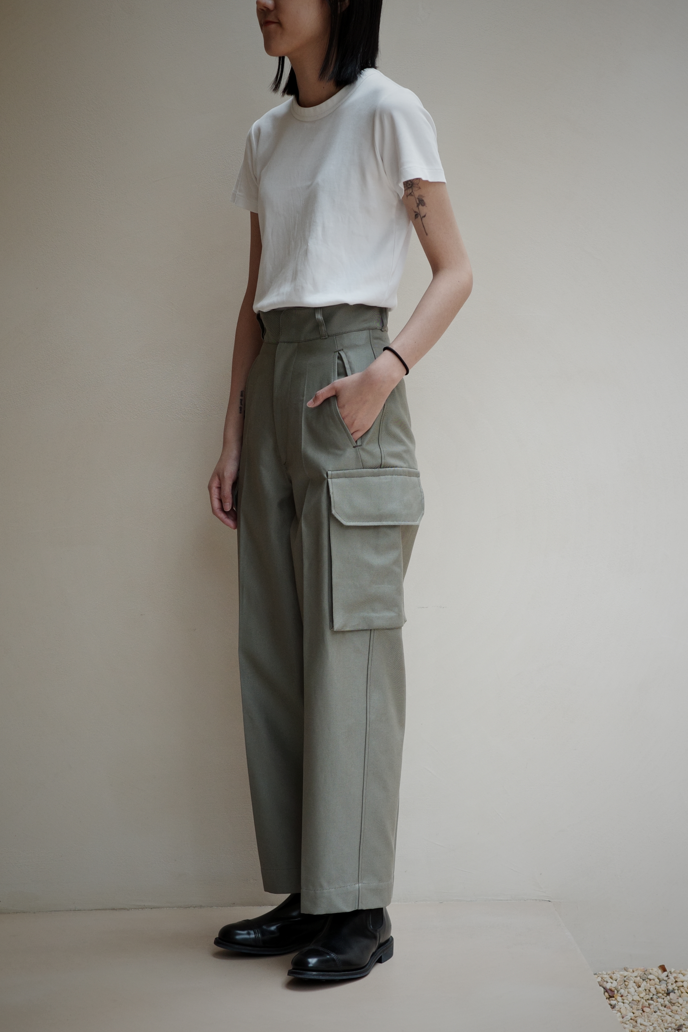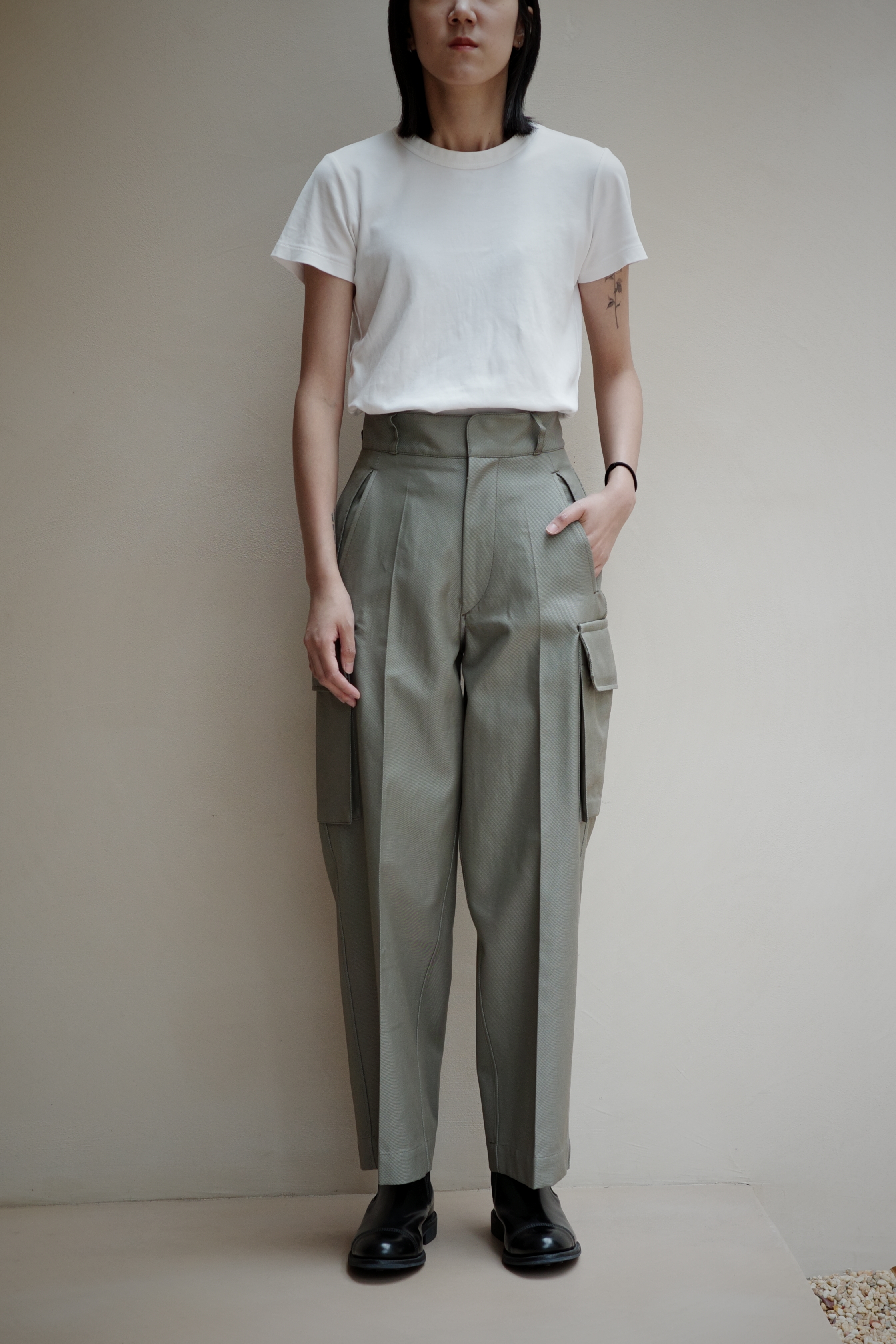 ・工裝褲採用軍裝風格設計,散發出優雅氣息