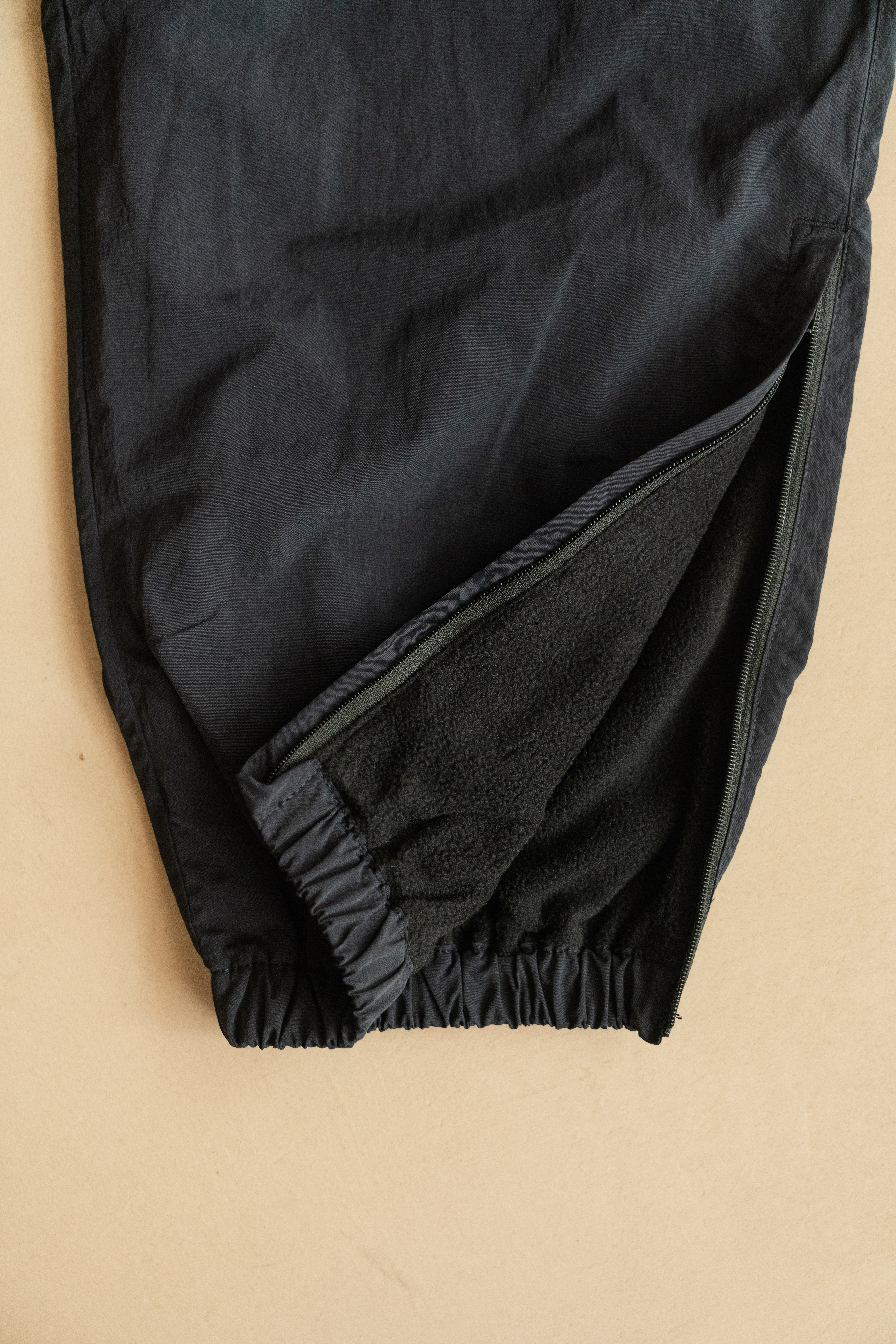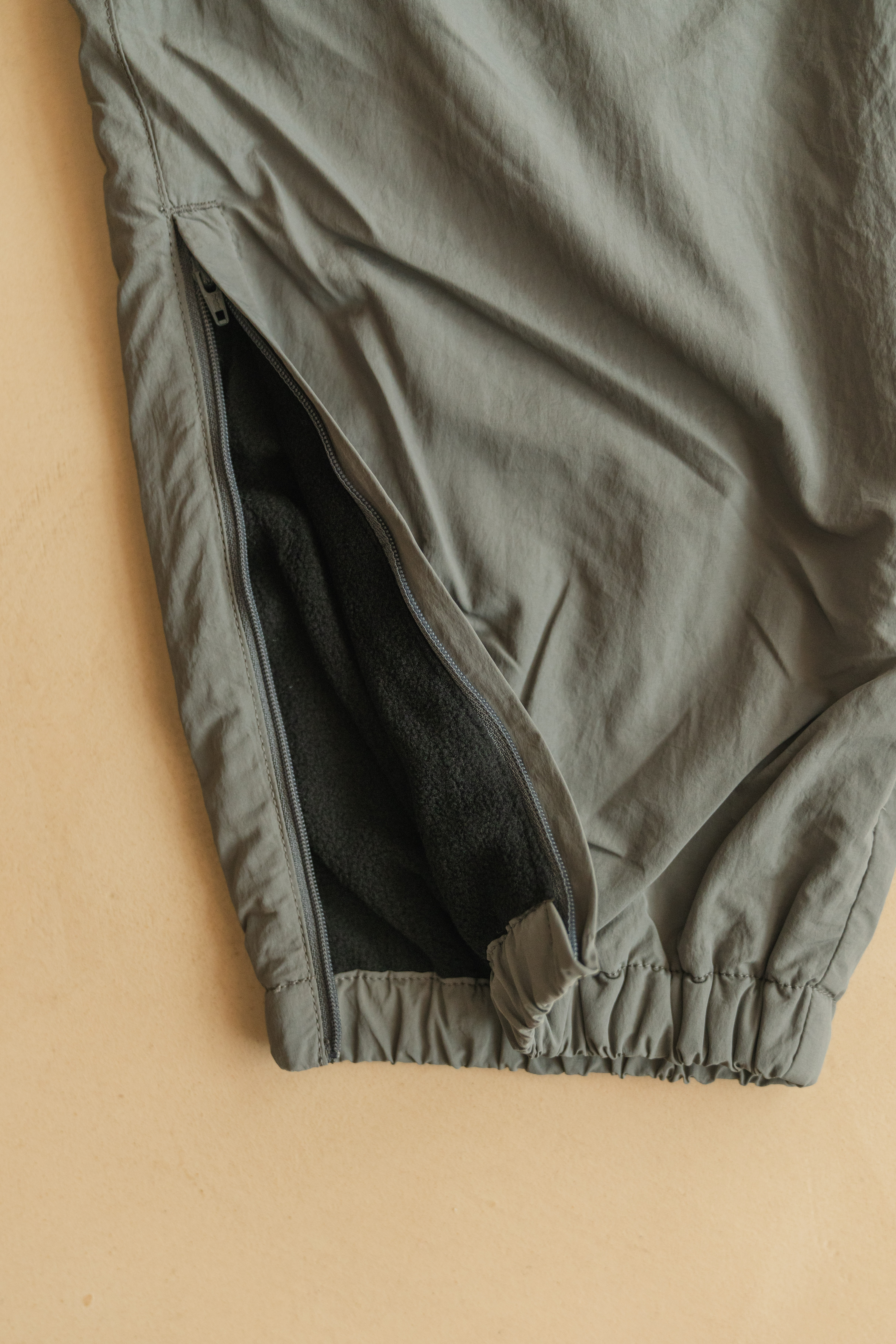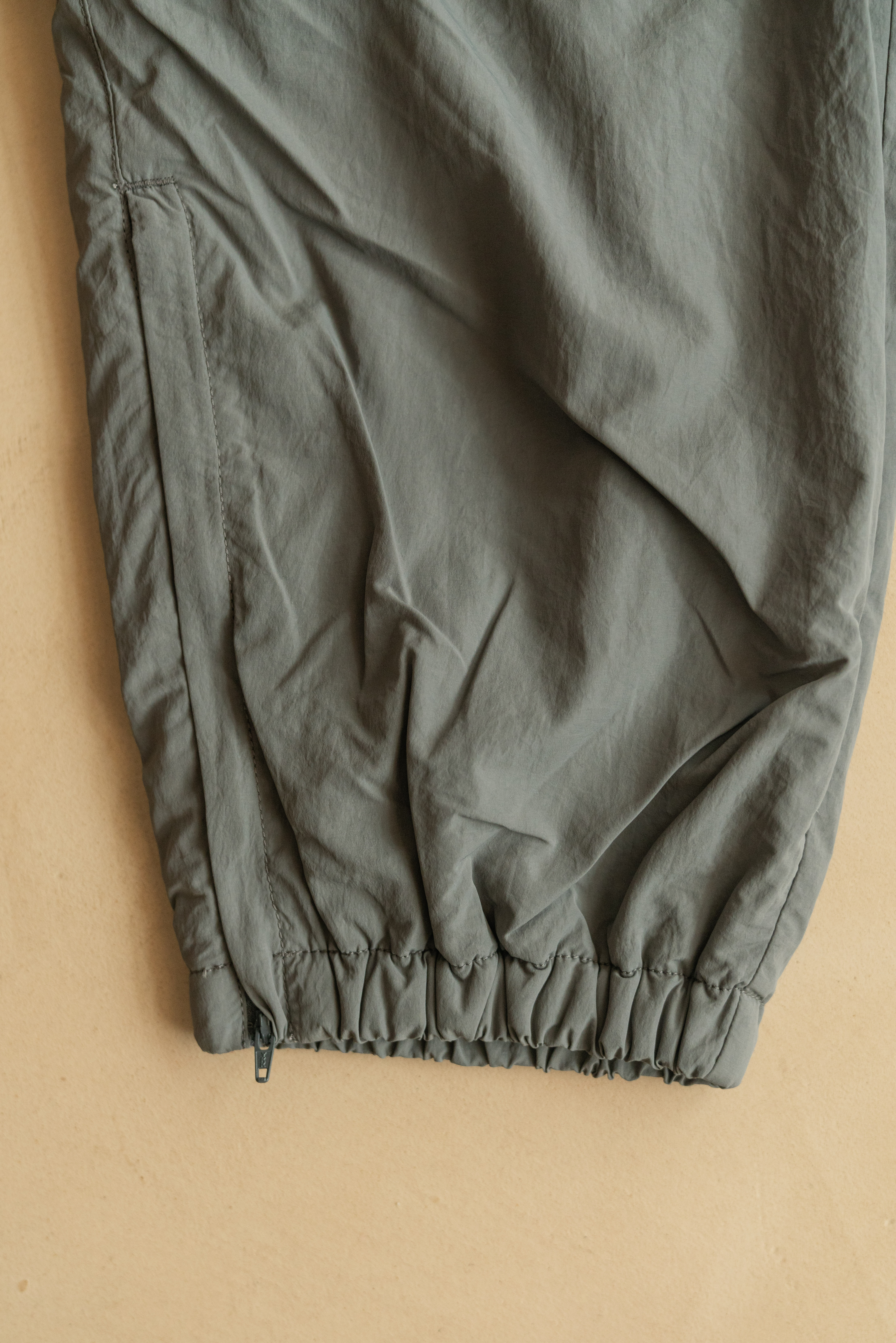 ・縮口褲管兩側配置拉鍊細節,可依穿著喜好調整褲管開口