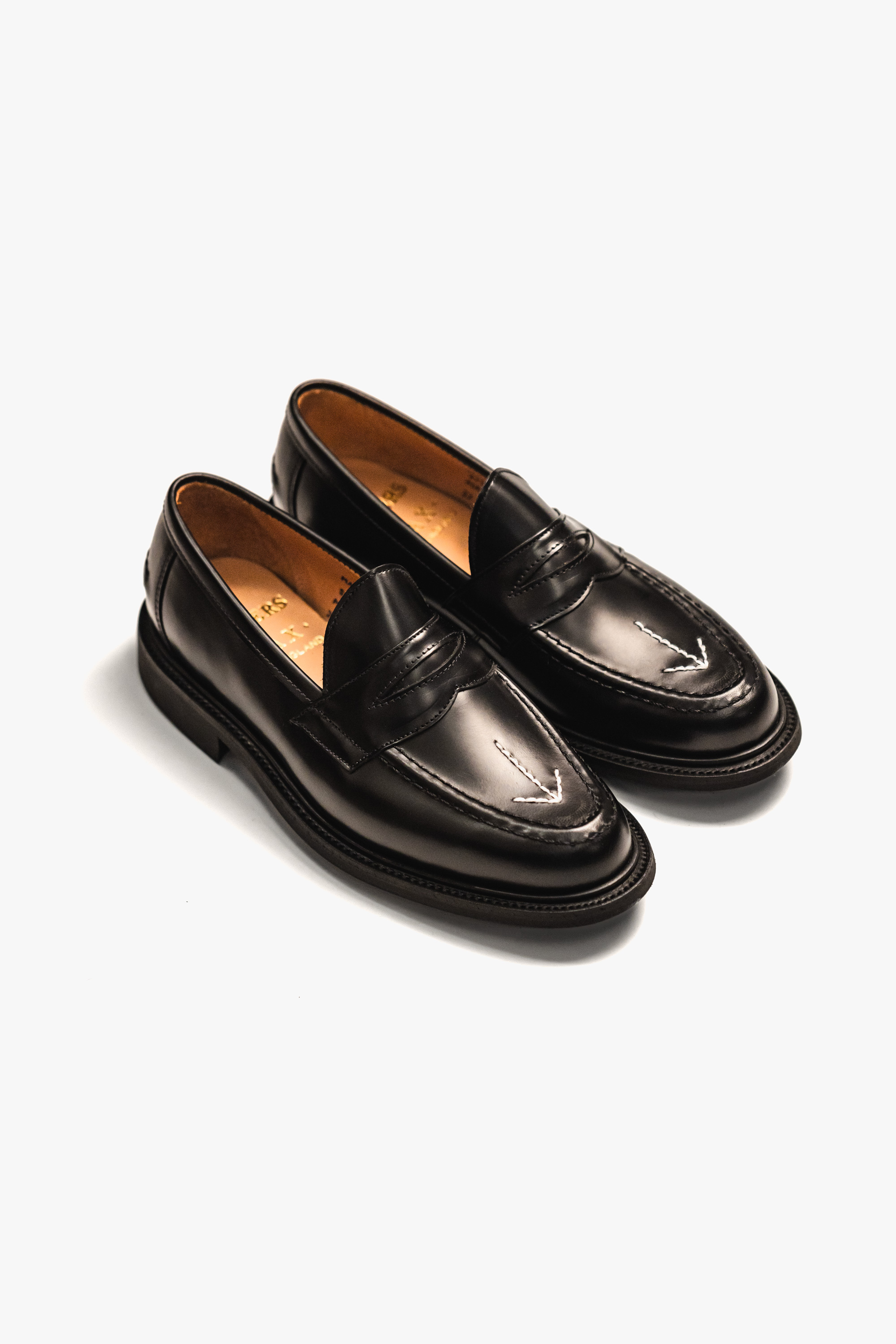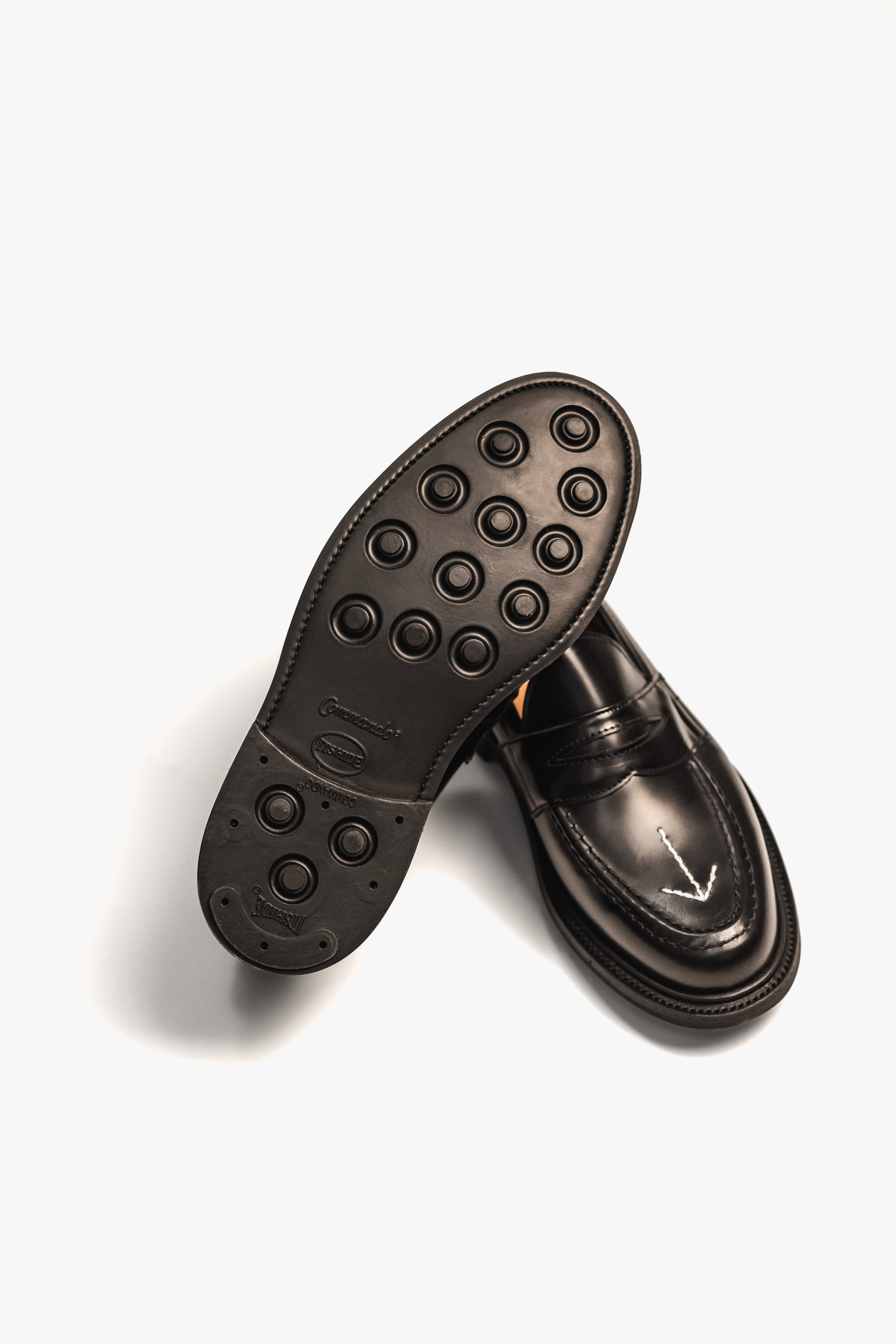 ・以代表英國軍方產物的 Broad Arrow 箭咀標誌為設計主軸,縫上近年熱度居高不下的 Penny Loafers 上,鞋底以 Goodyear Welted 製法縫紉 Itshide Commando Sole 橡膠大底,更適合日常穿著