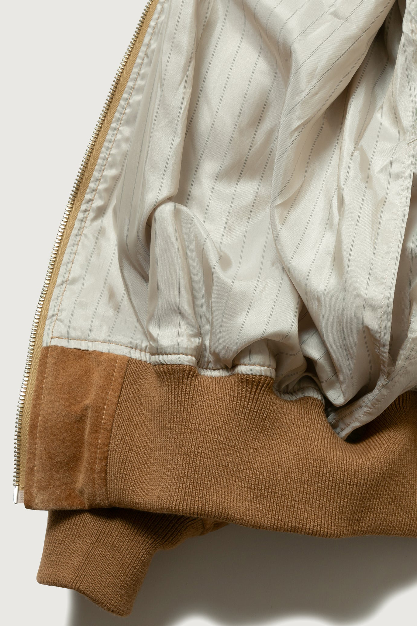 · 外層採用麂皮材質,內裏使用條紋布料,形成外柔內雅的高級層次感