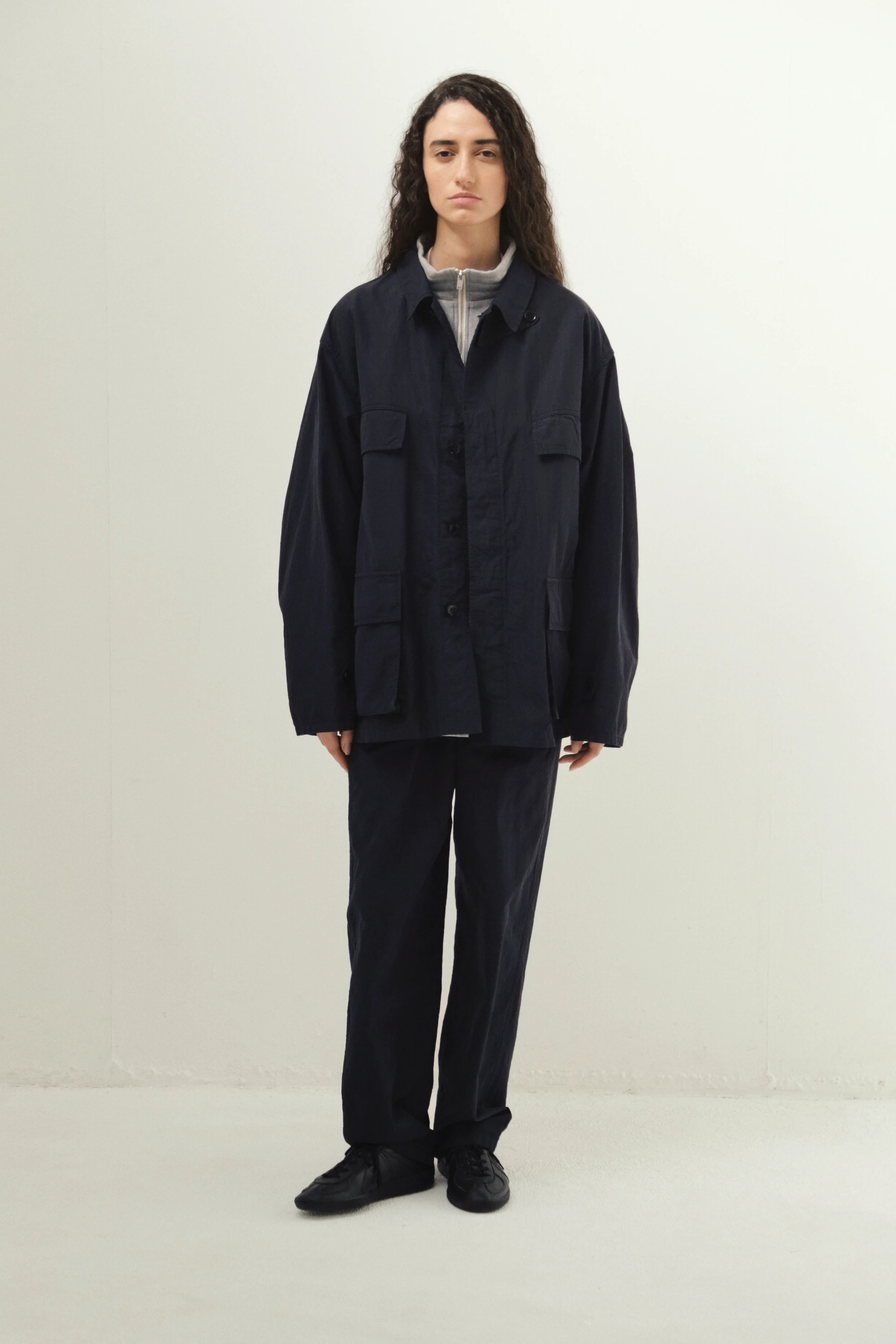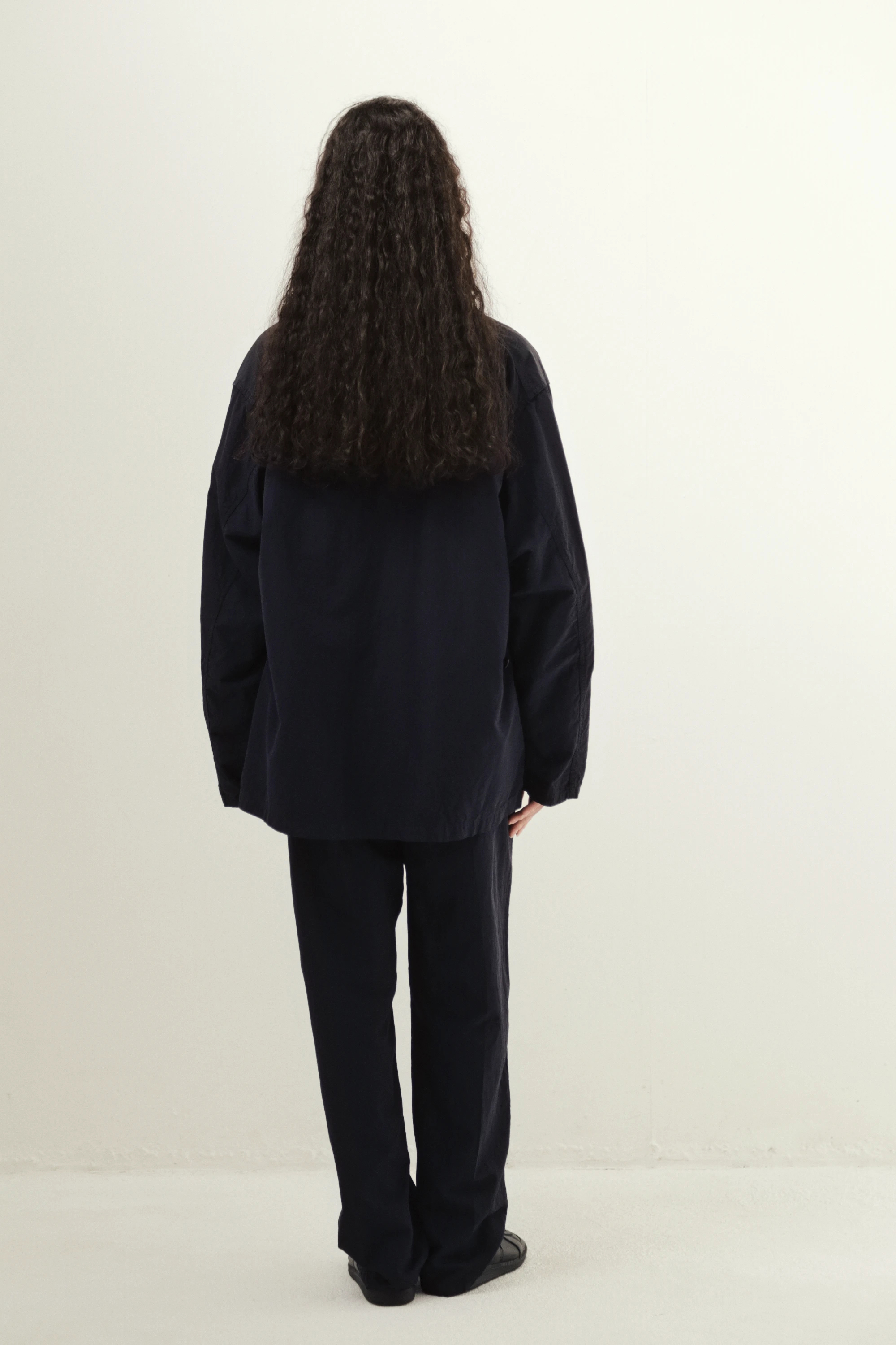 · 以舊式織機慢速織造,並經水洗與日曬乾燥,使布料含有空氣感與自然風合,呈現柔和且富有層次的質地,同時具備適度份量感,整體展現優雅精緻的形象