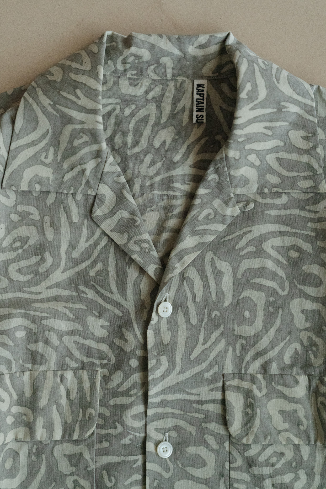 ・塊狀印花全棉開領襯衫