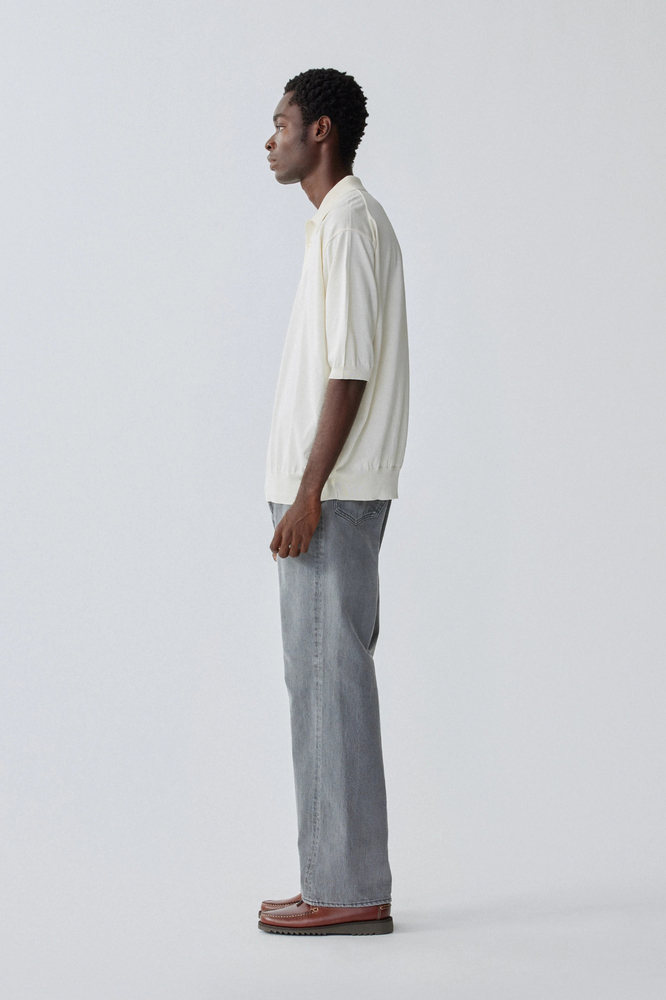 採用優質 Sanforaquin 棉,以特殊紡紗方法與天然棉結混合,並用純靛藍染色