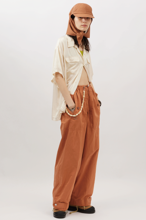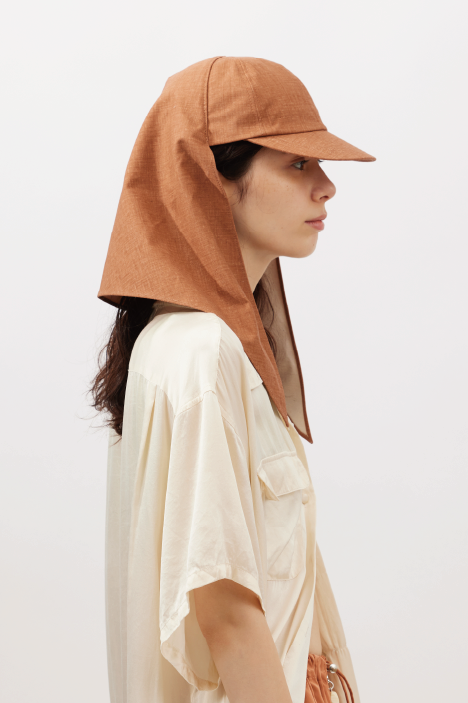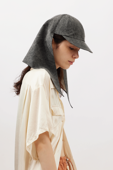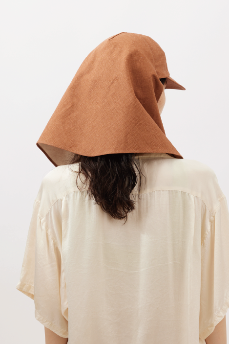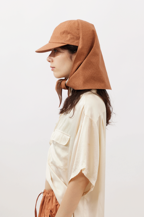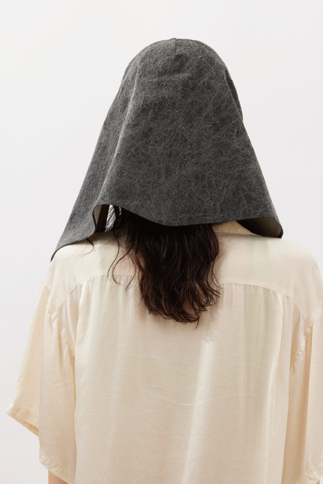 ・獨特的圍巾式下垂設計將布料從頭後垂下,適合所有人