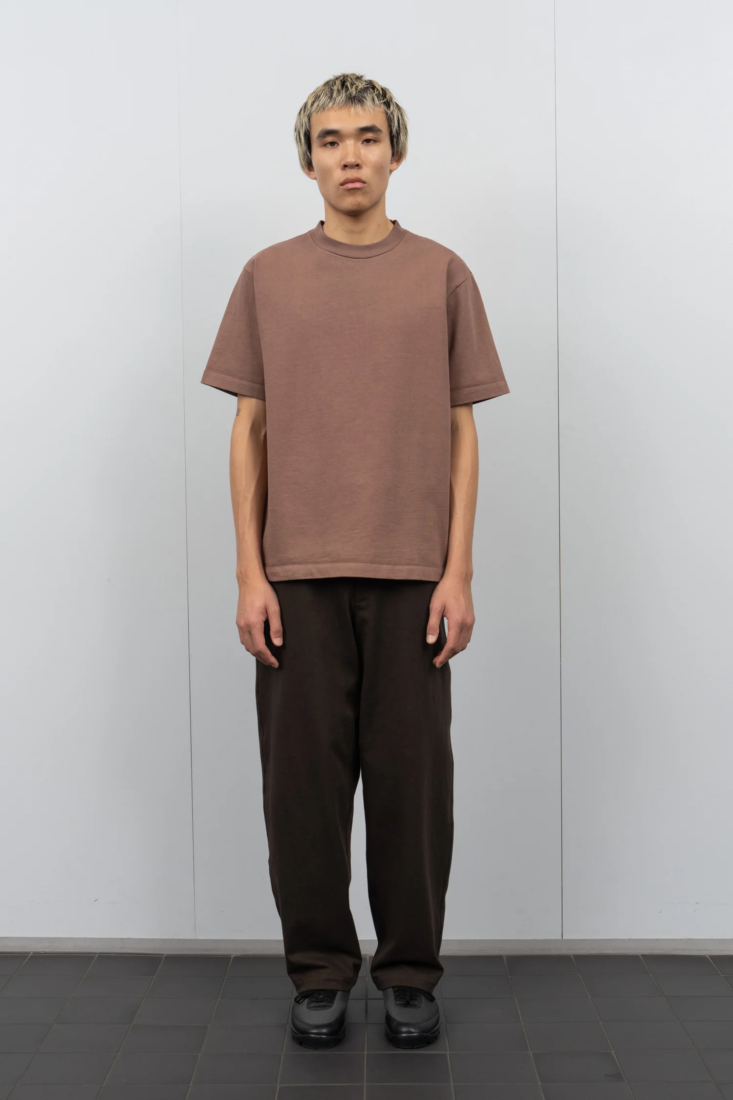 ・布料柔軟、光滑的手感,平衡了寬身方型輪廓,呈現結構性的垂墜感
