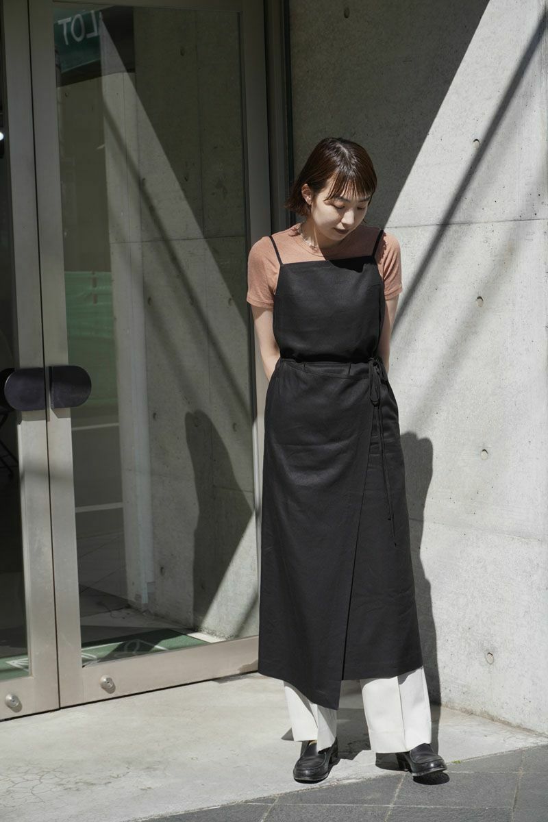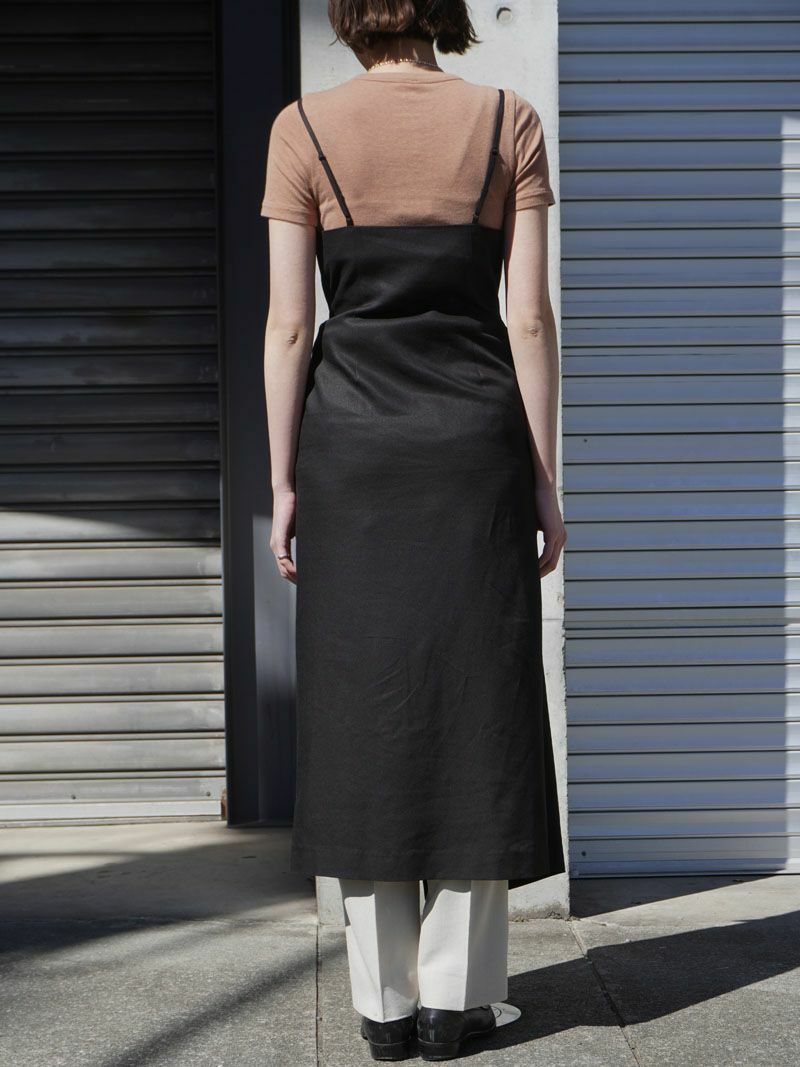 ・柔軟斜紋人造絲圍裙式連身洋裝