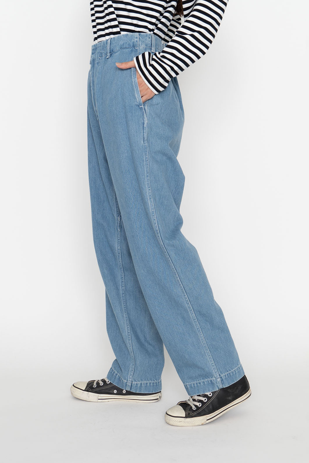 ・寬錐形剪裁牛仔褲