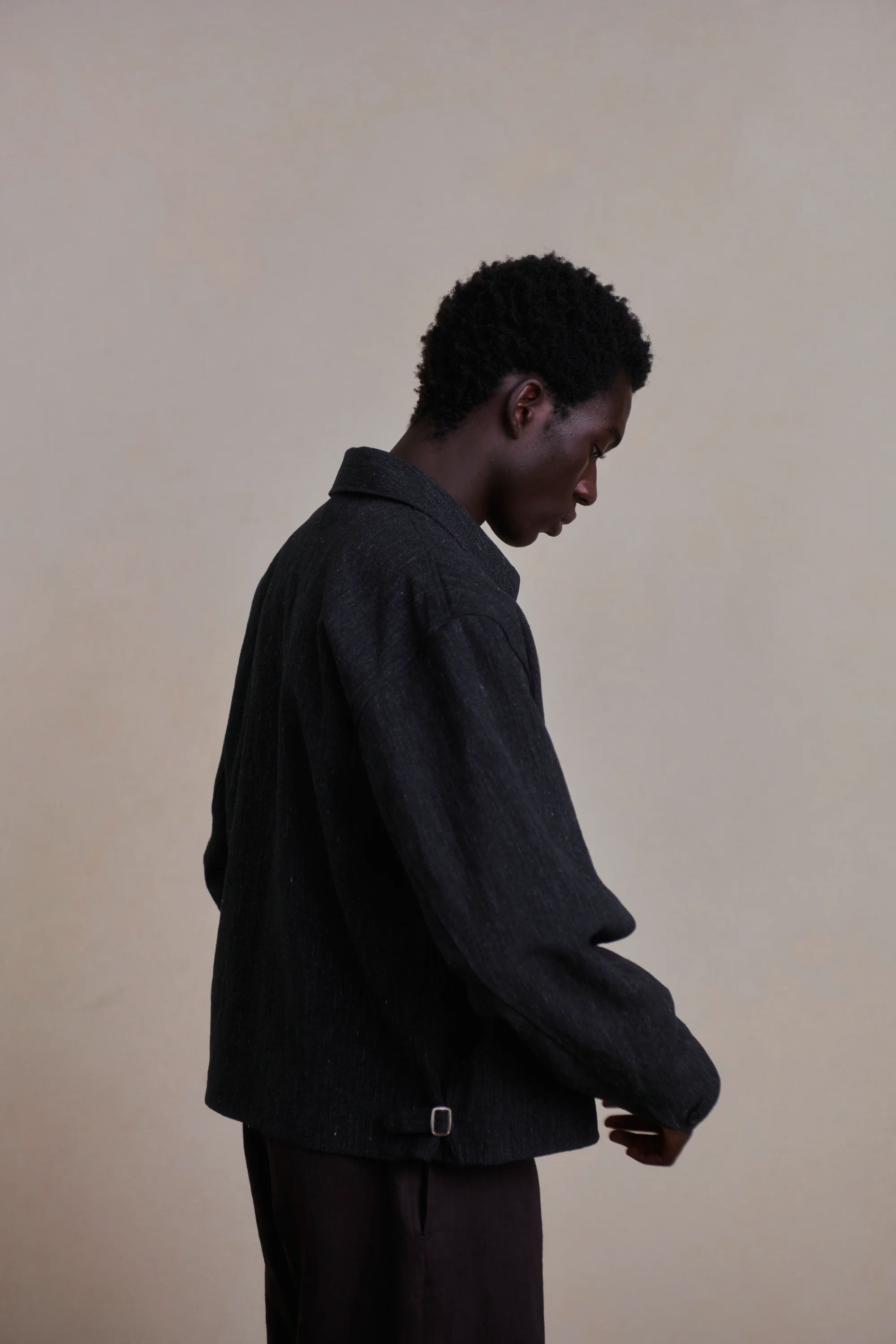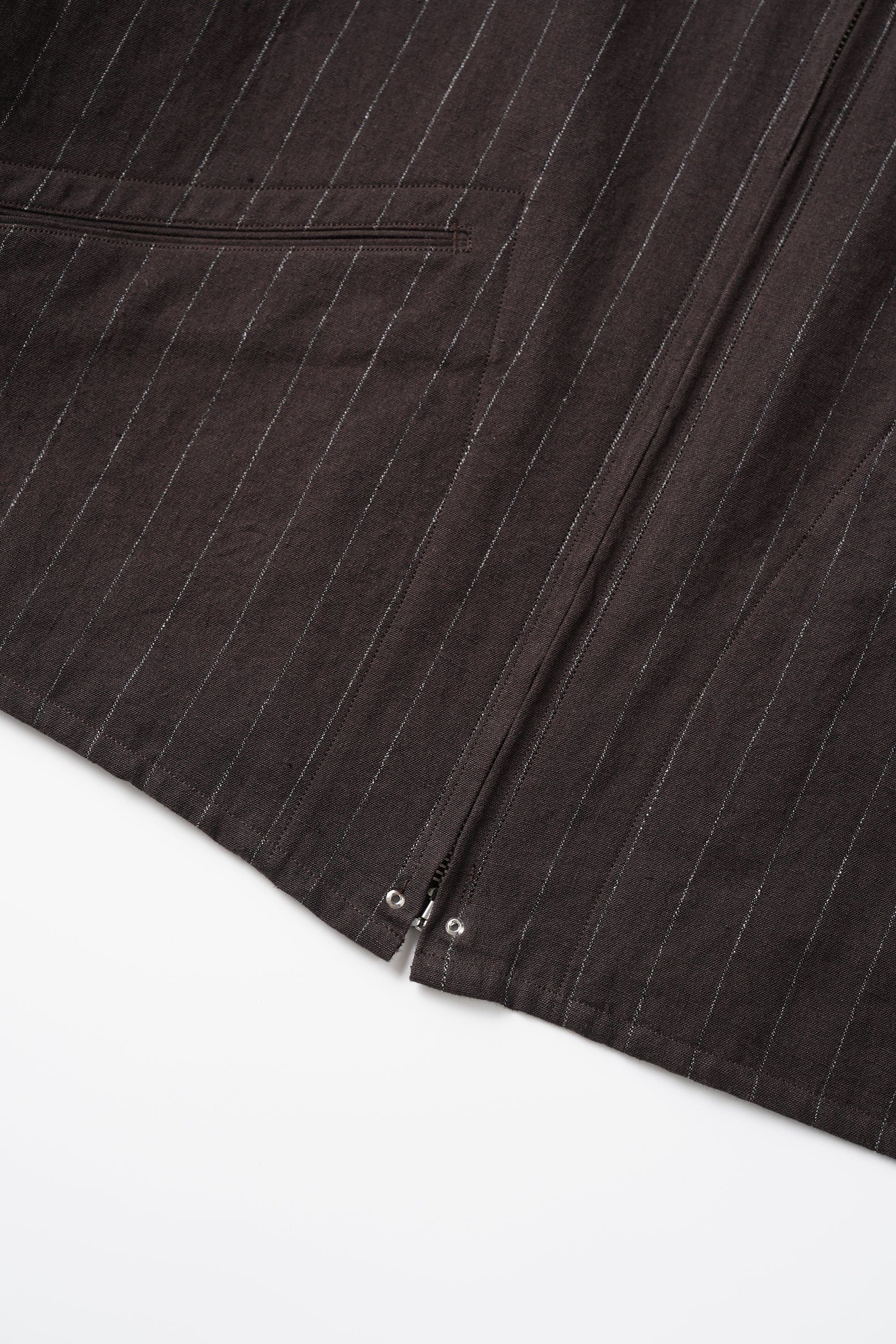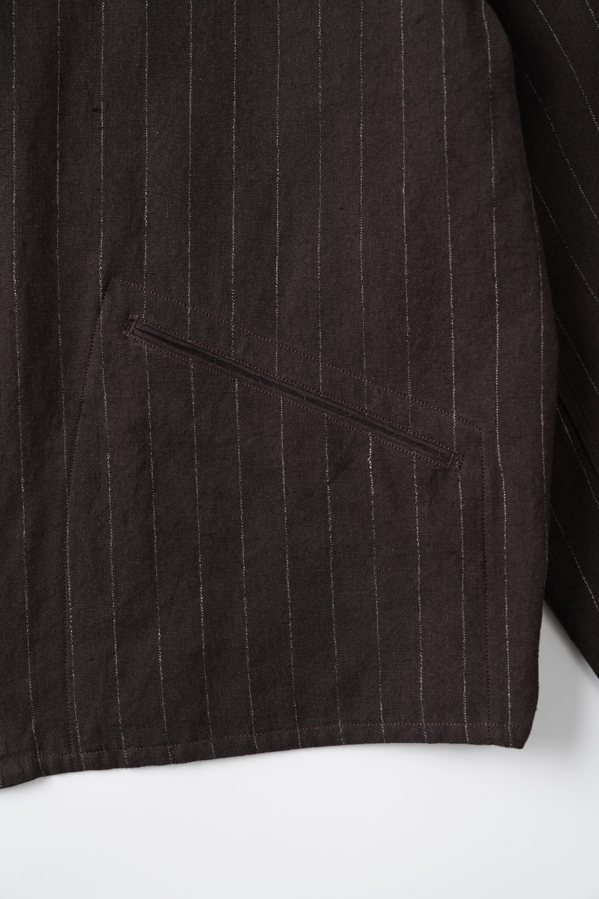 · 經緯紗以深淺 1:1 比例交織,形成細緻的 Hairline 紋理效果,整體呈現低調但富有深度的視覺層次