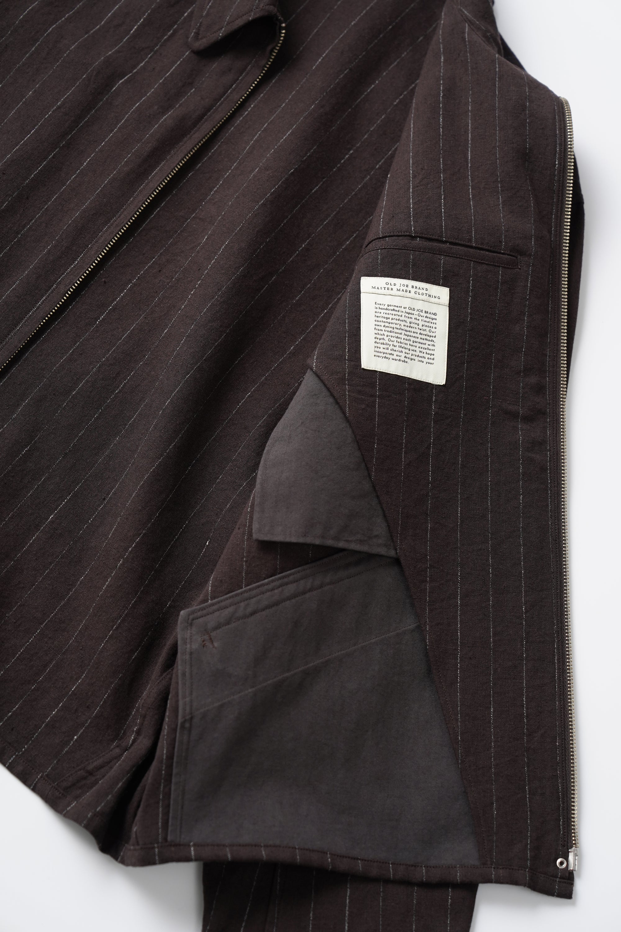 創立於 2007 年的 OLD JOE,因主理人高木雄介鍾情於 1930 至 1940 年的黃金歲月,在 OLD JOE 的每一件設計中都能充分感受到當年的紳士氛圍和訂製細節。「歷久不衰」一詞宛如為 OLD JOE 量身打造,特別是在現今流行汰換快速的環境,無論是手工縫製、染製的技術或精細的剪裁細節所帶來的獨特復古氛圍感,都是相當難能可貴的。