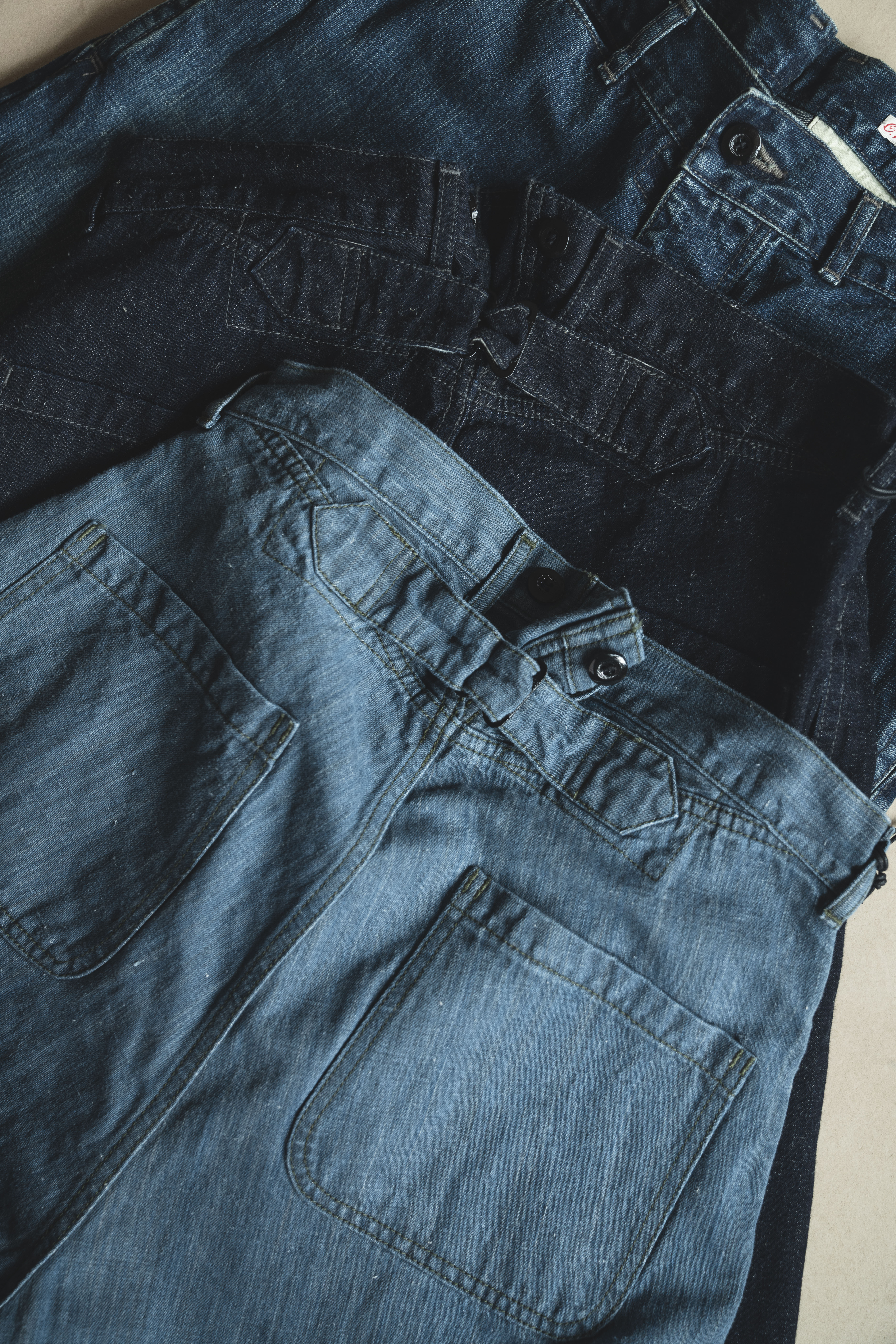 ・OUTIL 原創的 D.INDIGO 經線採用天然靛藍繩染,緯線採用棉麻混紡紗線,可以感受到隨時間推移產生的變化