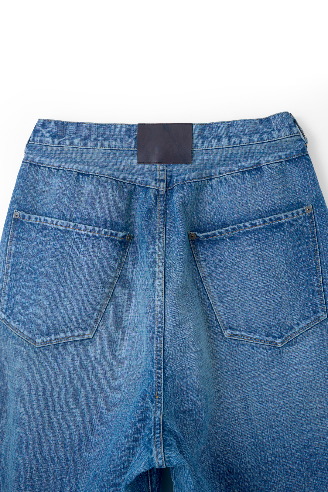 · 採用縱向掉色的牛仔布,並以舊化工藝帶來富有層次感的風貌與自然磨損效果