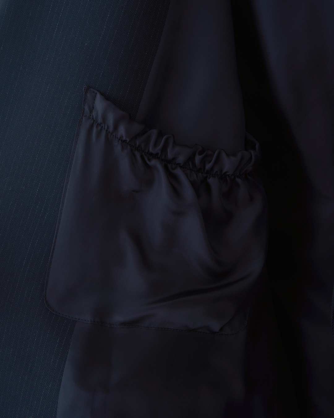 · 設計靈感取材自具歷史底蘊的工作服品牌故事,將其精神轉化為更具正式感與結構性的雙排扣外套