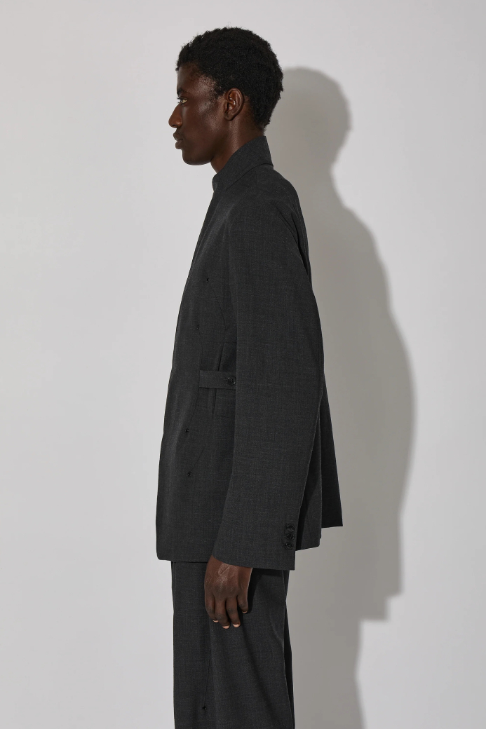 ・融入經典袖口扣飾和後開衩,完整呈現俐落的西裝剪裁