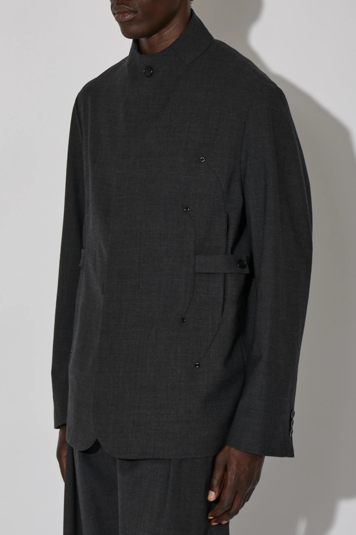 ・兩側的 ARCHED DARTS,雙弧形線條與金屬扣眼,結合側插口袋,展現獨特的細節設計