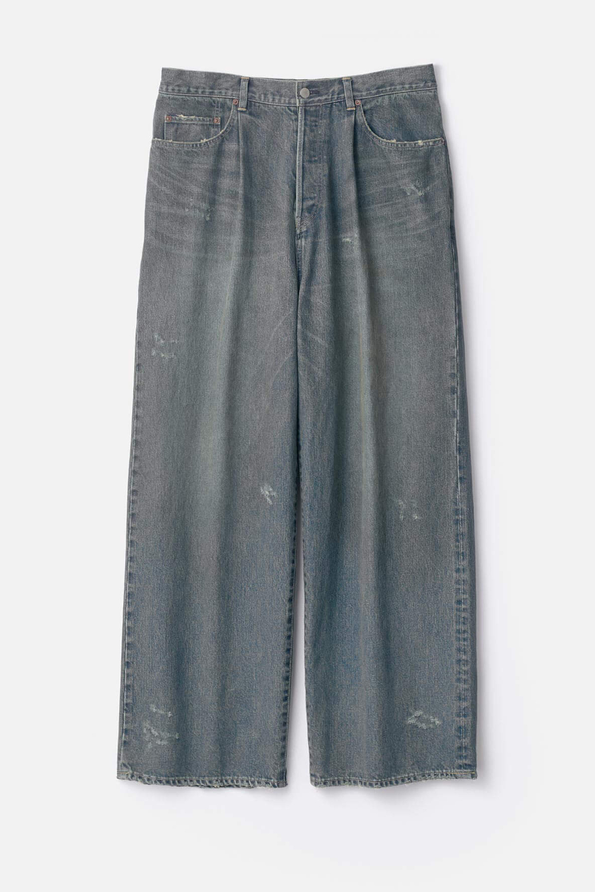 · 採用 13oz Uneven Denim 製成,透過多重加工處理,營造具有層次感的布面質感