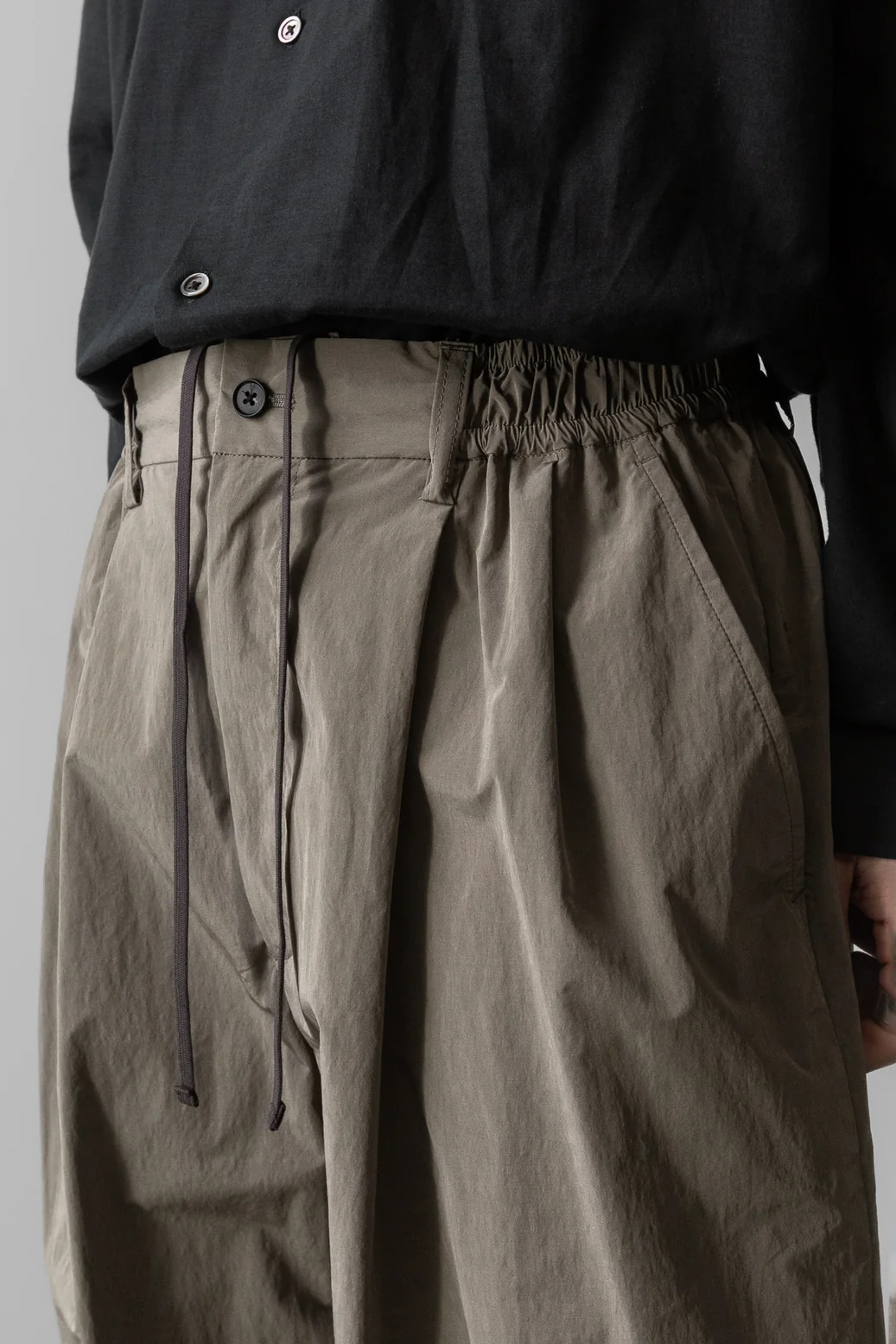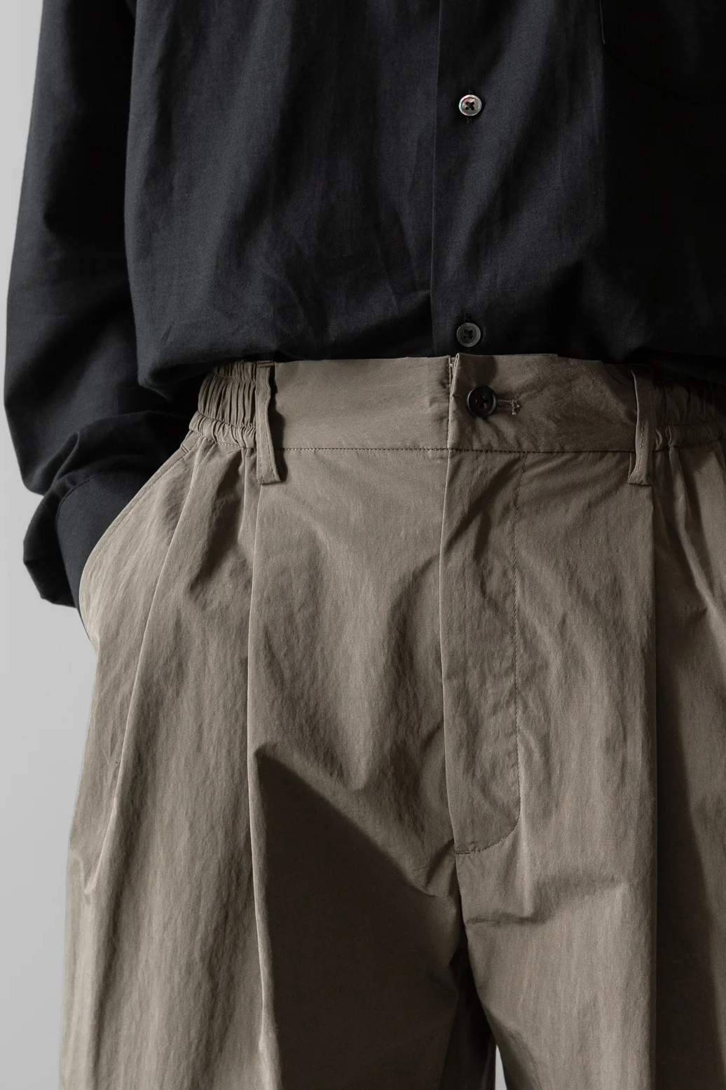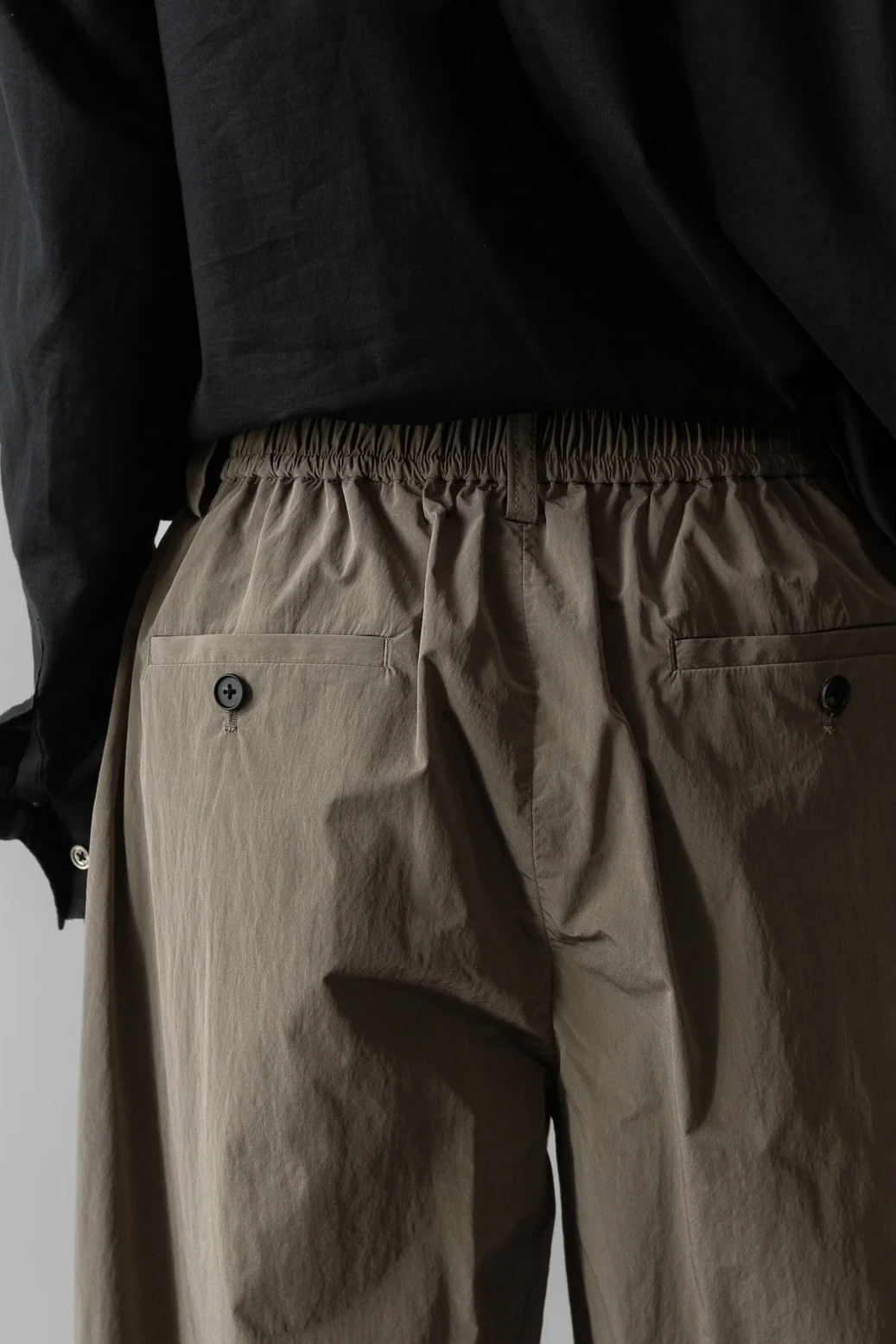 ・採用 OLMETEX PE/PA/CO 材質,經過水洗後呈現自然皺紋外觀,同時帶有優雅的光澤