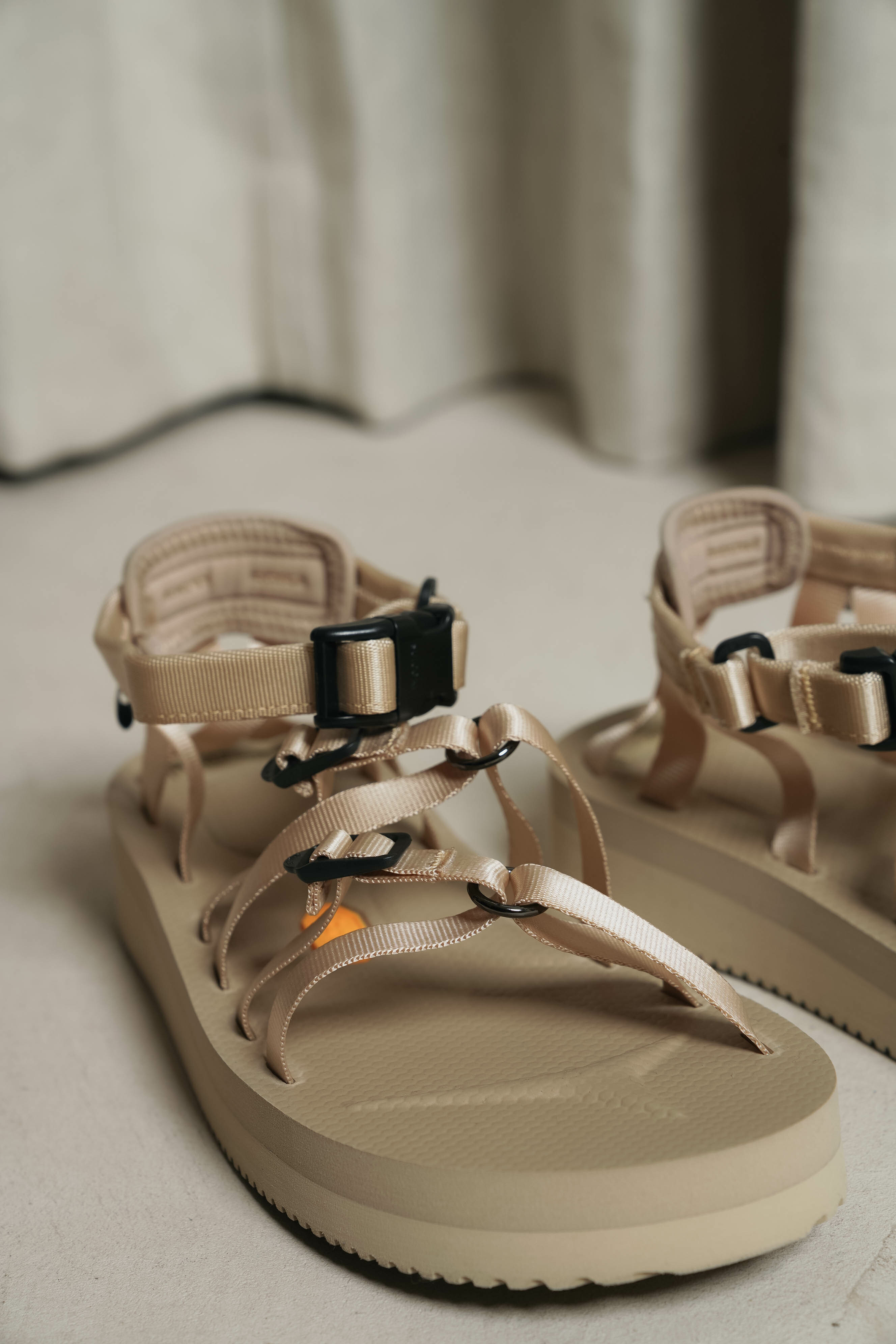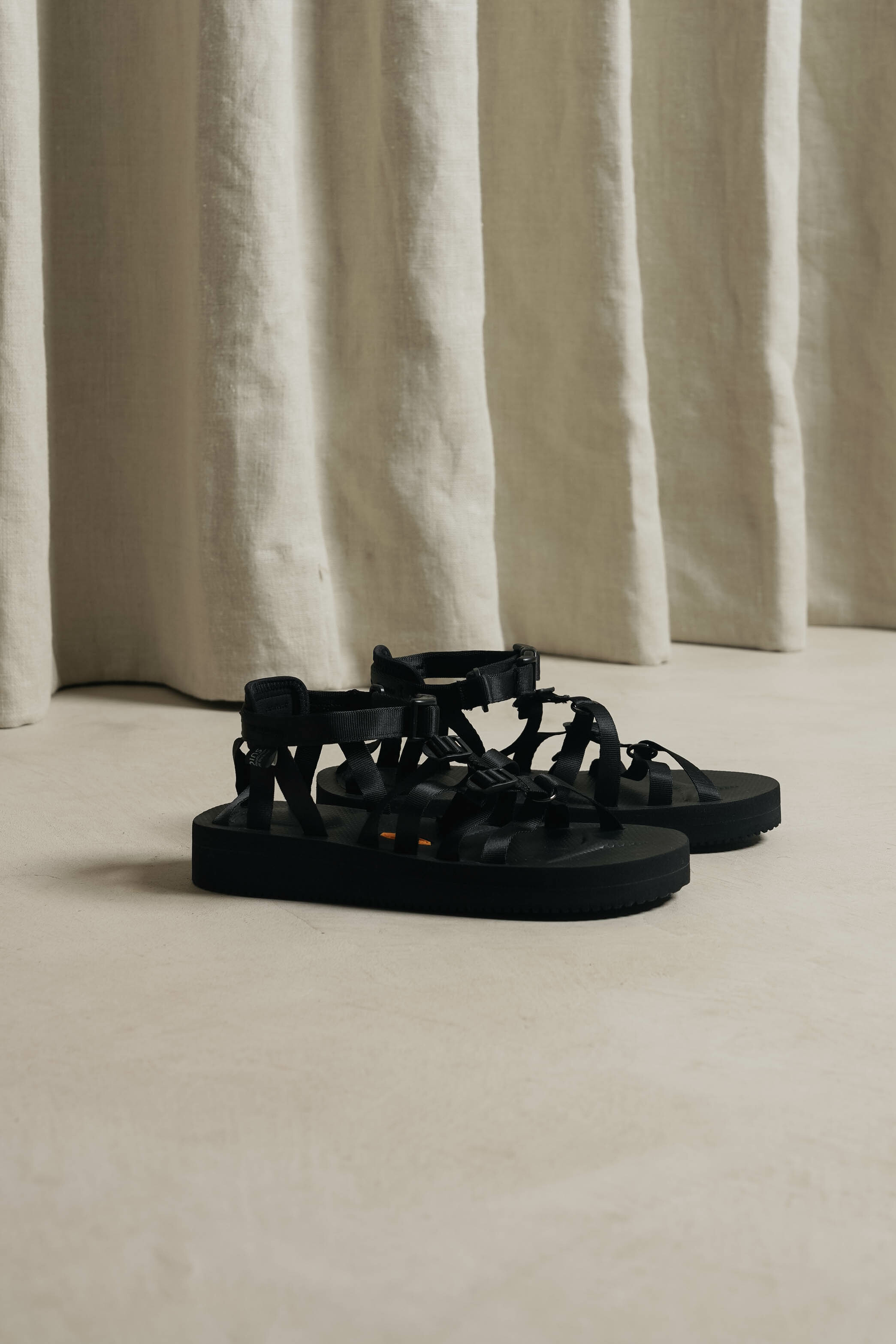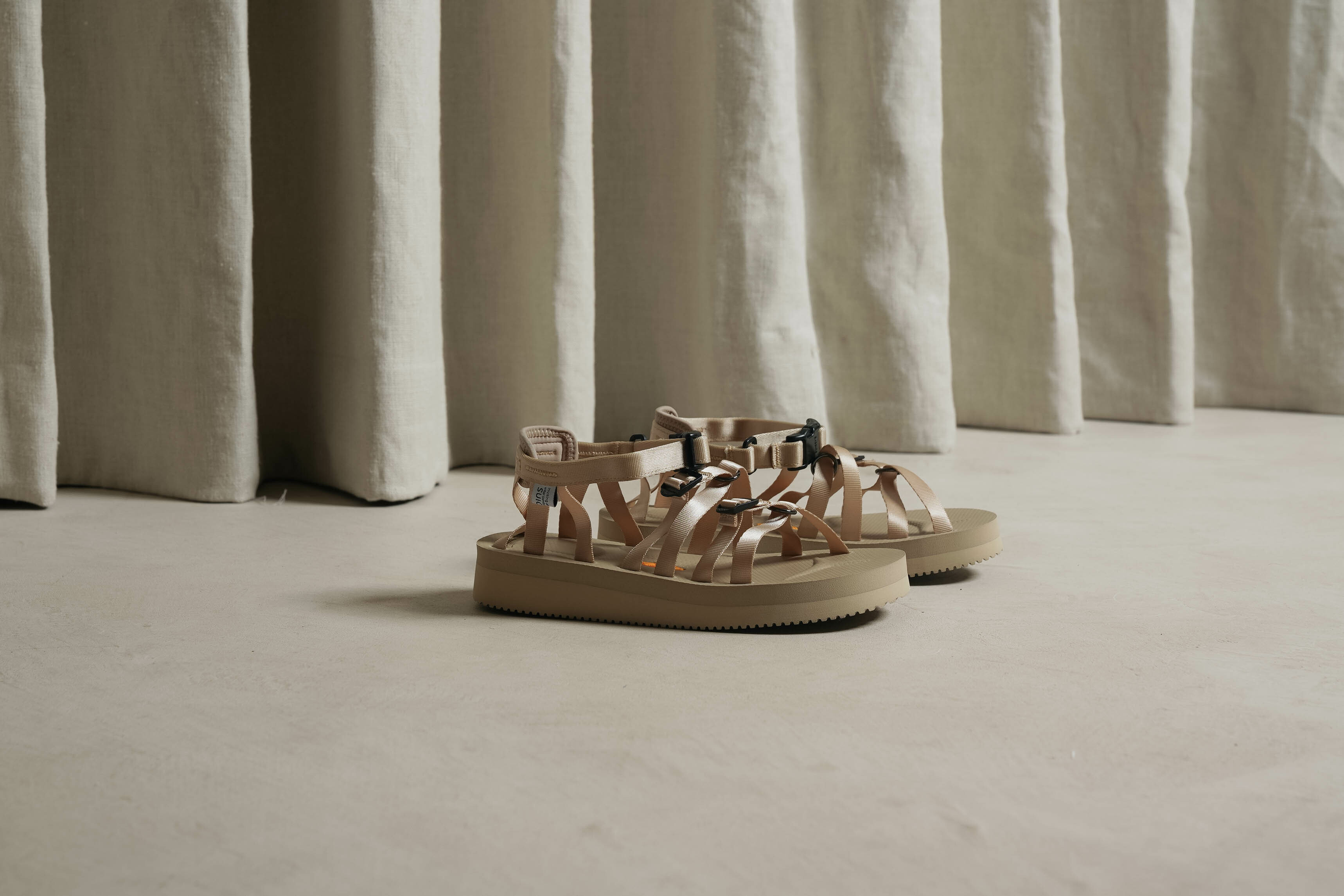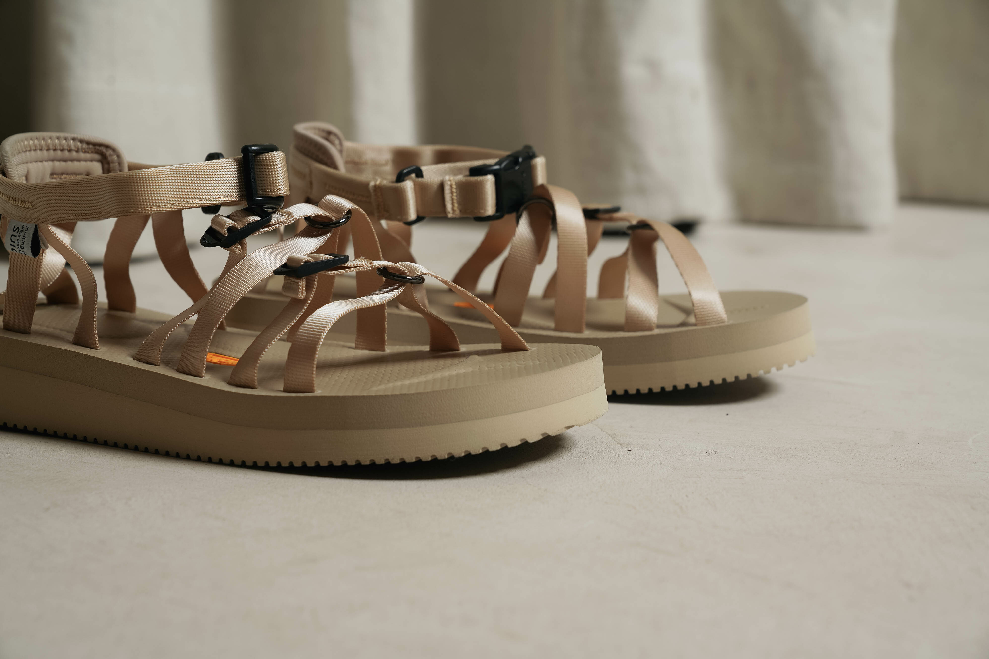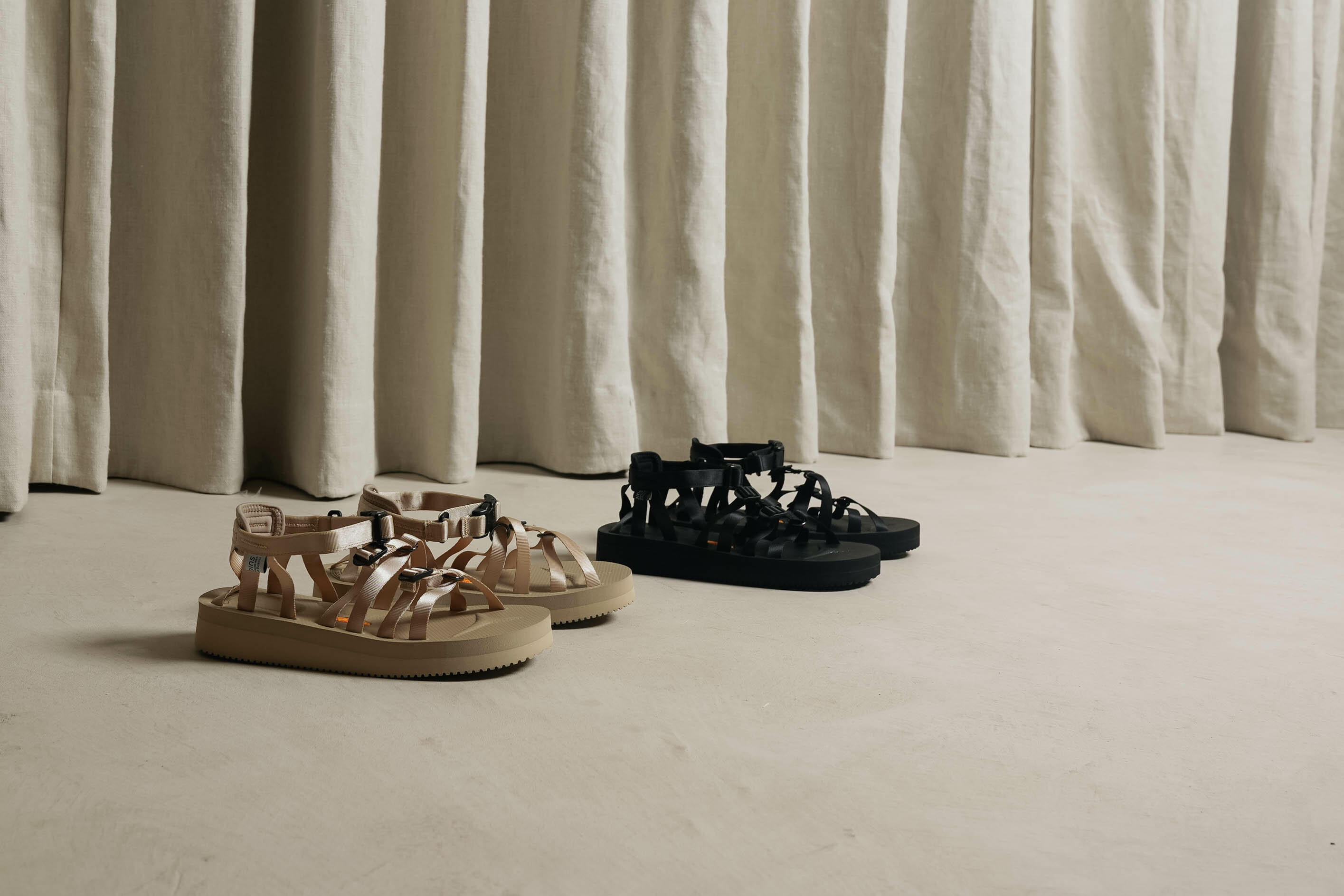 以夏日必備元素單品 - 羅馬涼鞋 作為基底,再加入 SUICOKE 的機能樣貌做呈現。