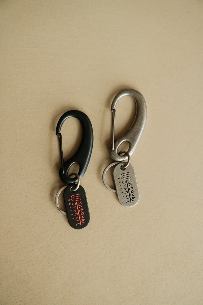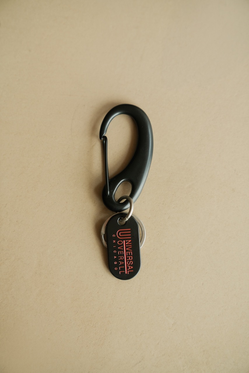 · 配有 LOGO 刻印吊飾的登山扣式鑰匙圈