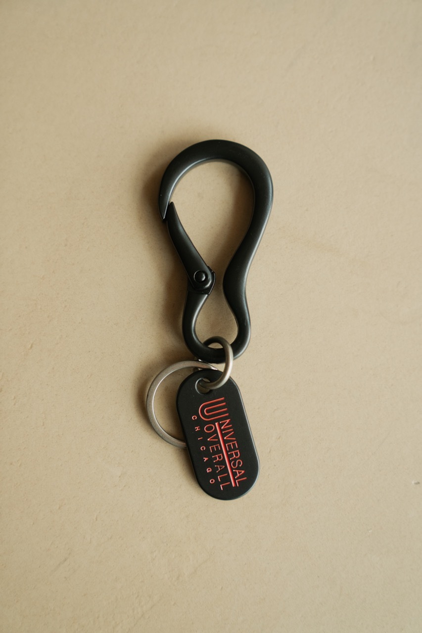 · 配有 LOGO 刻印吊飾的登山扣式鑰匙圈