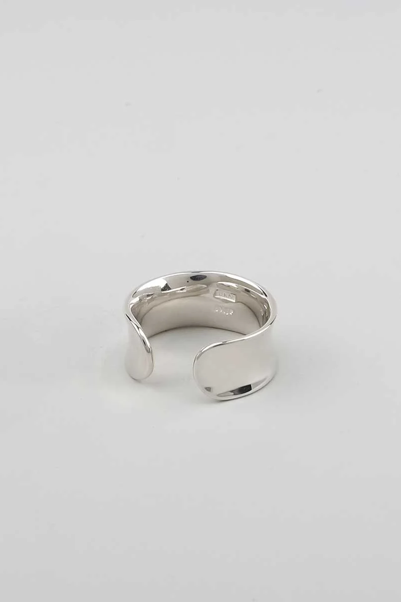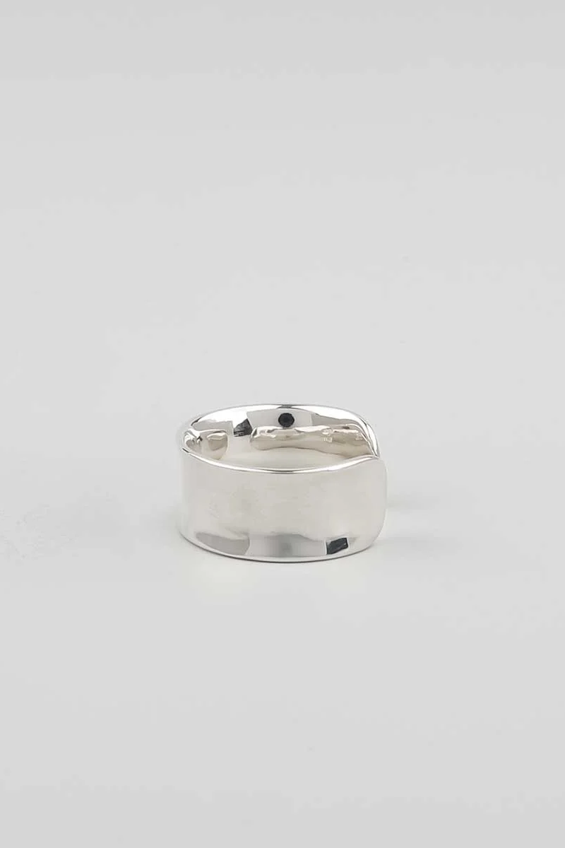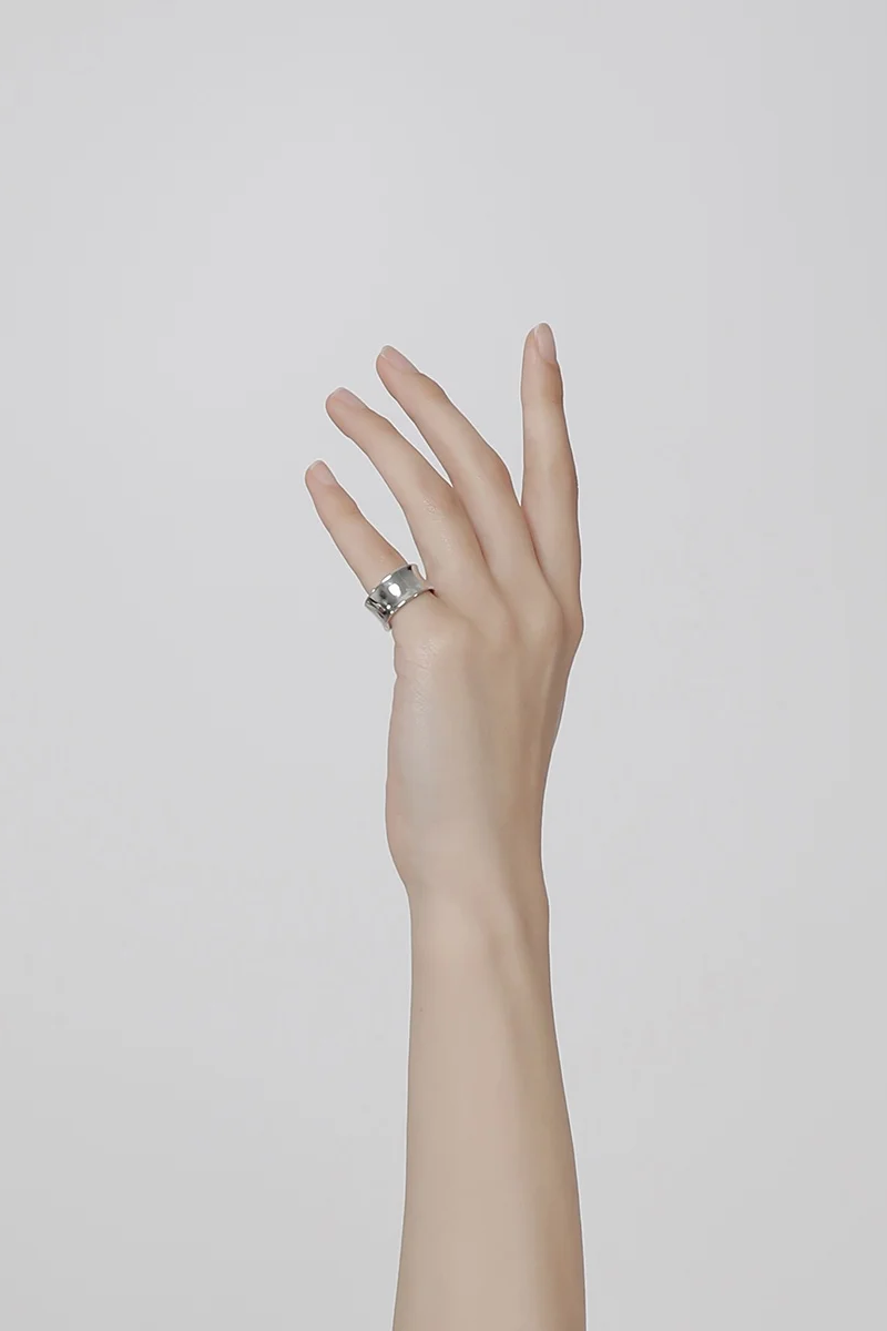 ・採用大約 1.2mm 厚的銀板鎚入環中,產生自然形態扭曲