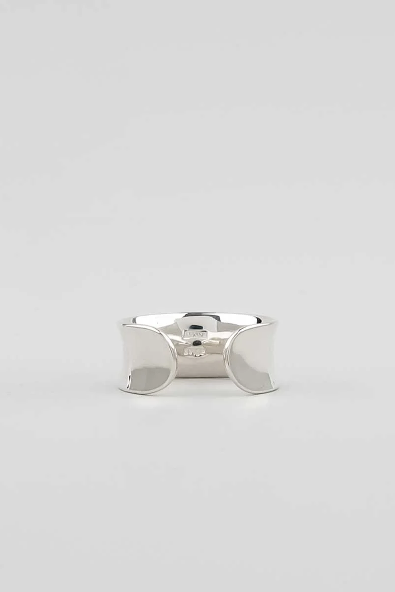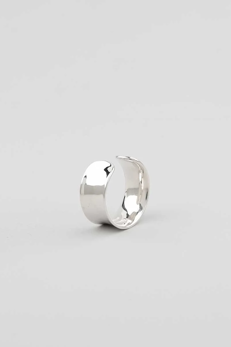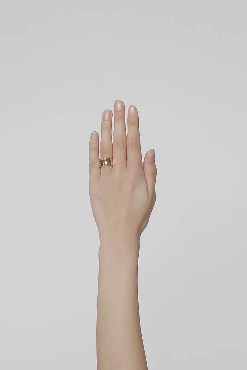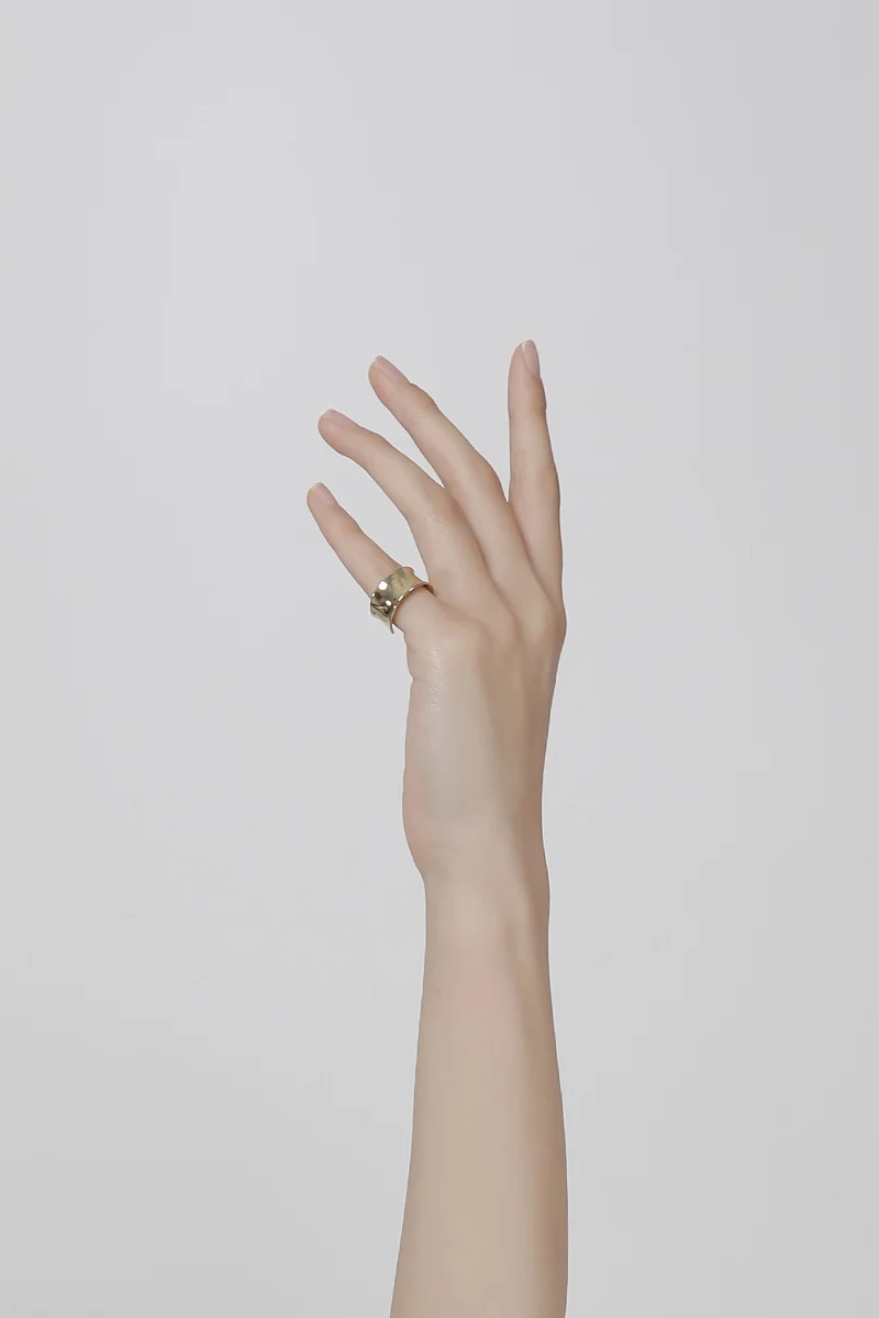 ・採用大約 1.2mm 厚的銀板鎚入環中,產生自然形態扭曲