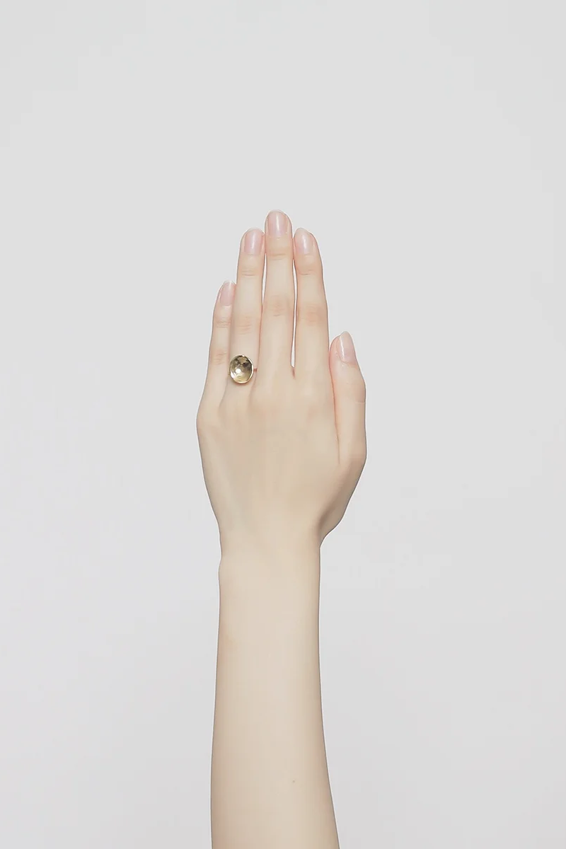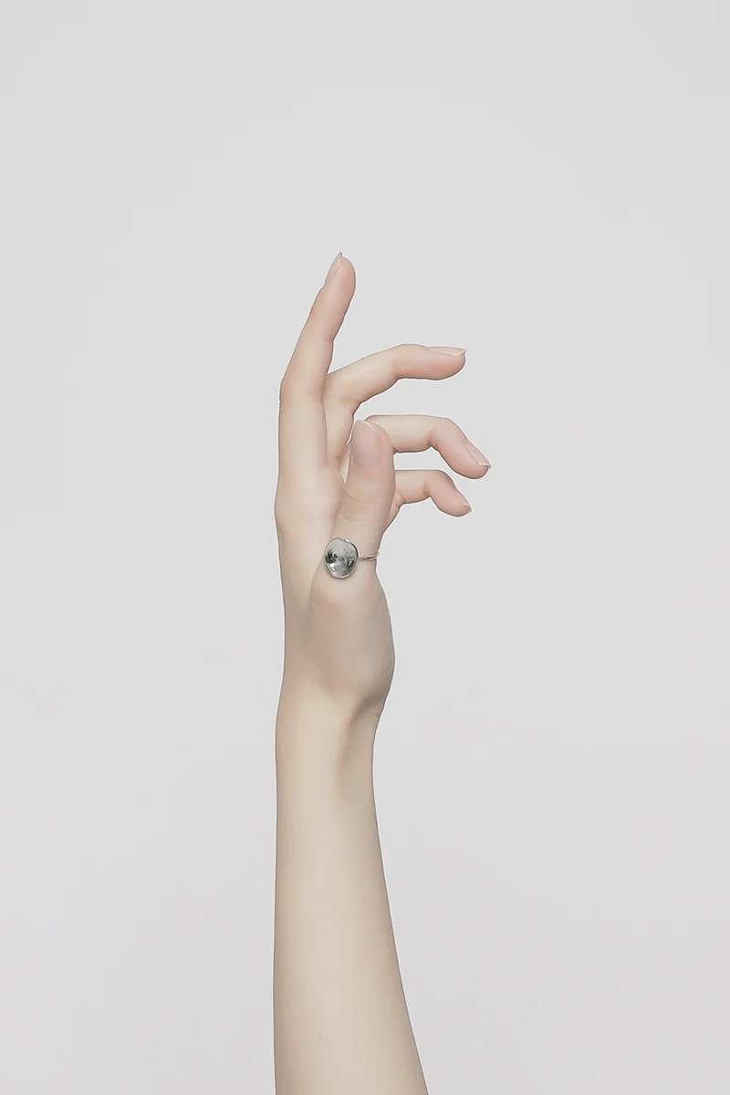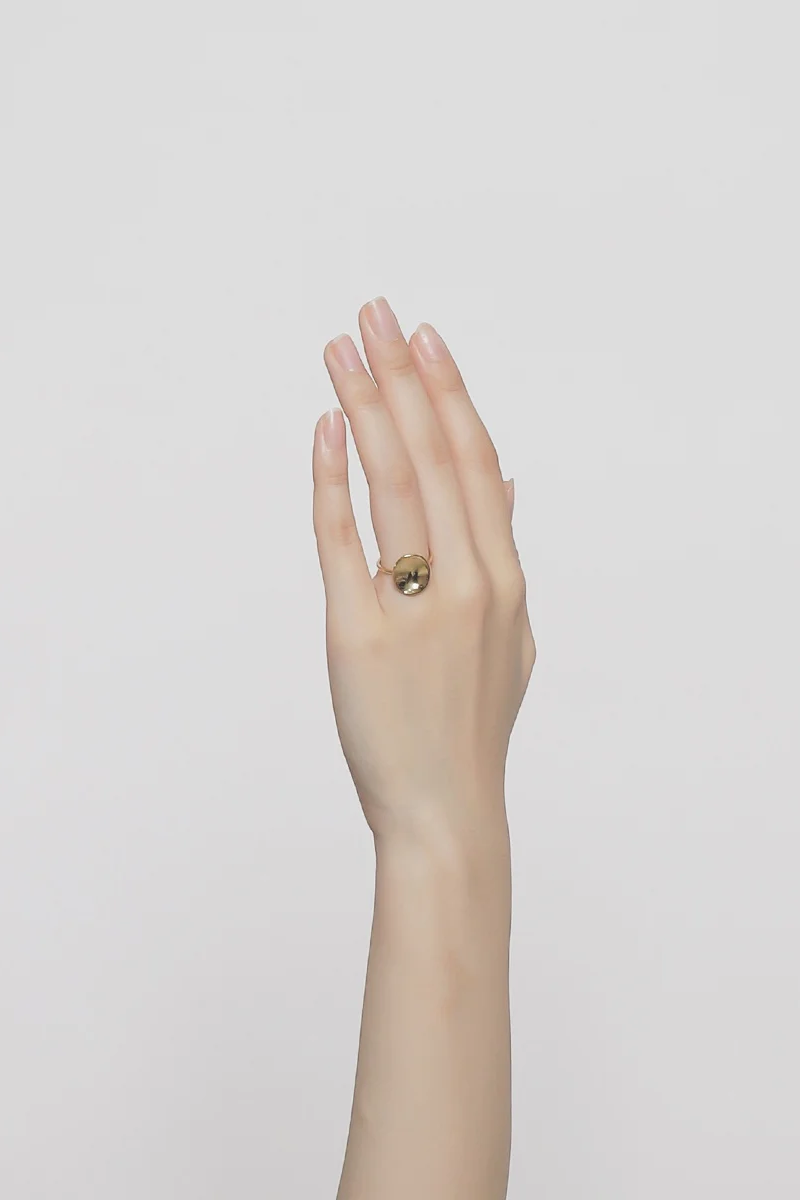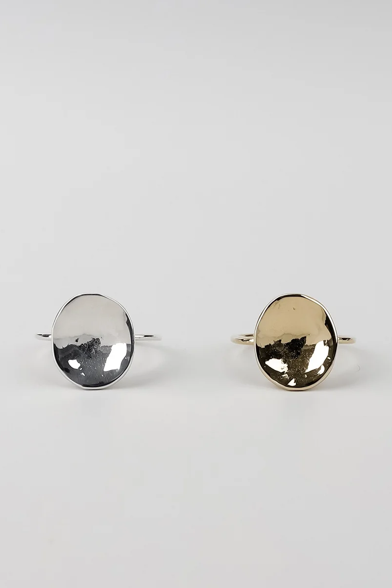 ・在 1.5mm 細長環上附有通過錘擊打造的橢圓型面板