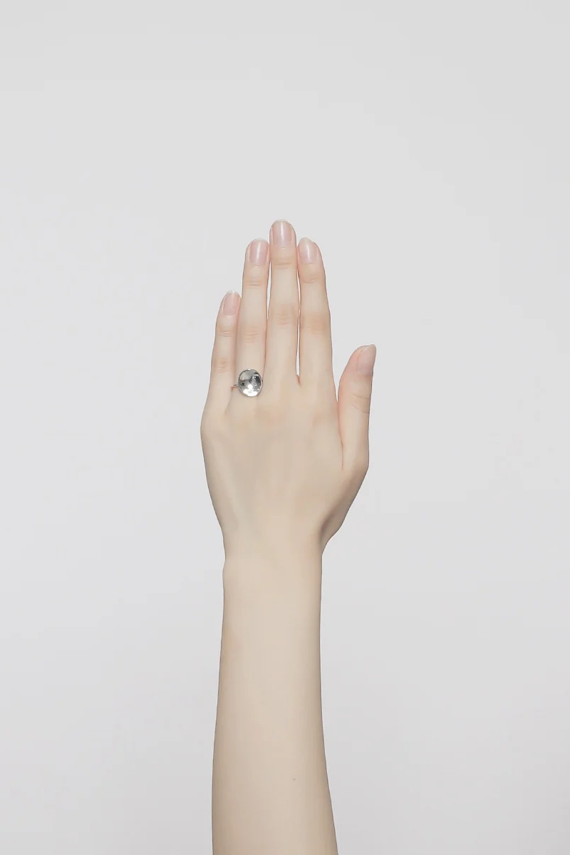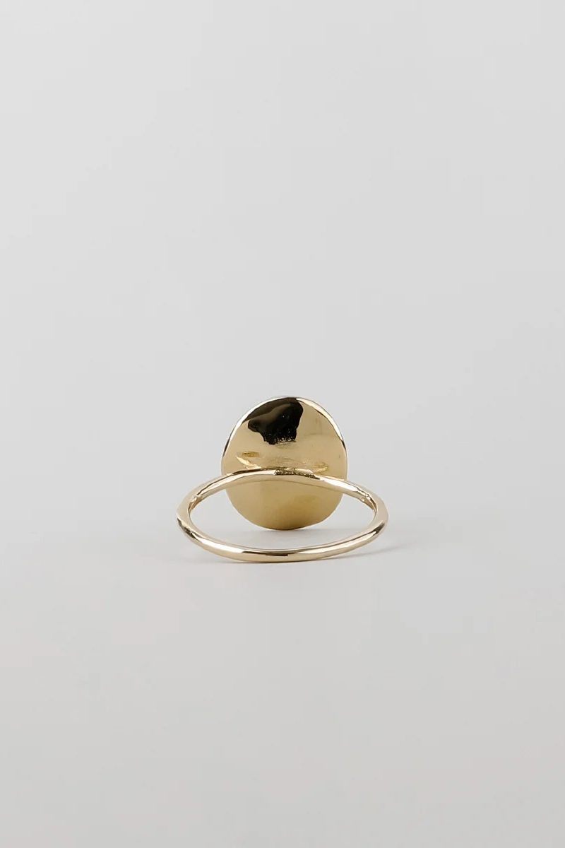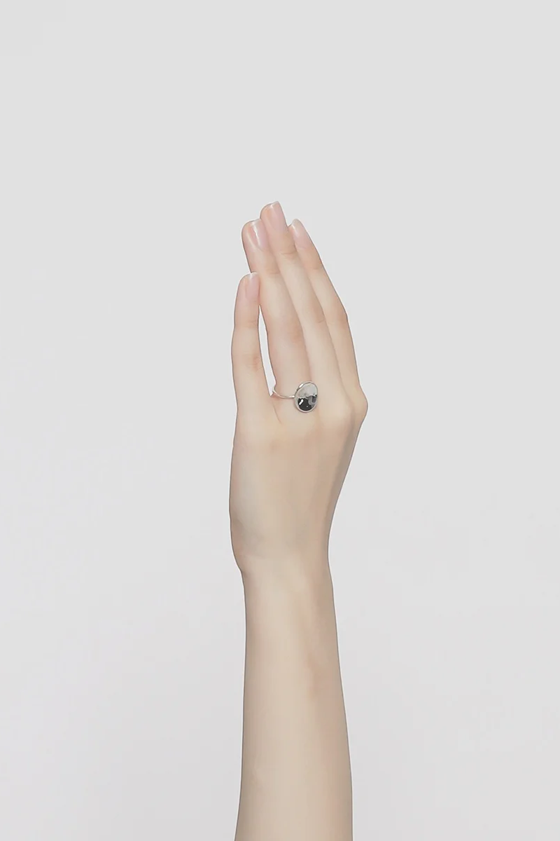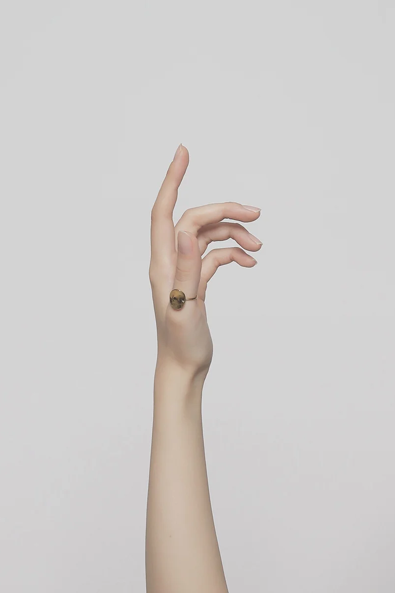 ・在 1.5mm 細長環上附有通過錘擊打造的橢圓型面板