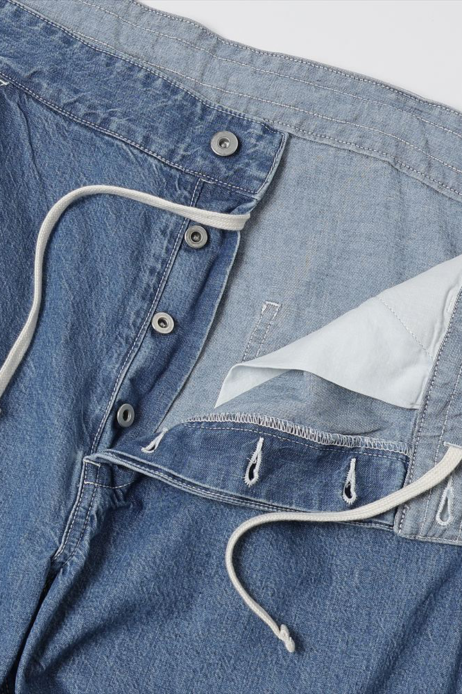 · 採用復刻版 10oz 2/1 輕手感工裝丹寧布料,經 Sanforized 預縮處理,符合 1950~60 年代由 Union (Union Made) 制定之工裝規格