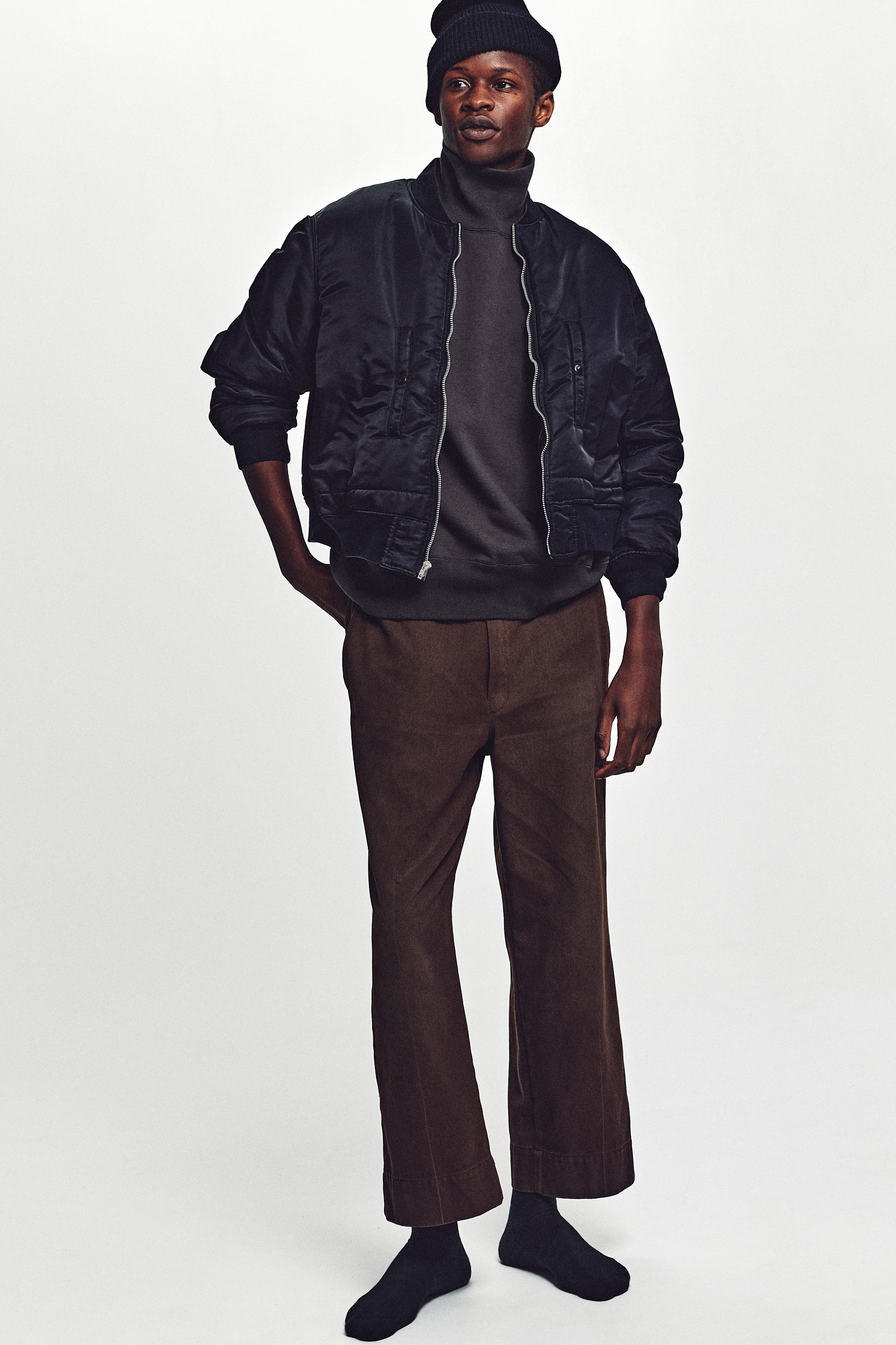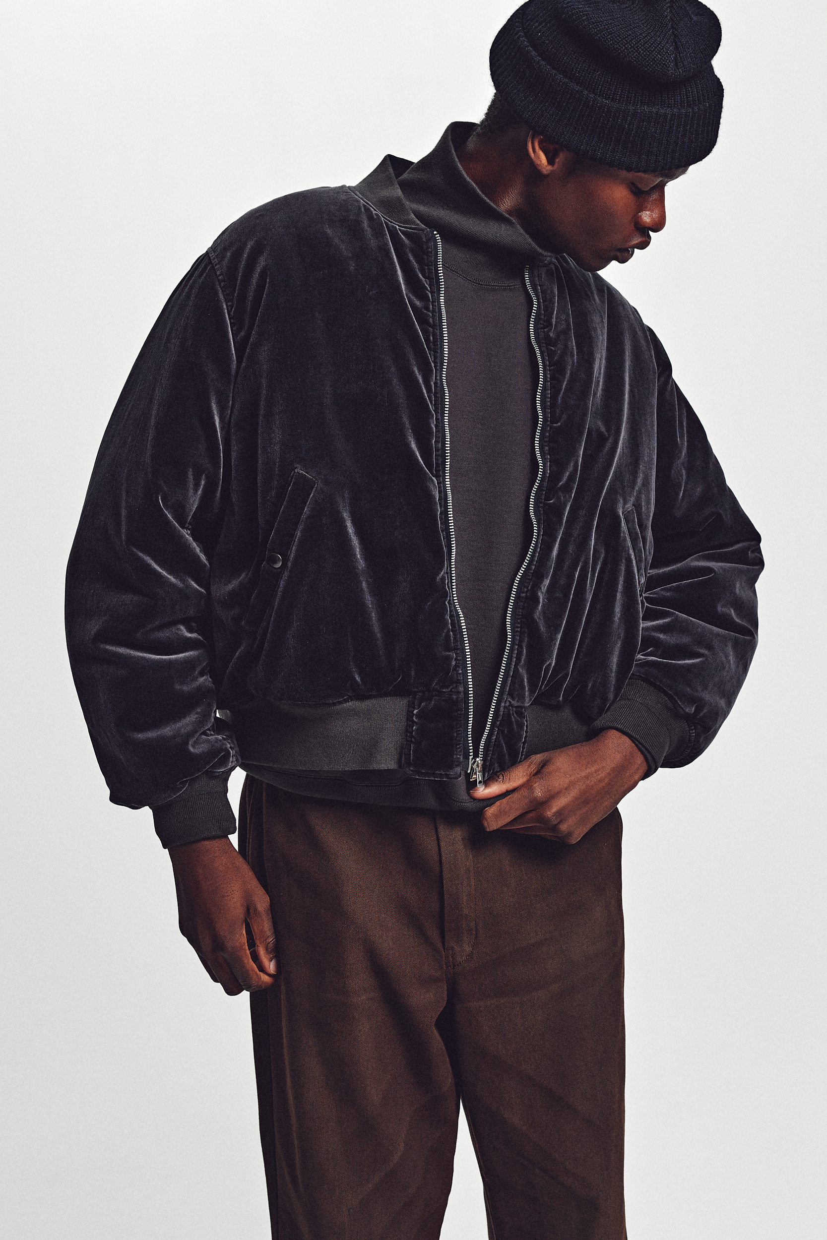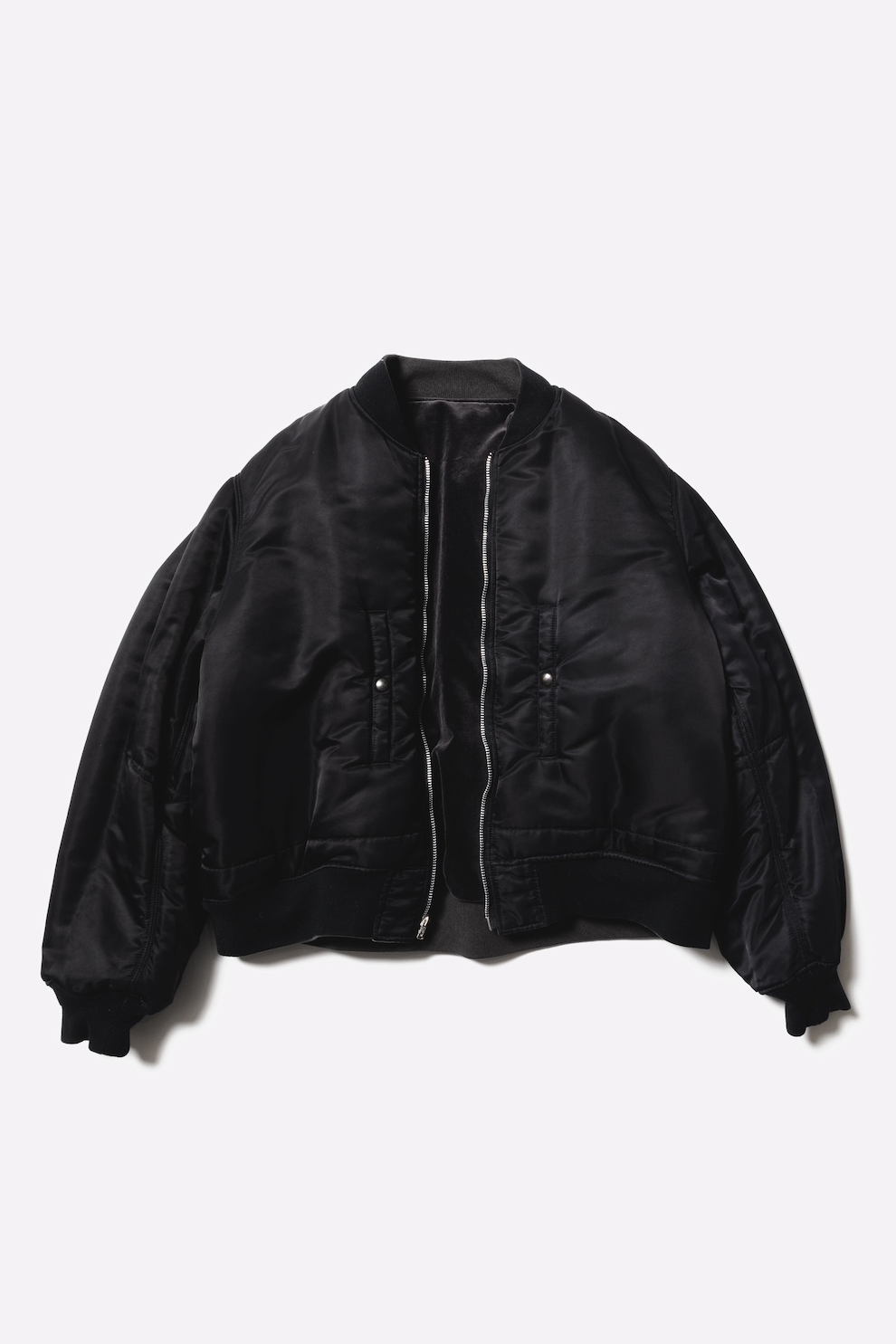 · 融合復古軍事風格與橫須賀夾克設計,具有雙面穿設計的特色。A 面為絲絨面料,B 面為尼龍材質