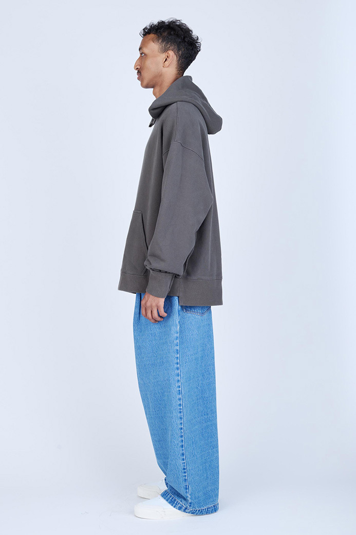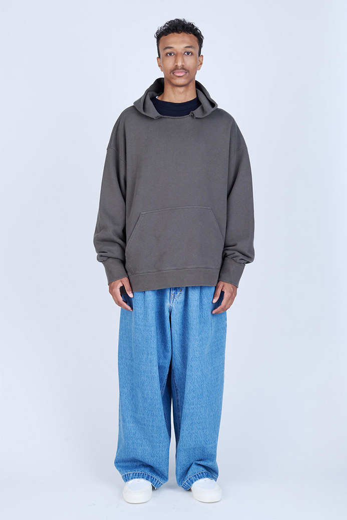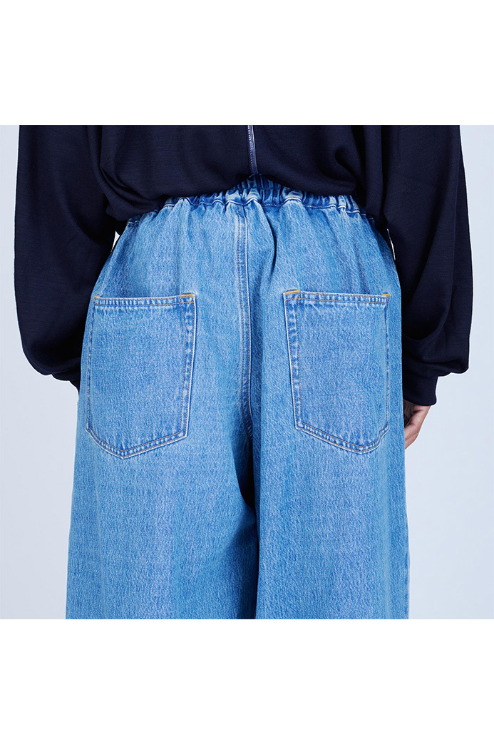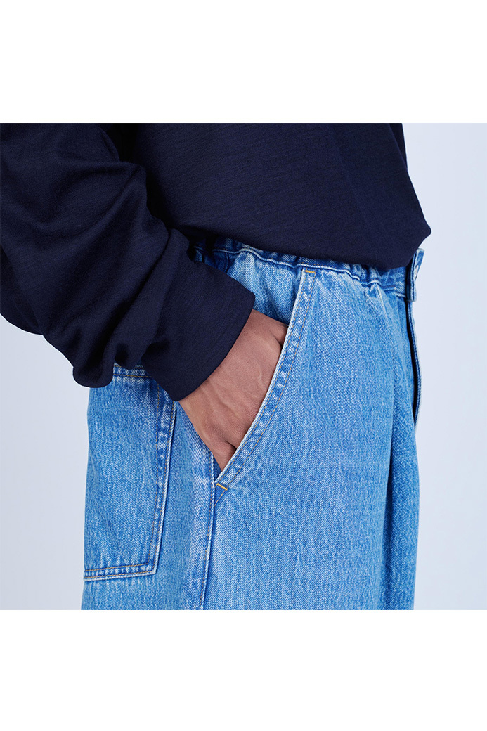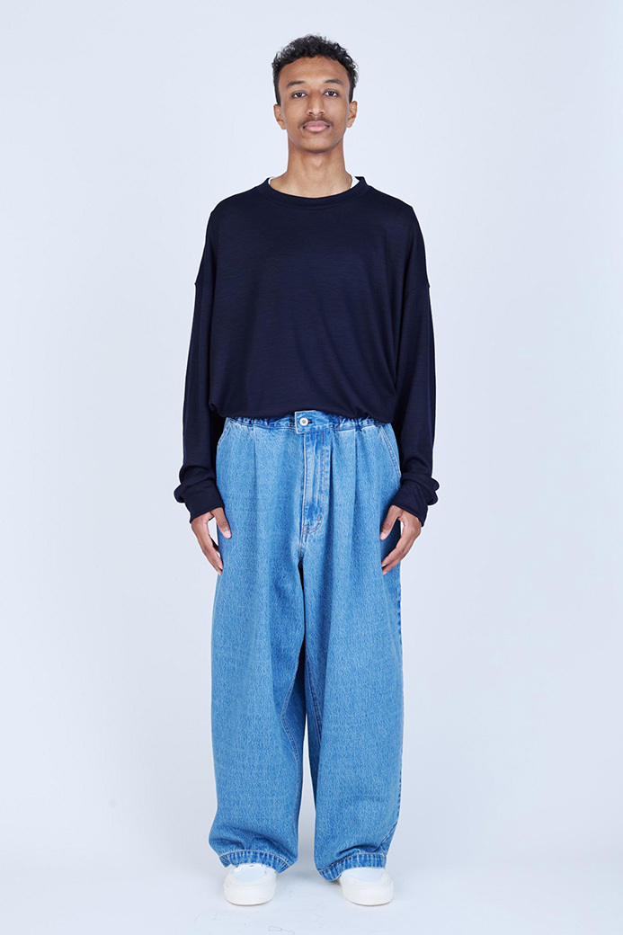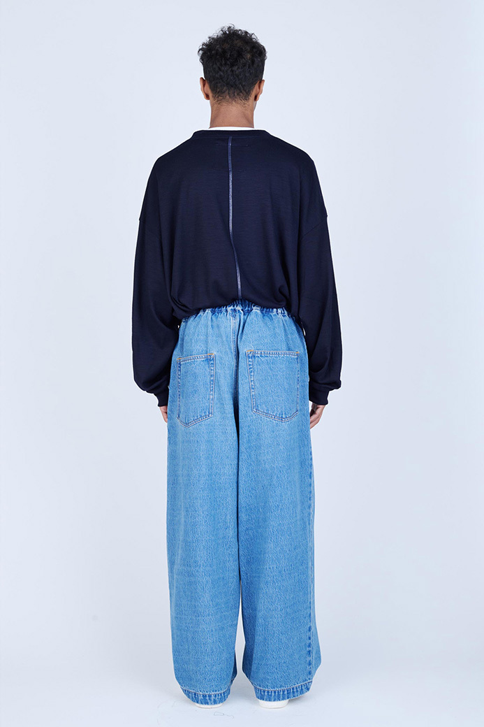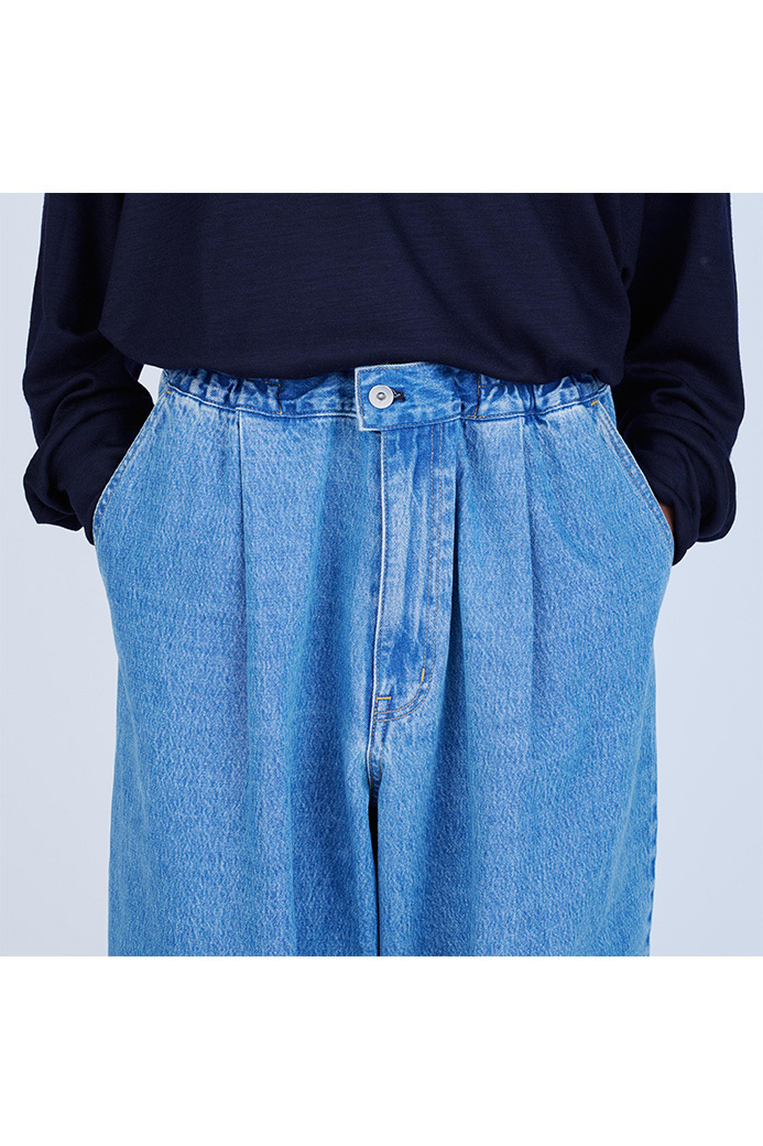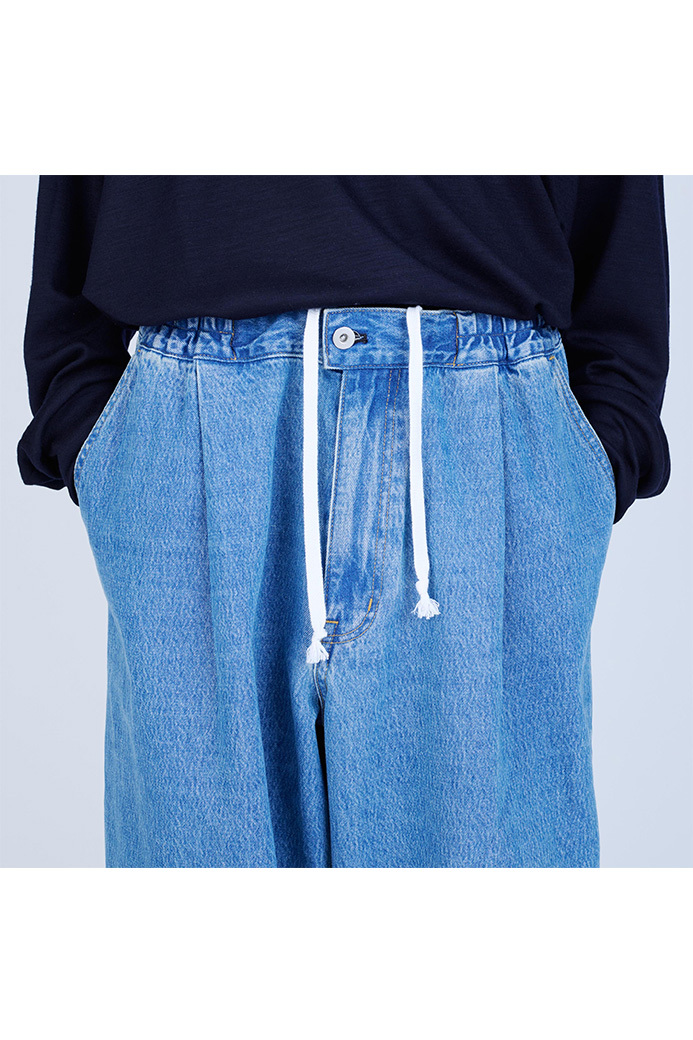 · 採用較薄的 11oz 丹寧布製成的寬版長褲