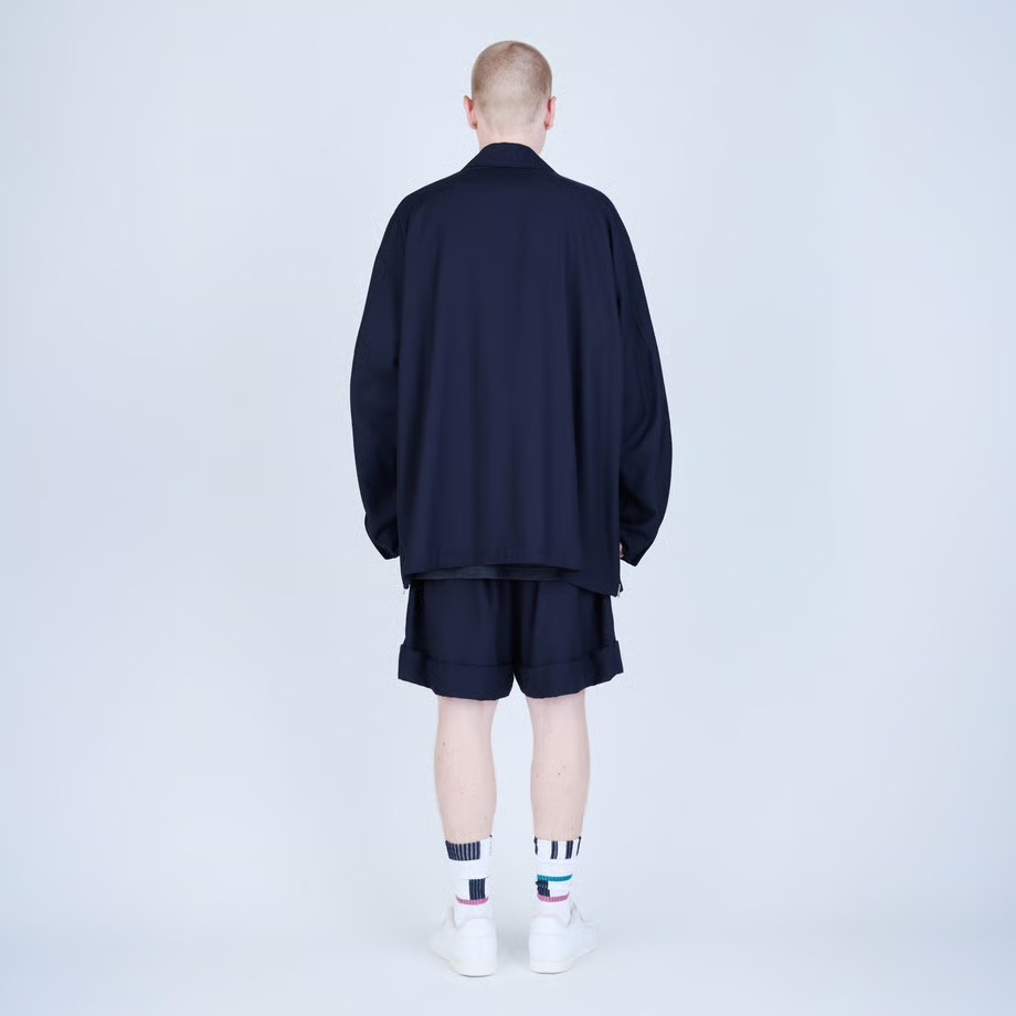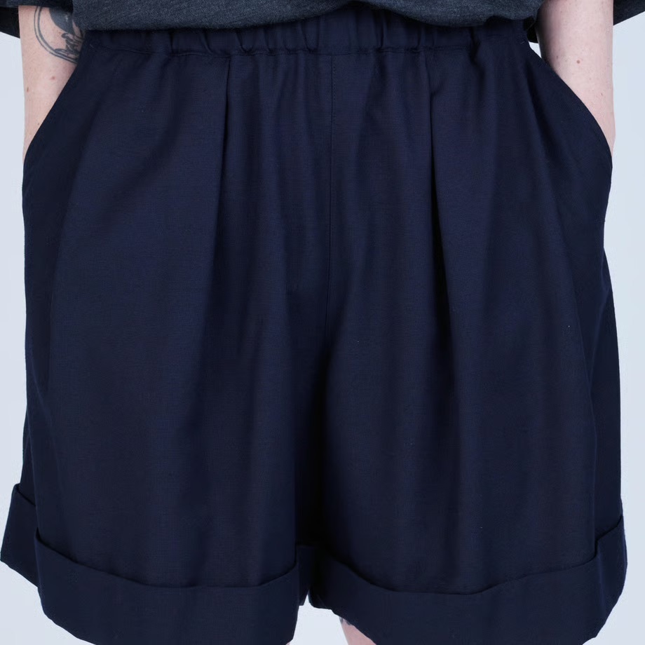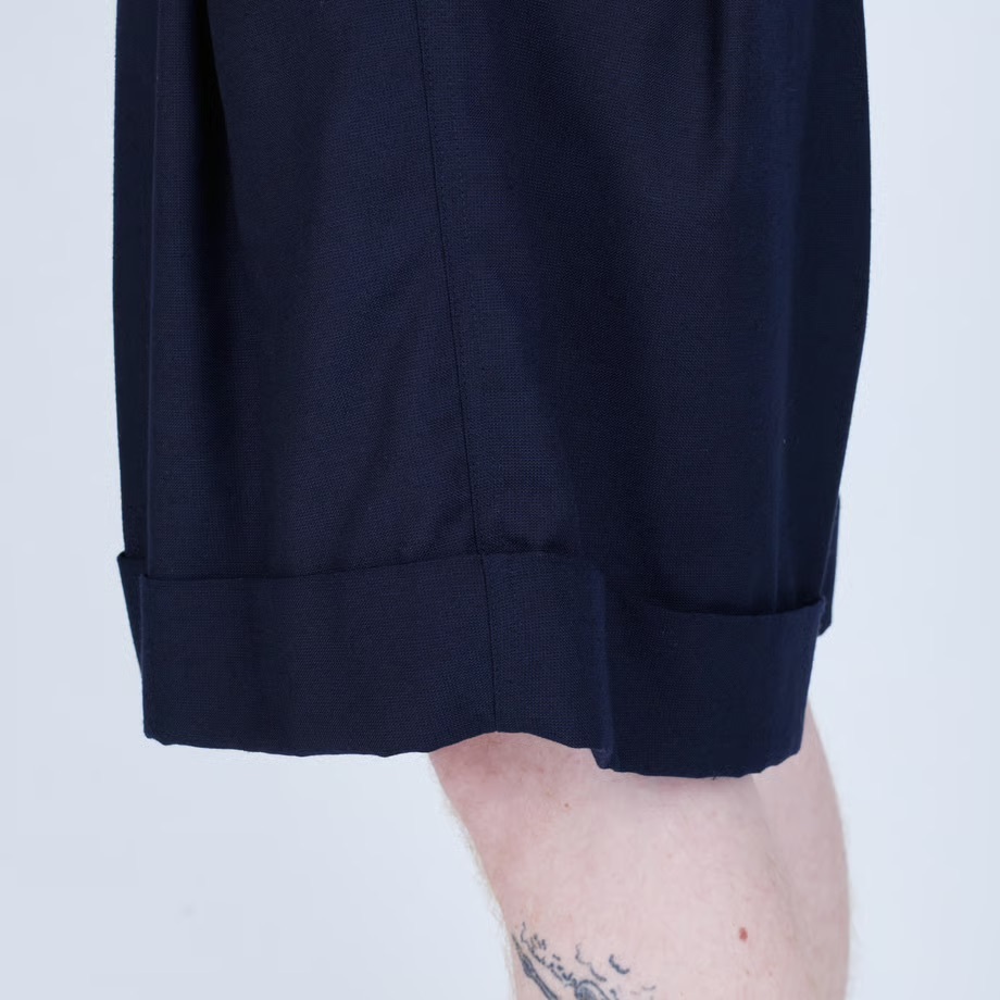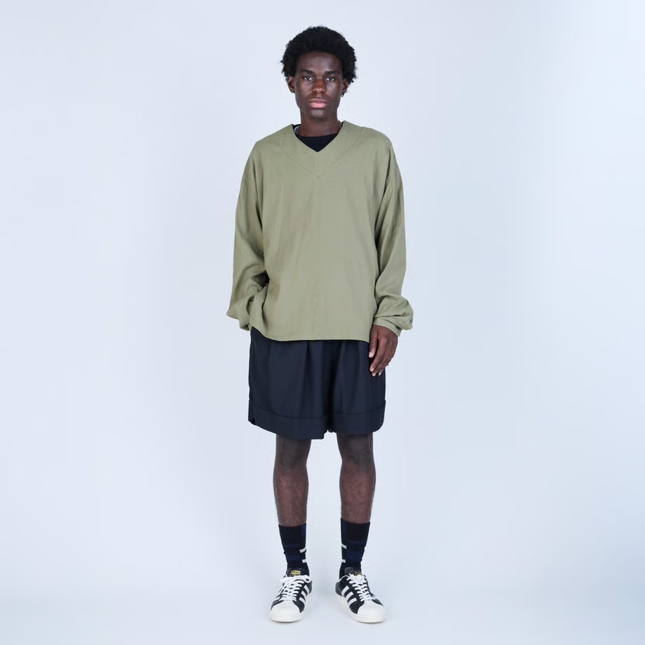 · 靈感源自籃球短褲,搭配如同西裝長褲的褲腳收邊剪裁,以及前襠處的深褶,呈現休閒與精緻兼具的風格