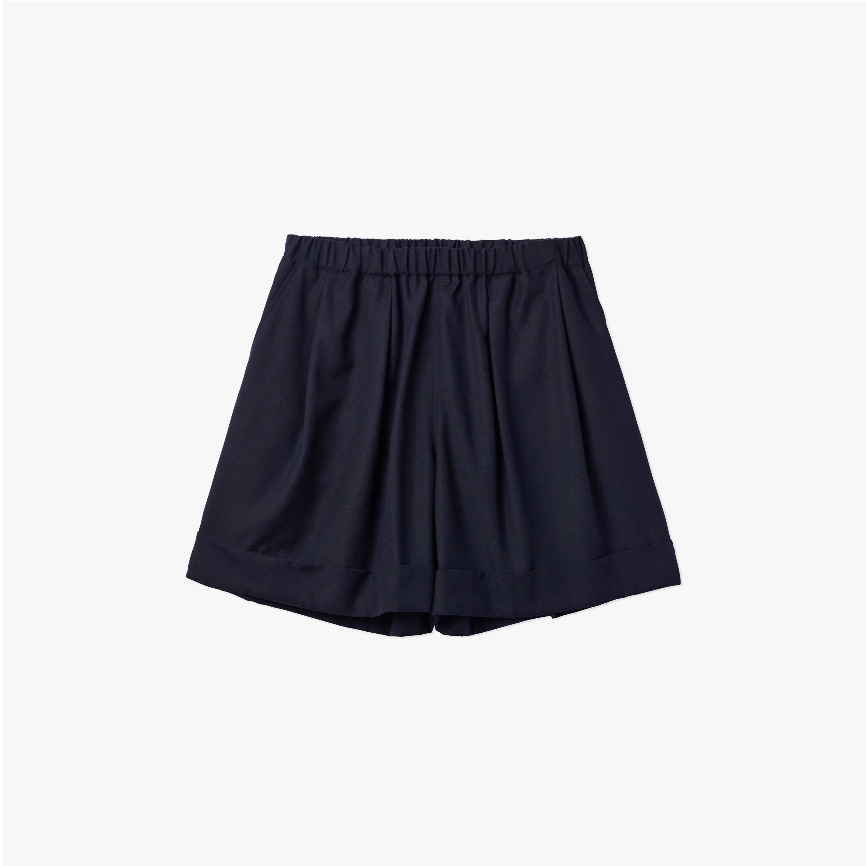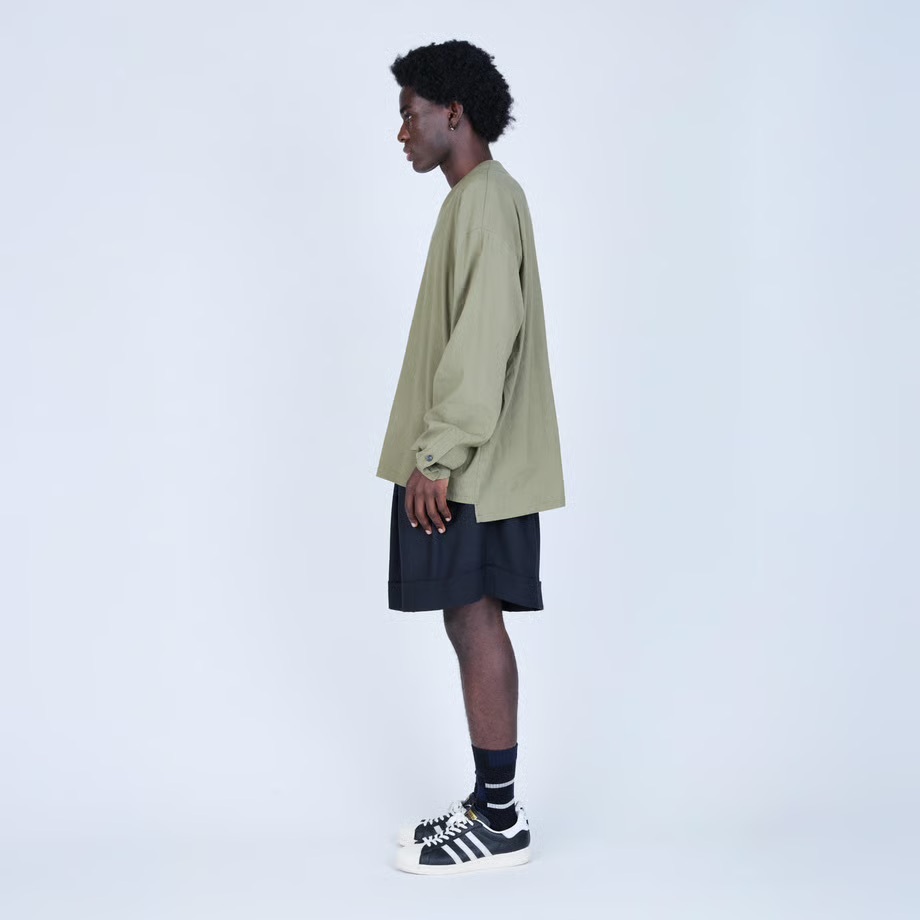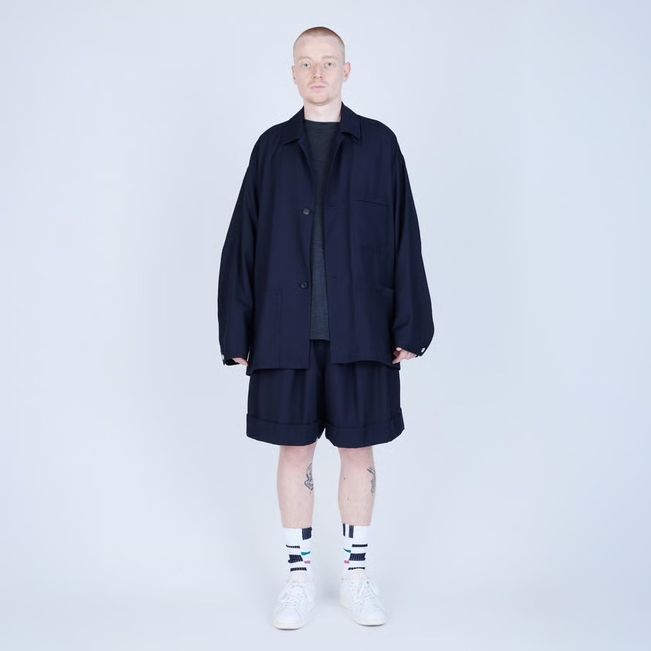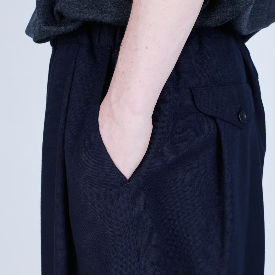 · 靈感源自籃球短褲,搭配如同西裝長褲的褲腳收邊剪裁,以及前襠處的深褶,呈現休閒與精緻兼具的風格
