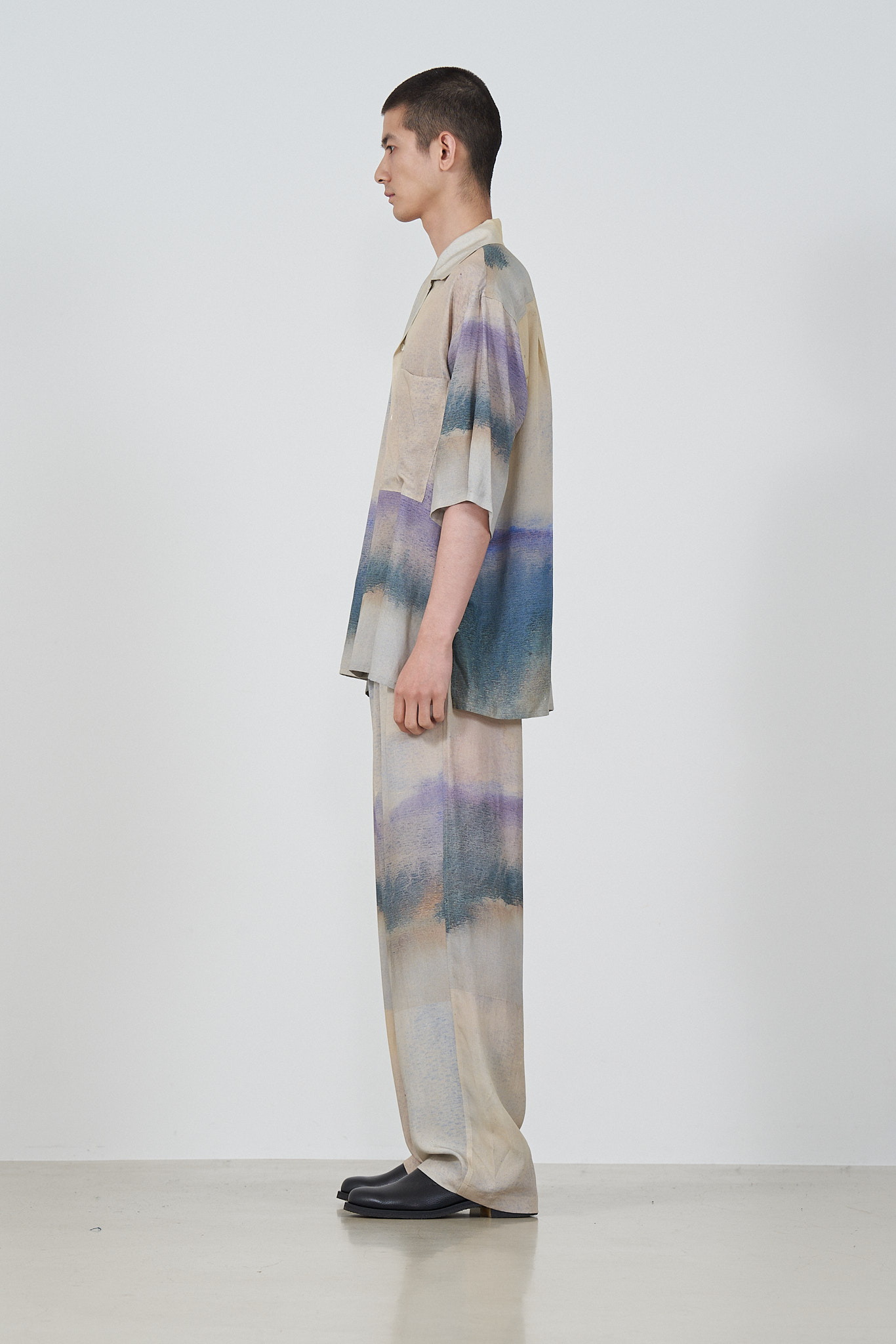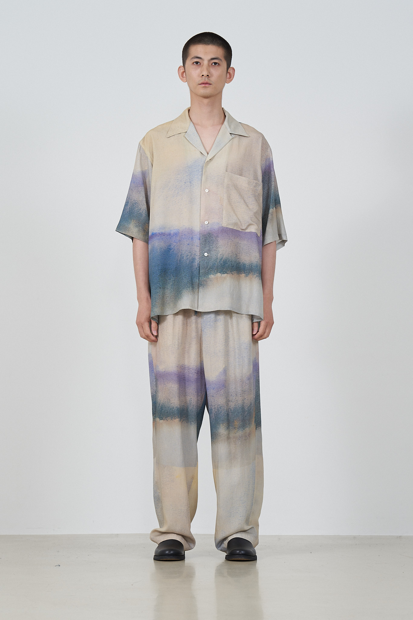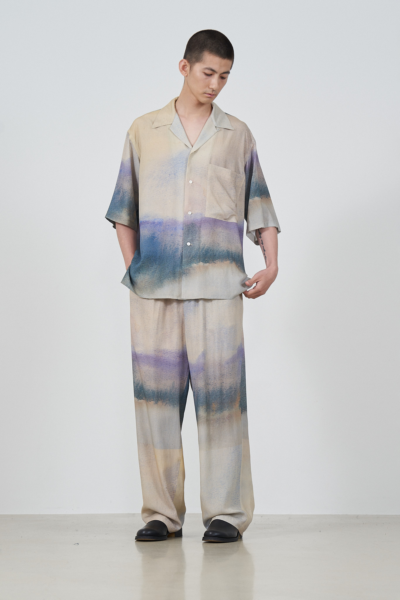 ・採用棉、人造絲、絲綢混紡的斜紋布料,印上藝術家作品圖像的開領襯衫