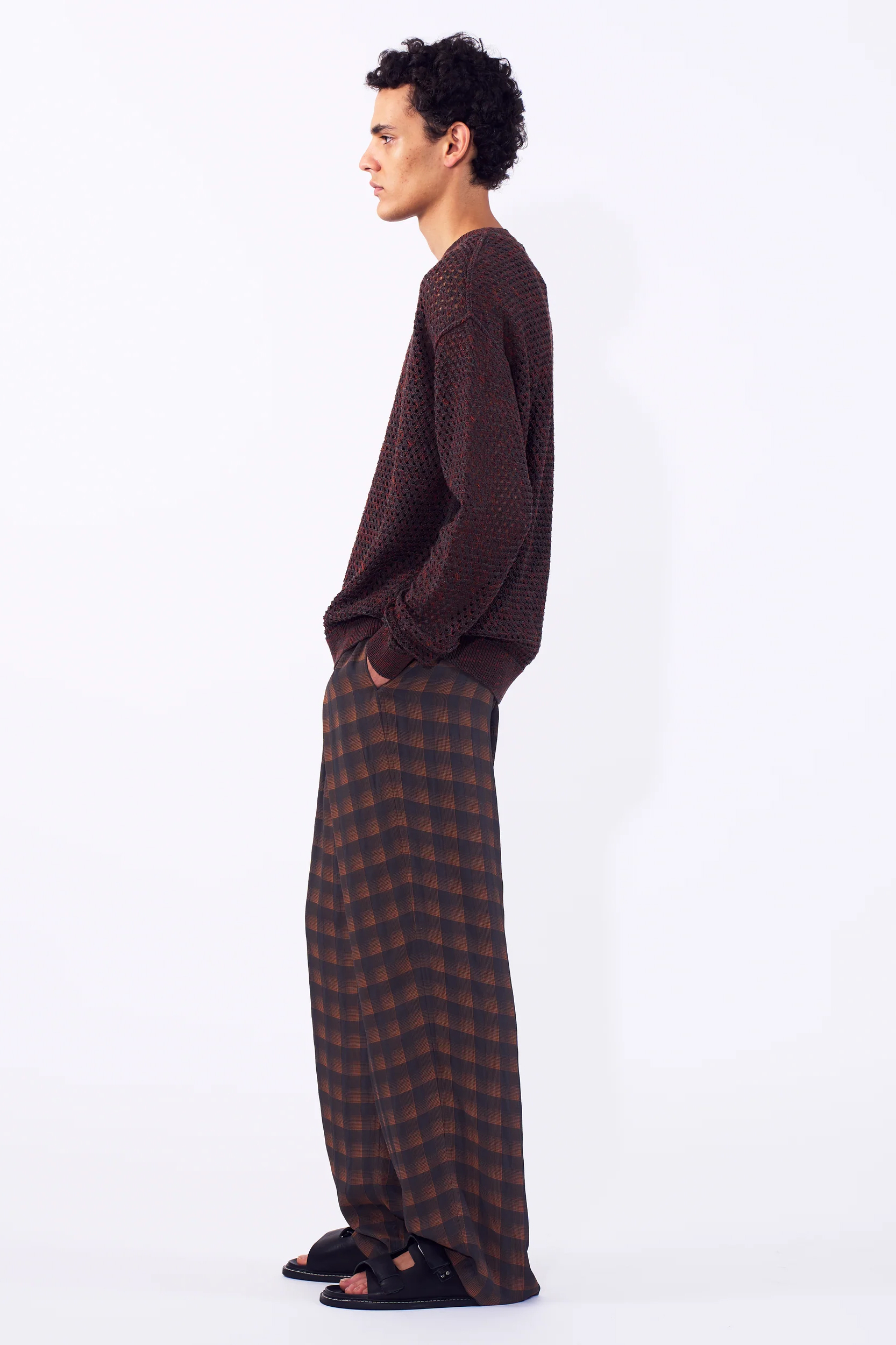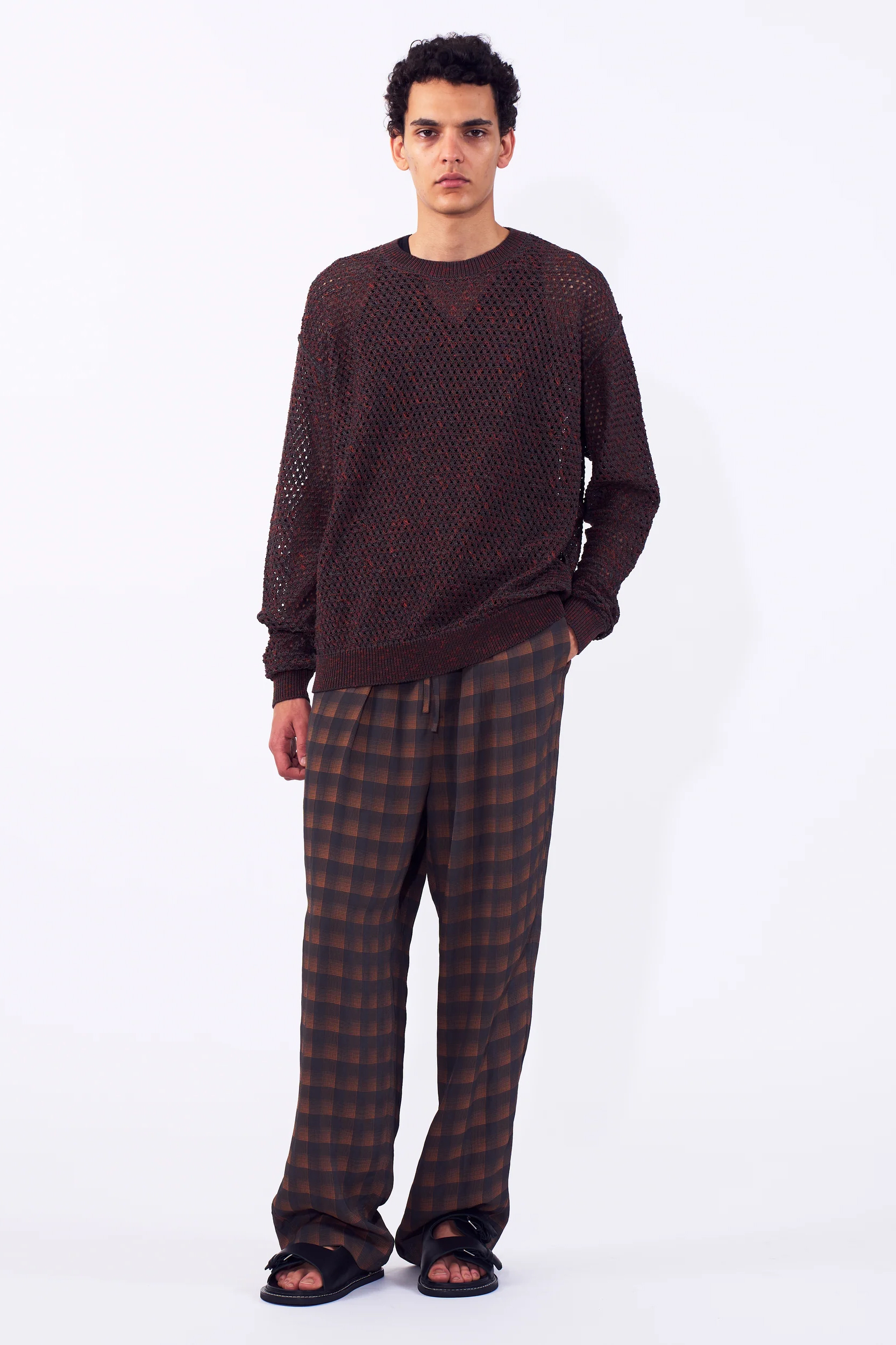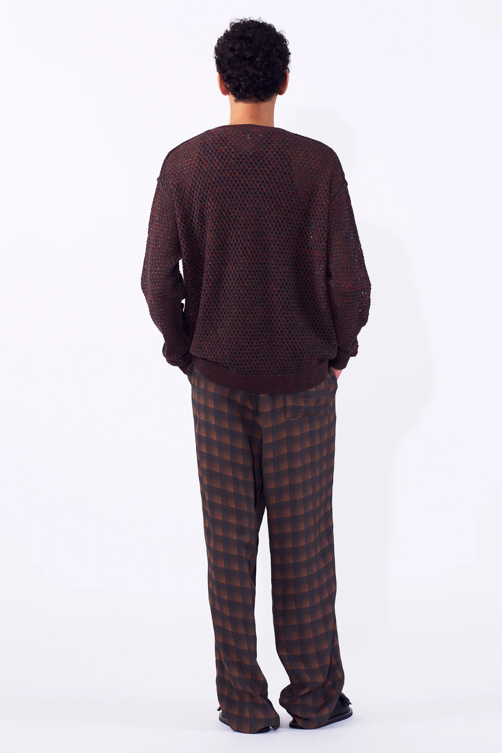· 以 Gima Cotton(擬麻棉紗) 與 Slub 紗線撚合製成的網眼針織毛衣