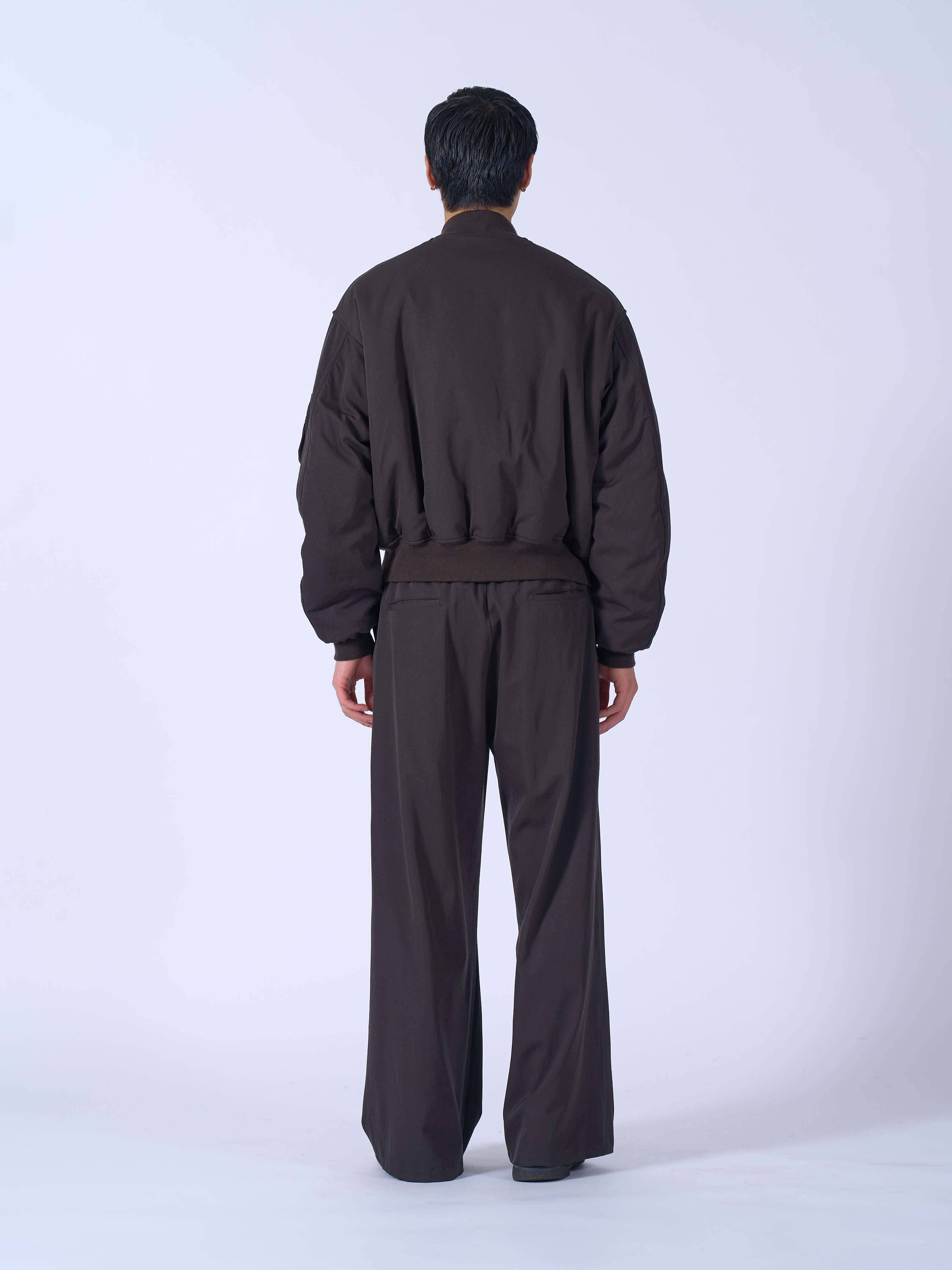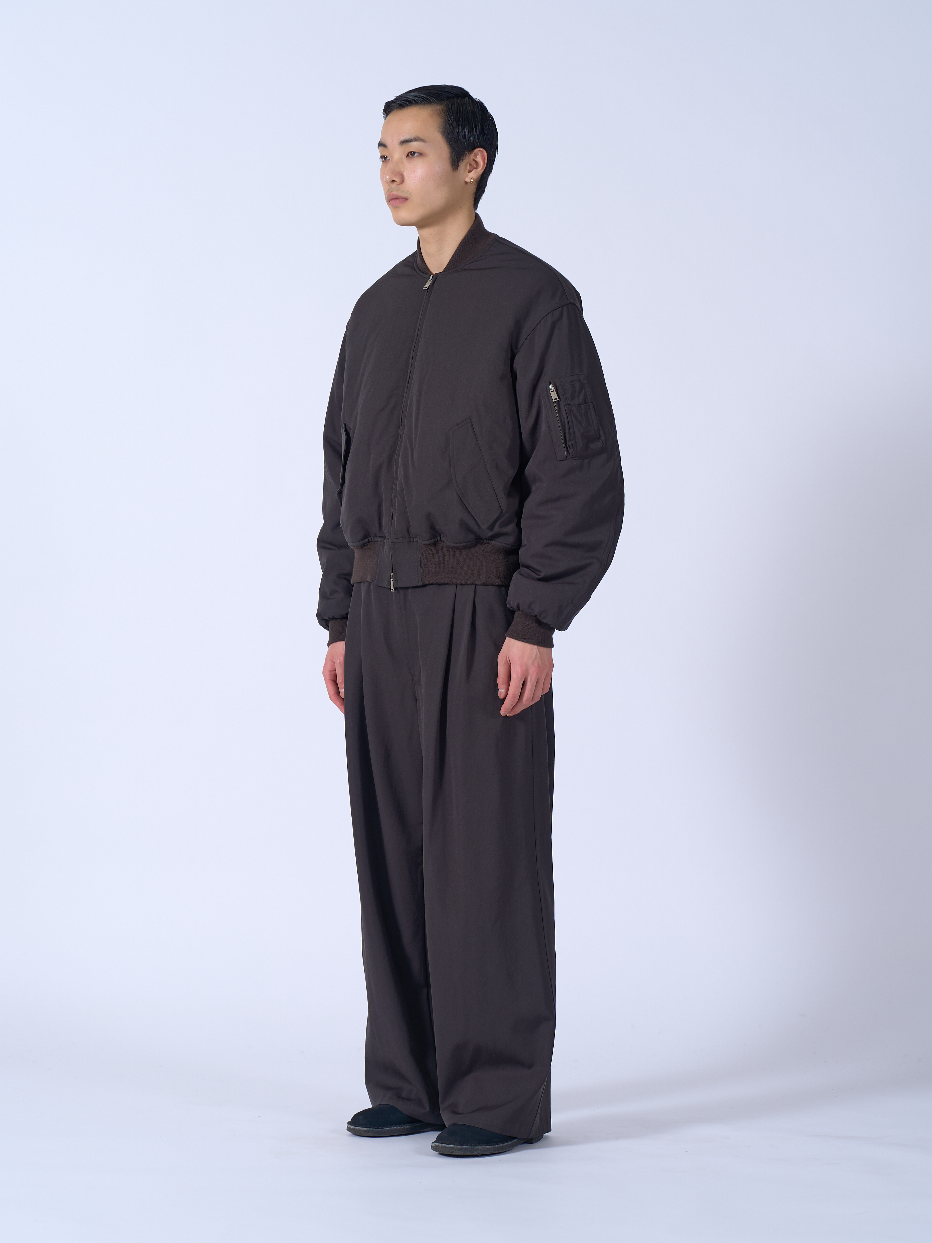 ・使用經過皺褶洗滌(Washer Tumbler) 處理、質感自然隨性的羊毛斜紋面料製成的飛行外套