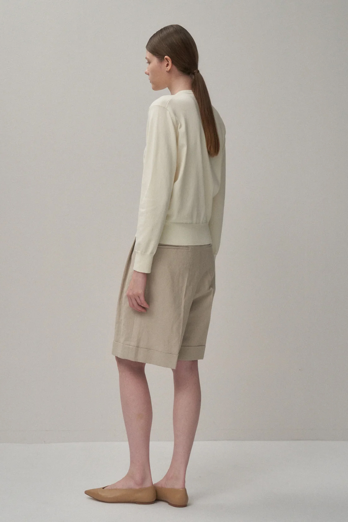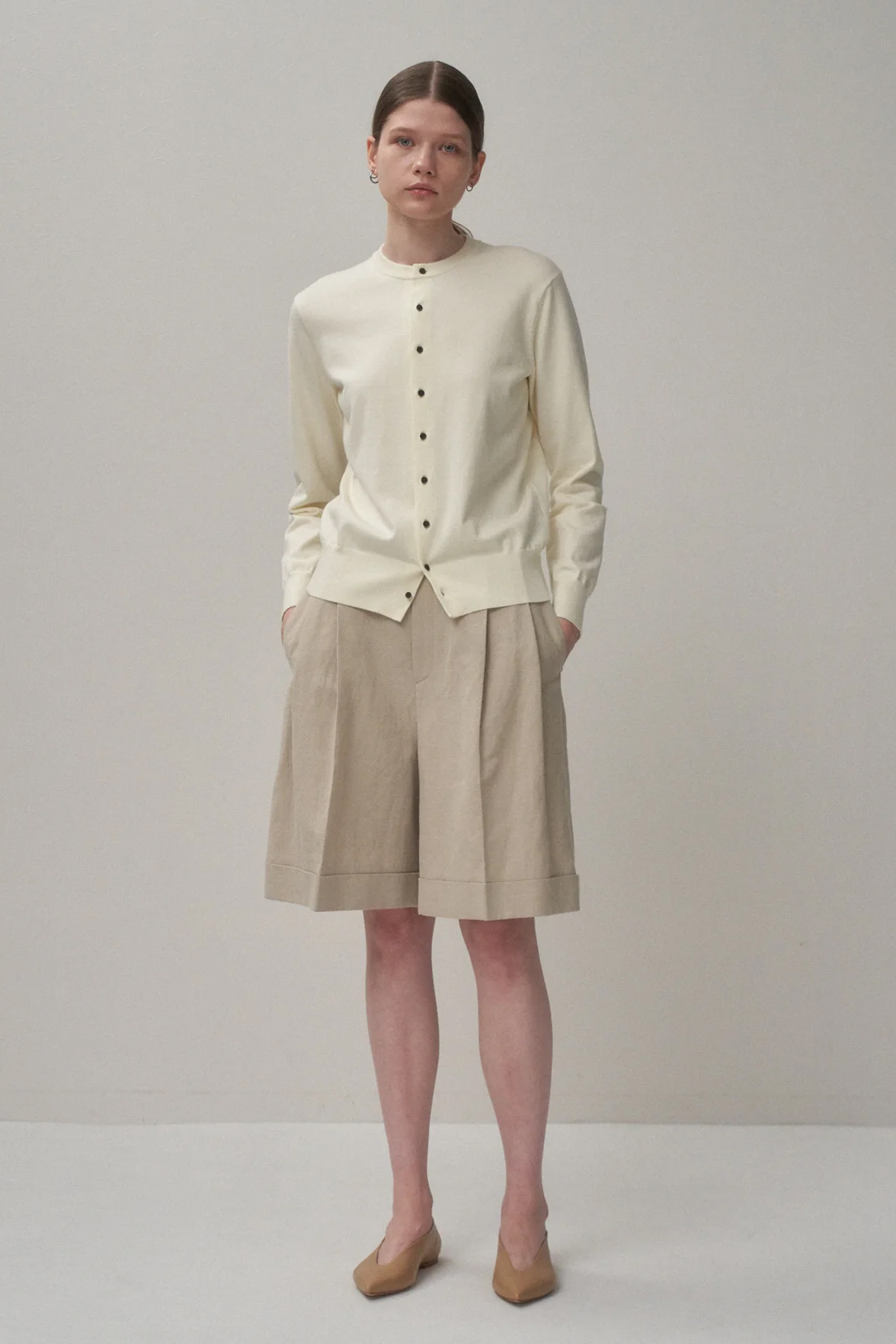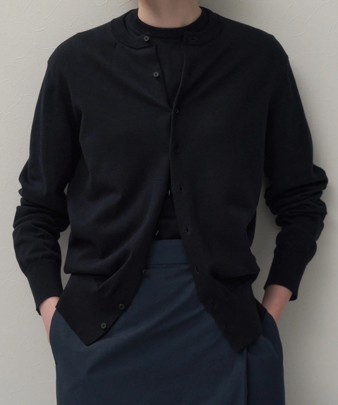 · 圓領開襟衫(Regular Fit Crew Neck Cardigan),領口收得紮實俐落,呈現乾淨成熟的印象
