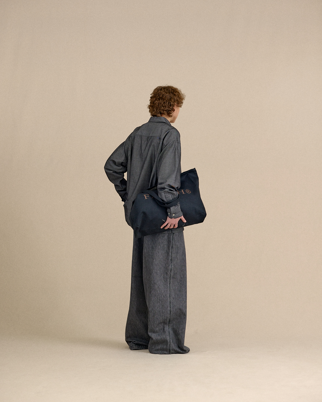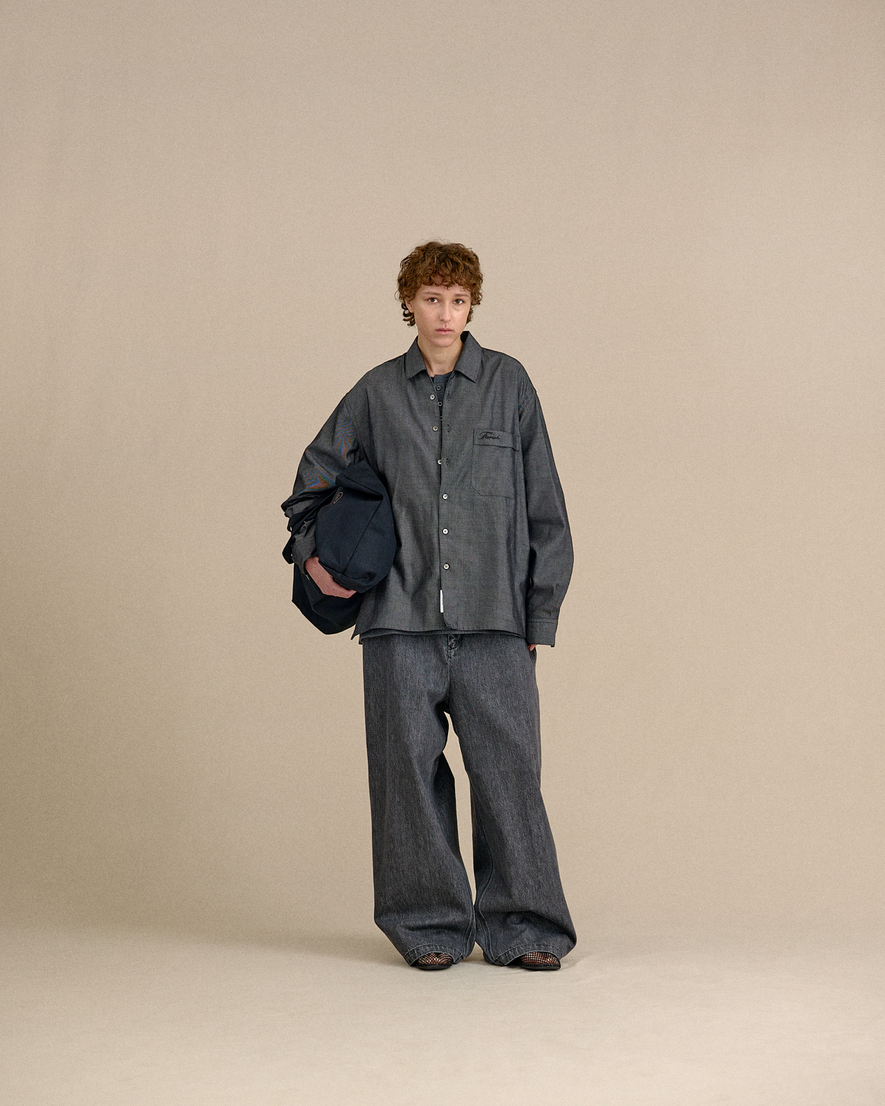 · 此款為系列中最具份量感的寬版直筒剪裁,透過誇張的輪廓展現俐落又放鬆的造型氛圍