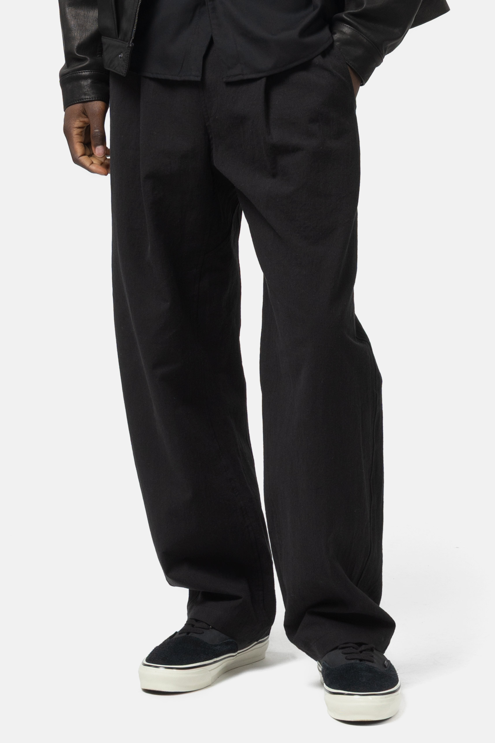 · 寬版輪廓搭配單打褶設計,兼具休閒感與俐落外觀