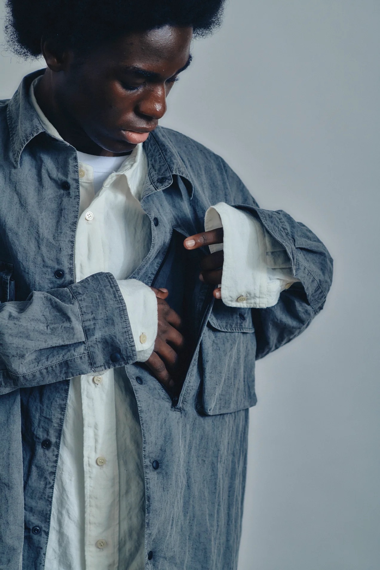 · 運用 GARMENT DYE 染色處理,使色澤更具層次感,並隨時間推移展現獨特變化