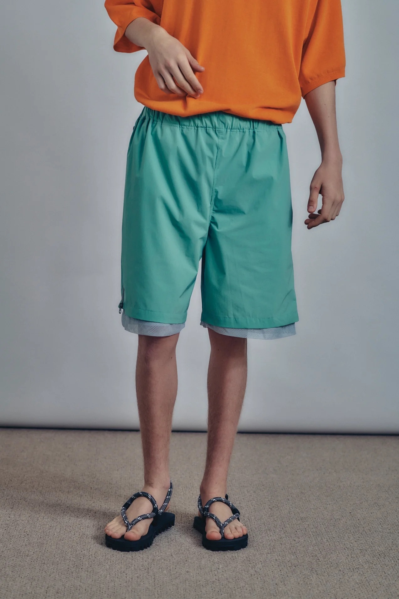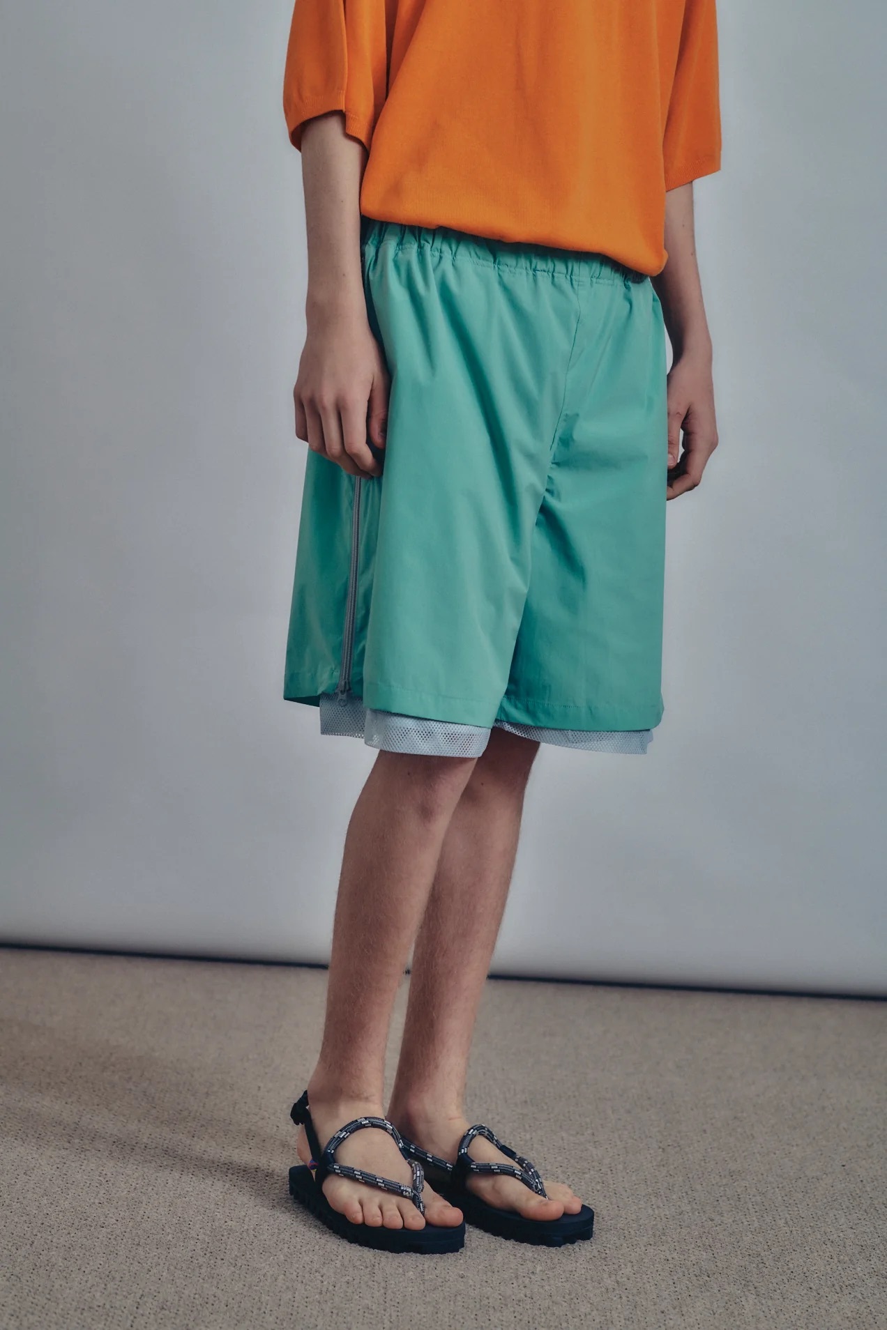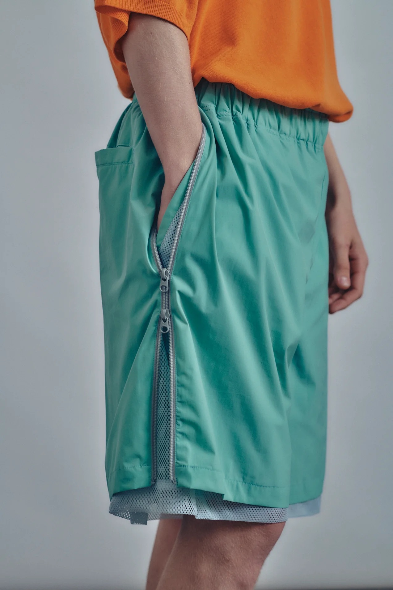 · 設計自腰帶下方延伸至褲腳的通風結構,提升整體透氣性,並可依需求喜好調節
