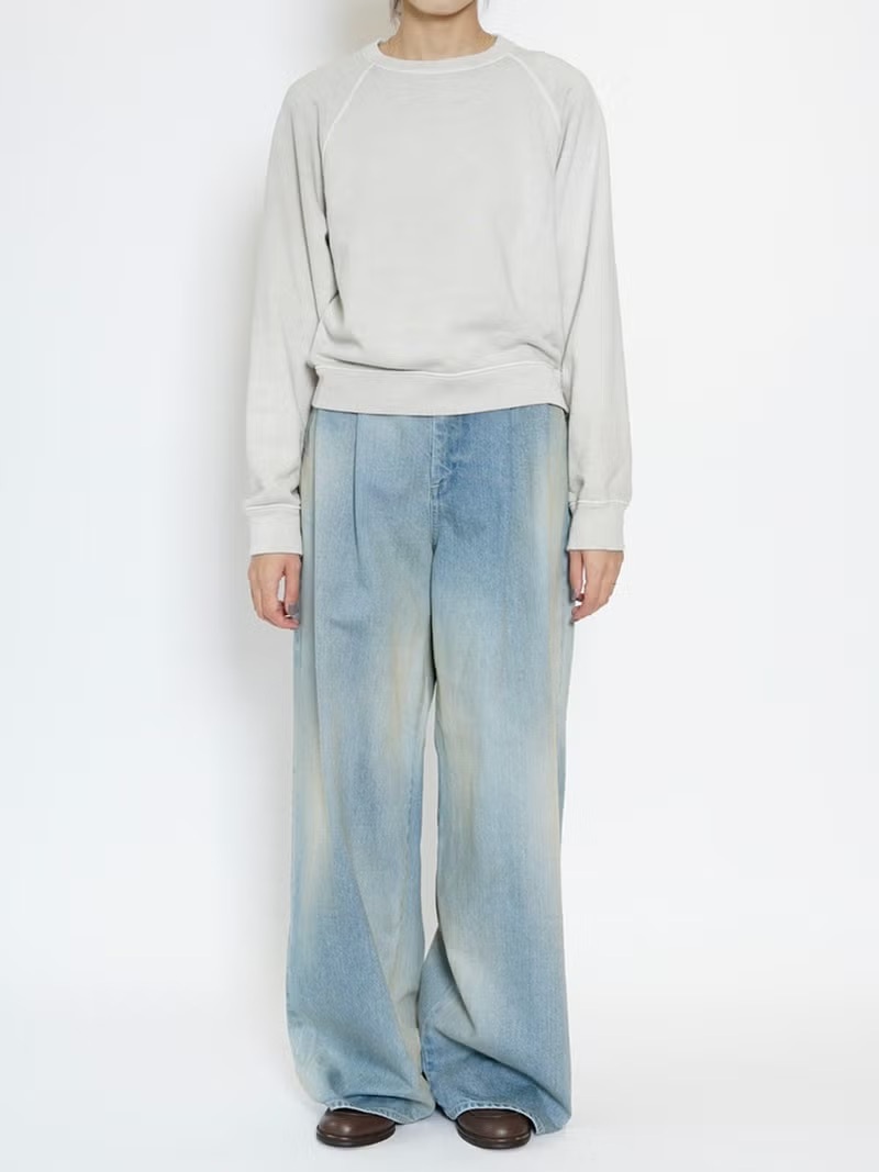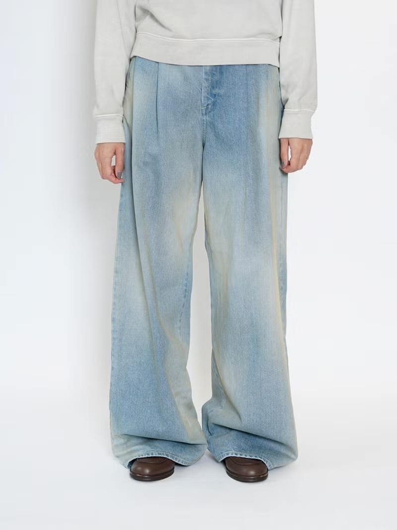 · 褲身採用雙褶設計,賦予牛仔褲如西裝長褲般的優雅經典